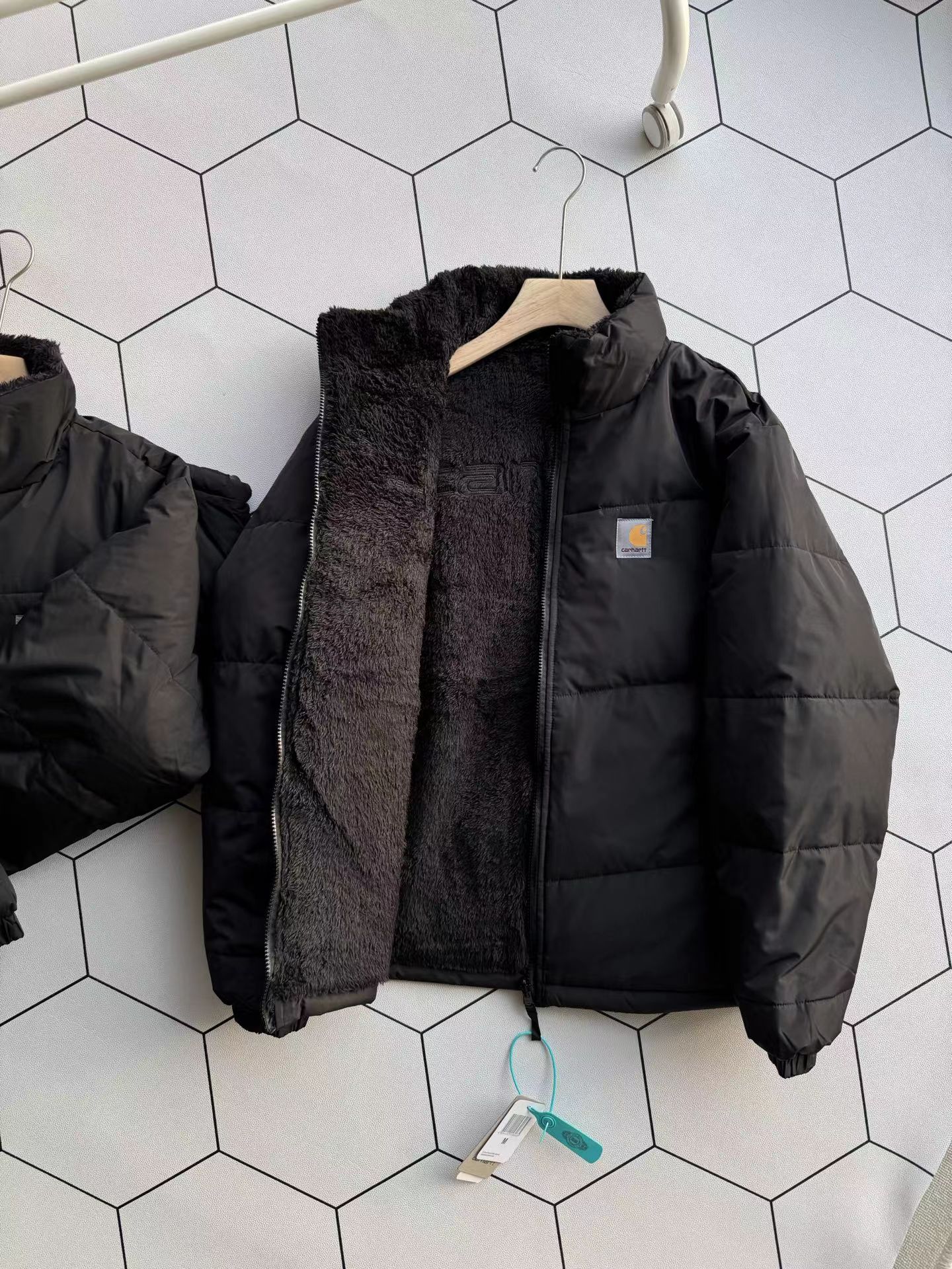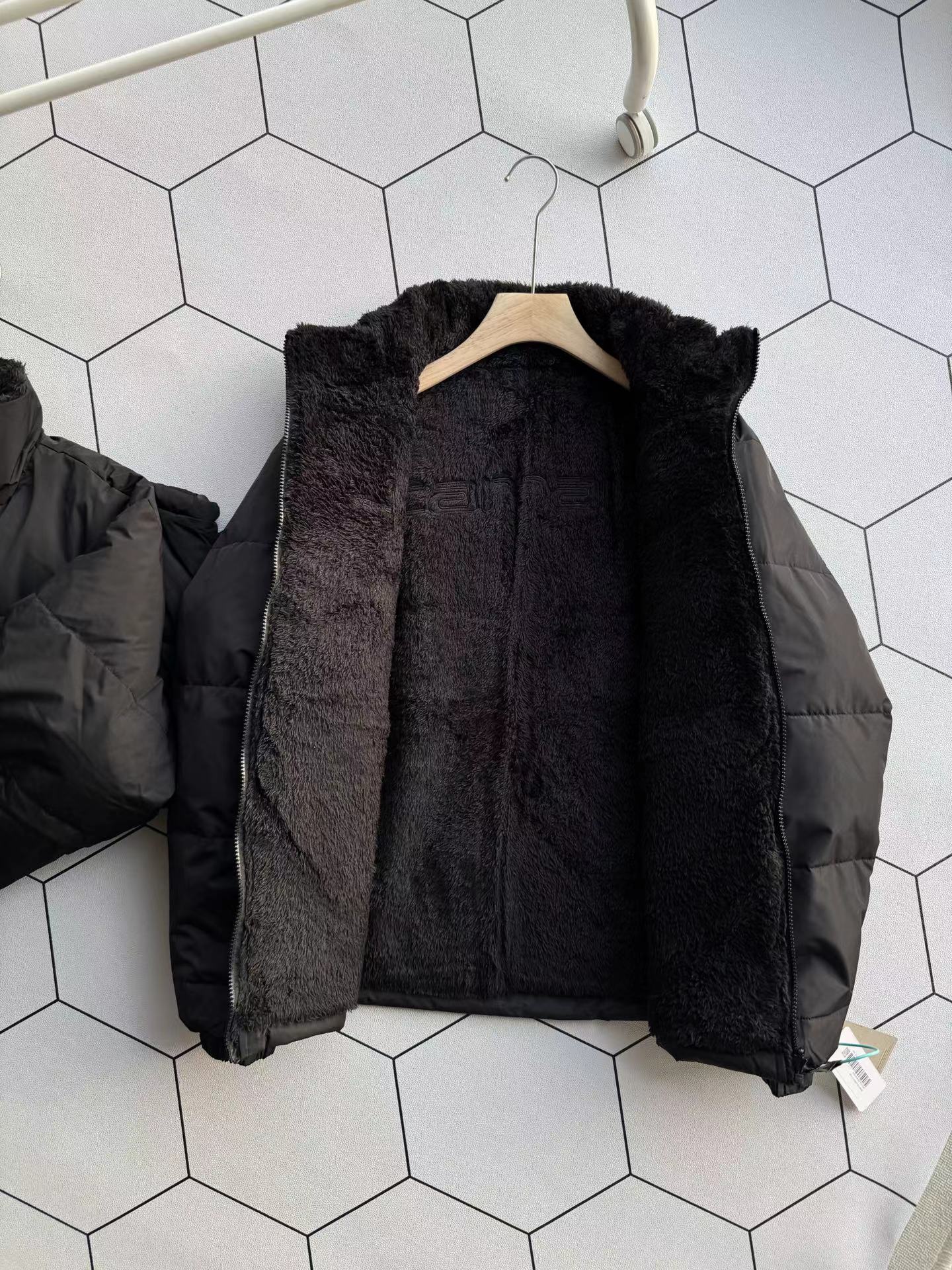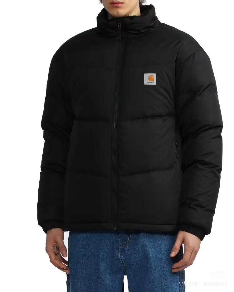 美式复古Logo立领羽绒保暖防寒夹克外套男女款双面可穿,羽绒充绒