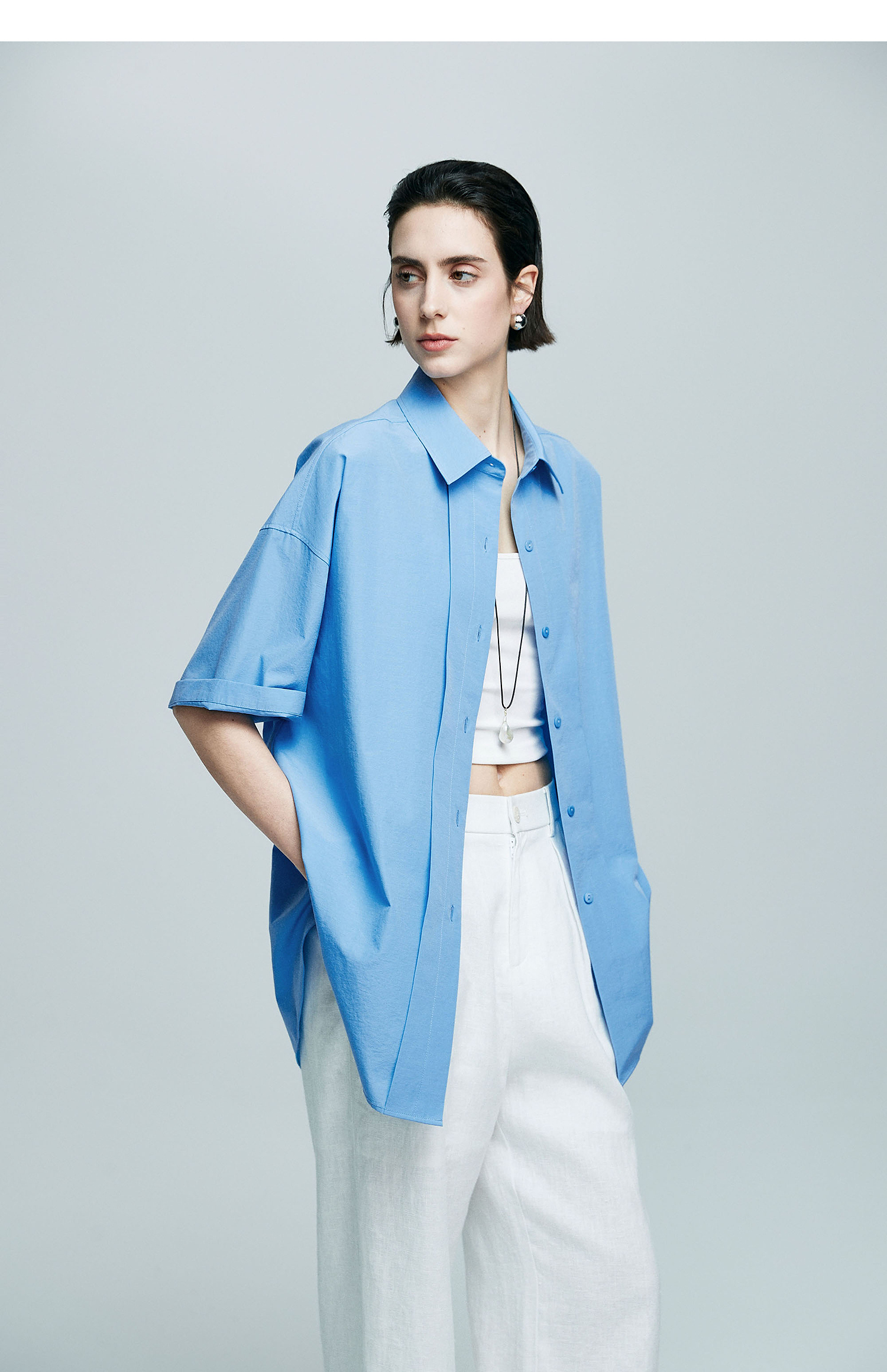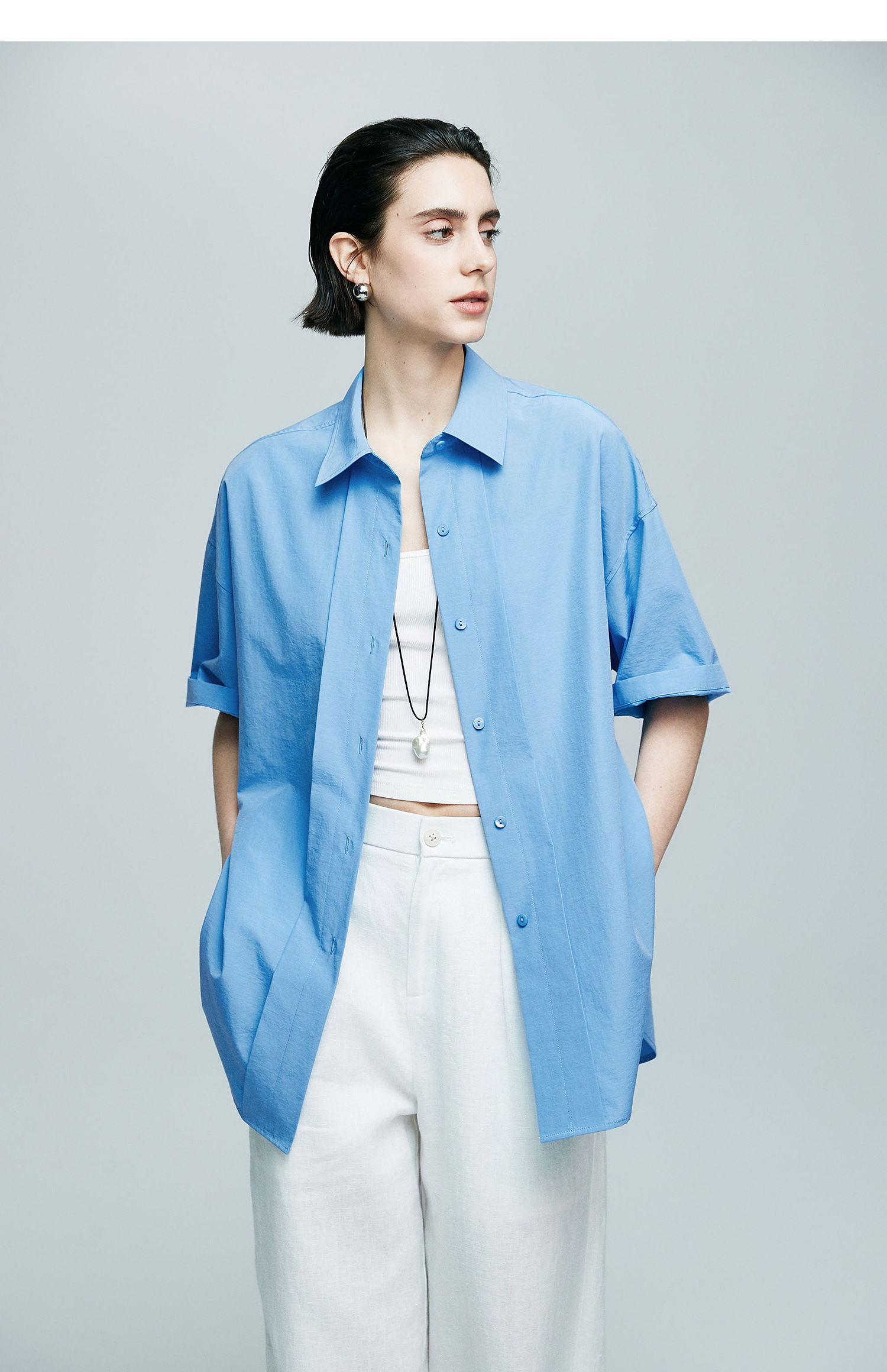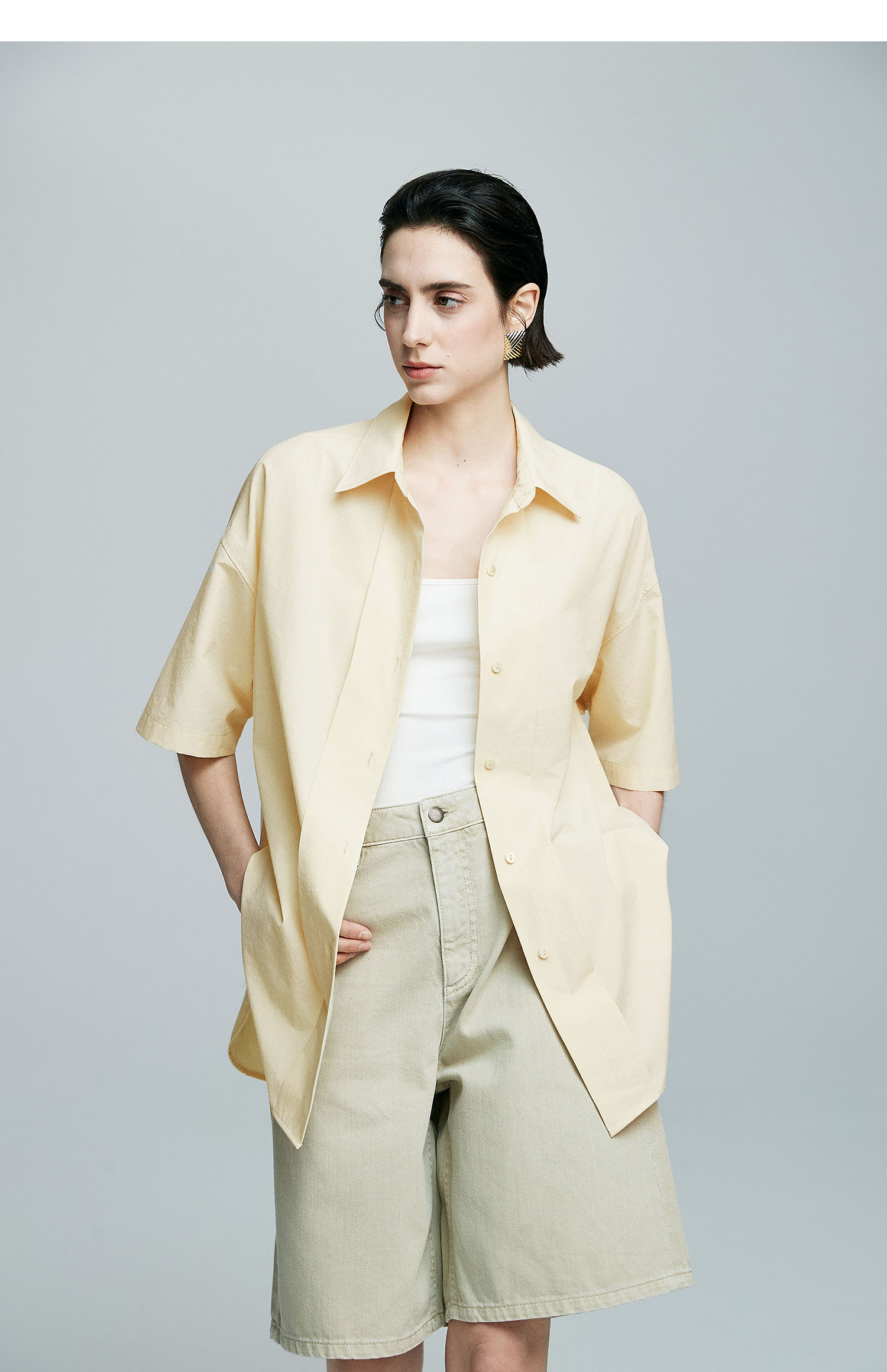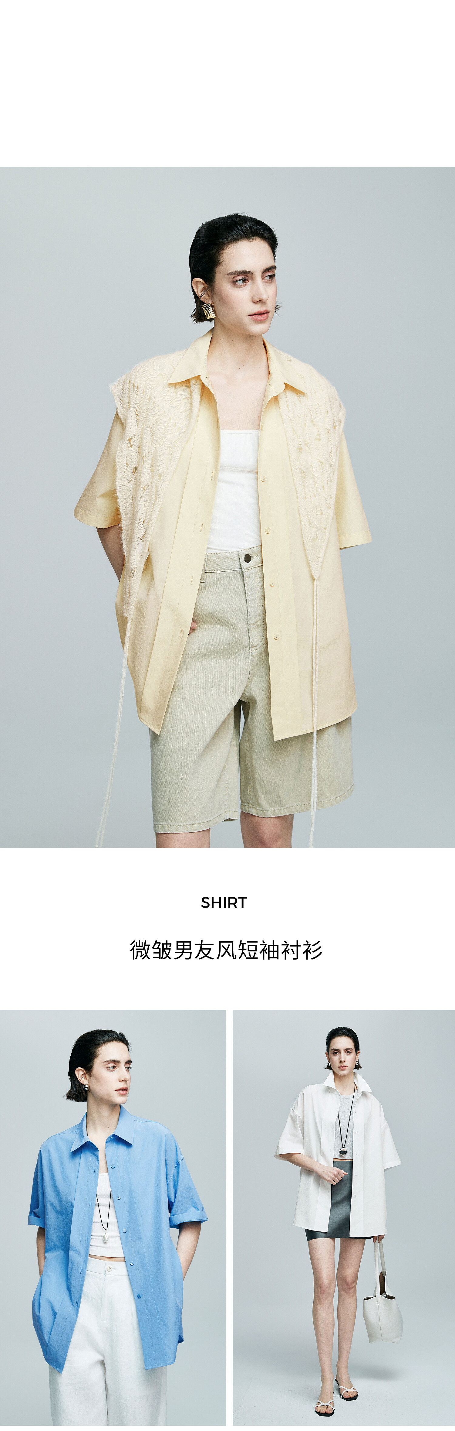 棉仓363604017-初棉微皱男友风短袖衬衫