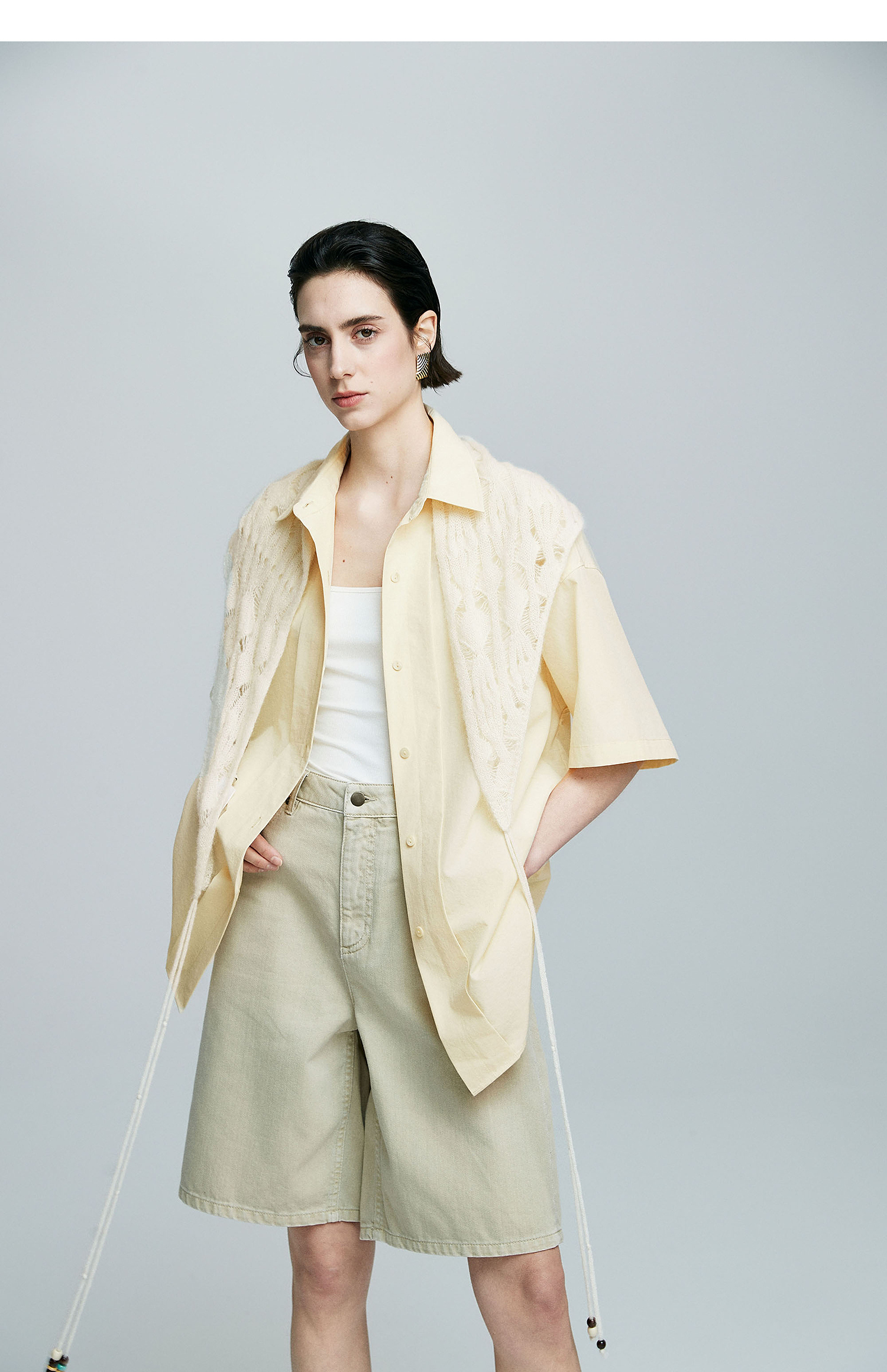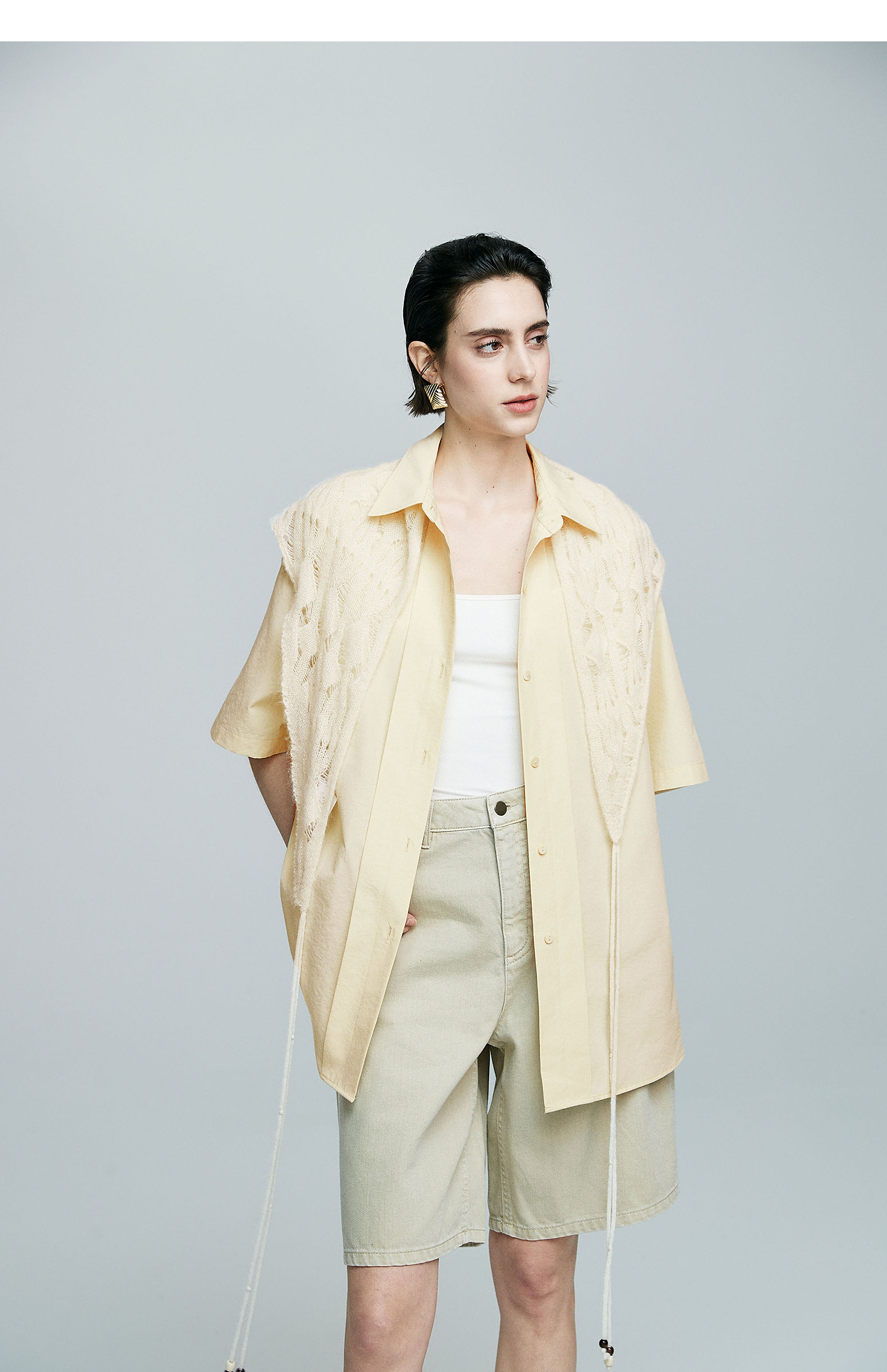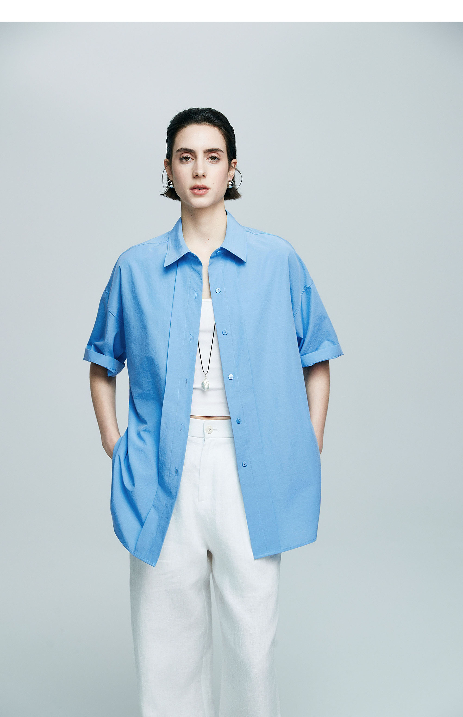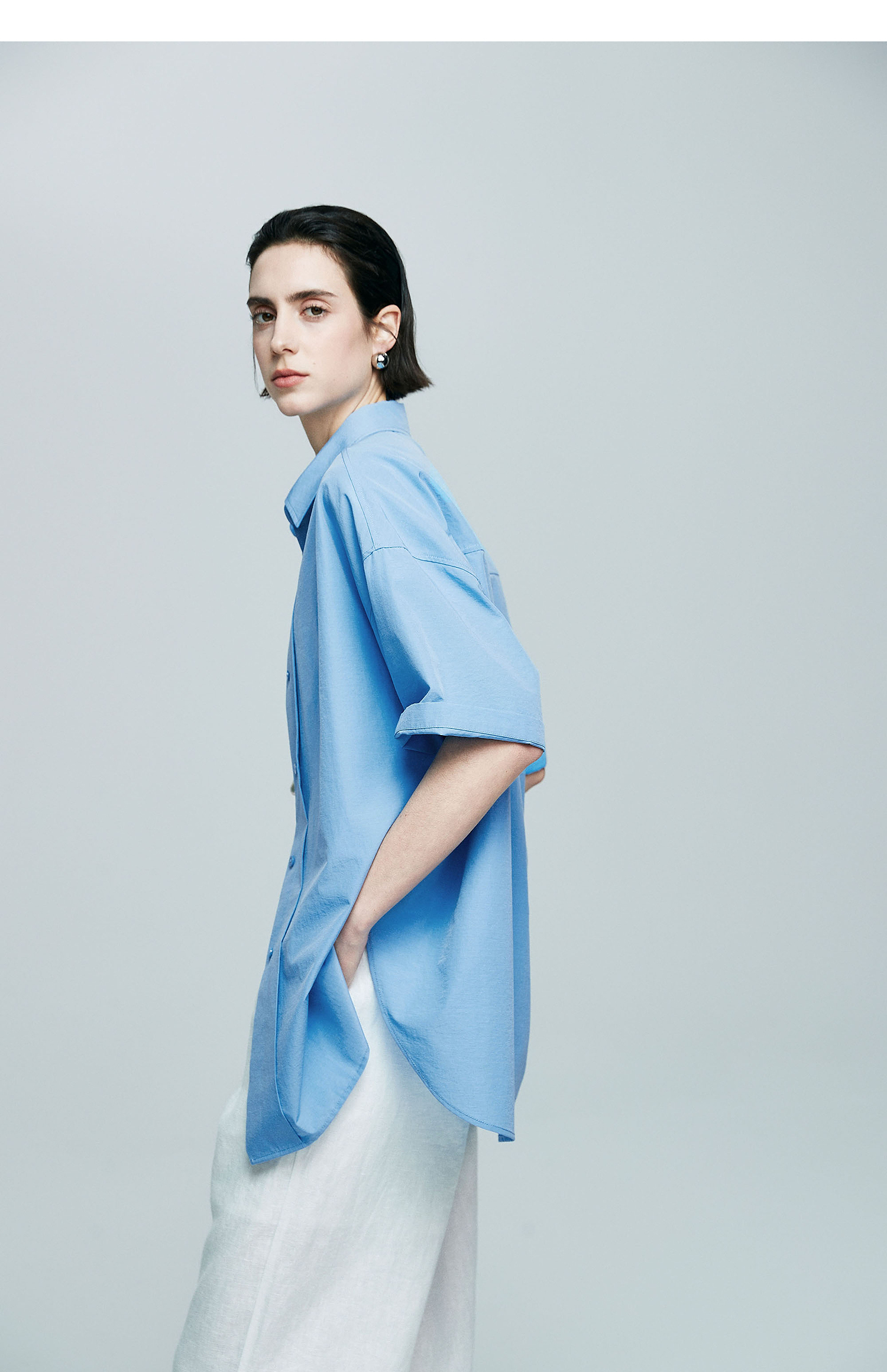 棉仓363604017-初棉微皱男友风短袖衬衫