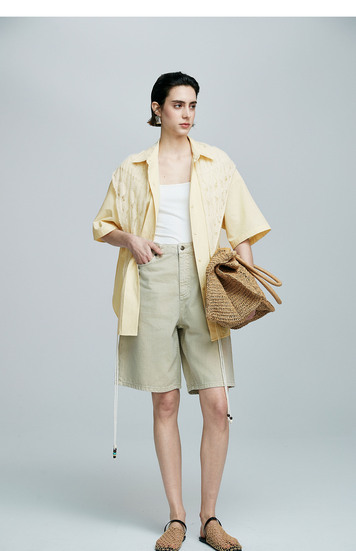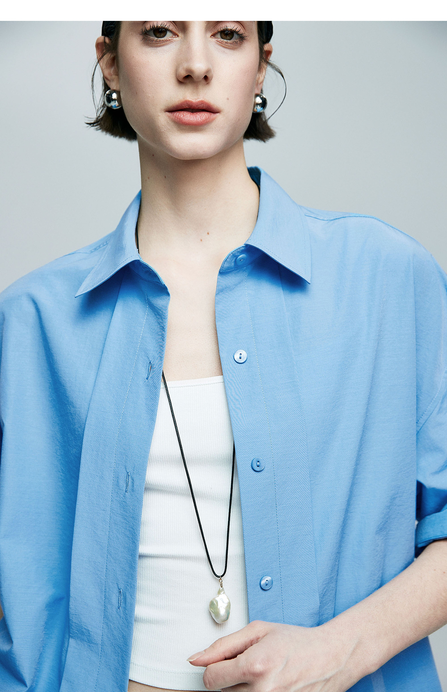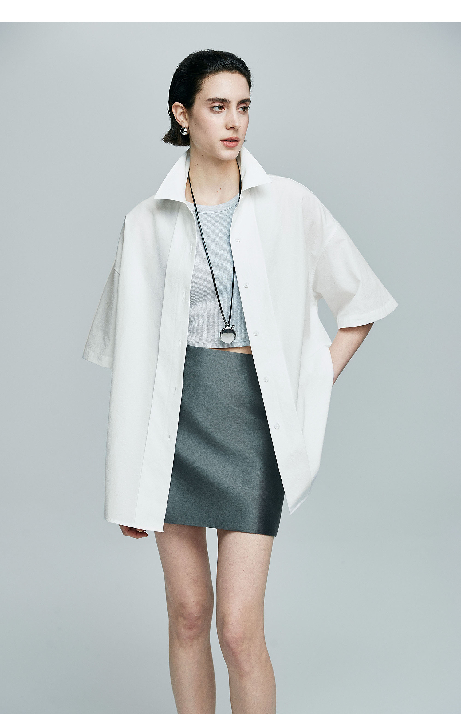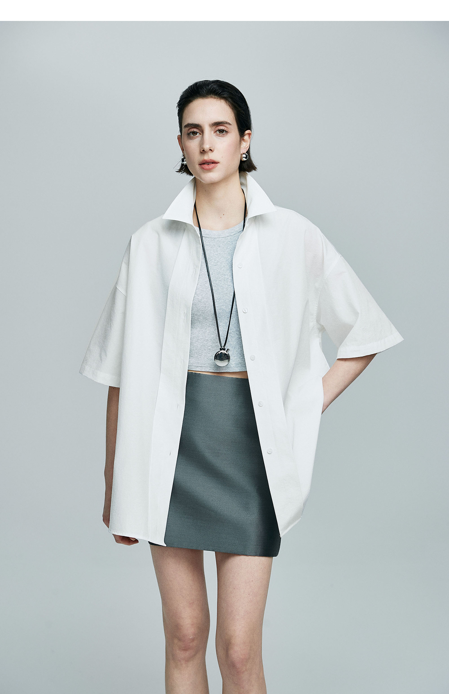 棉仓363604017-初棉微皱男友风短袖衬衫
