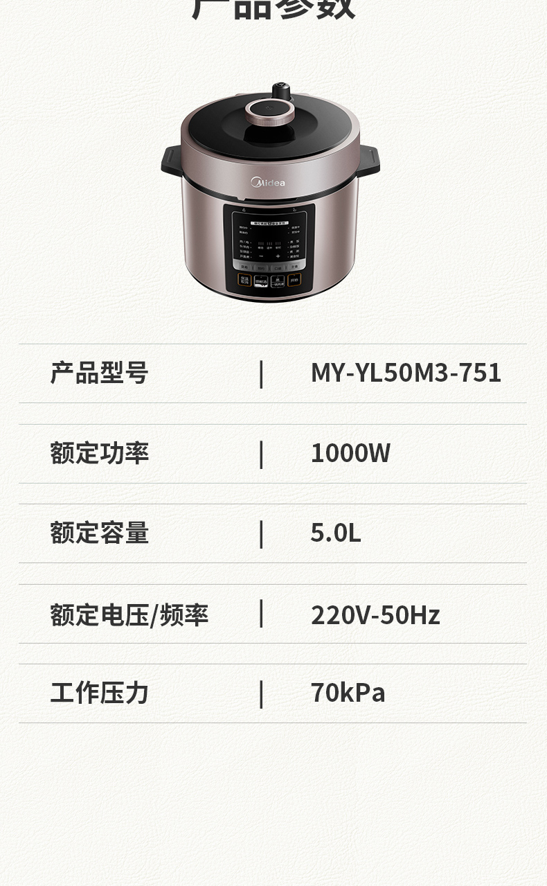 Midea/美的 MY-YL50M3-751电压力锅5L家用智能多功能全自动高压锅