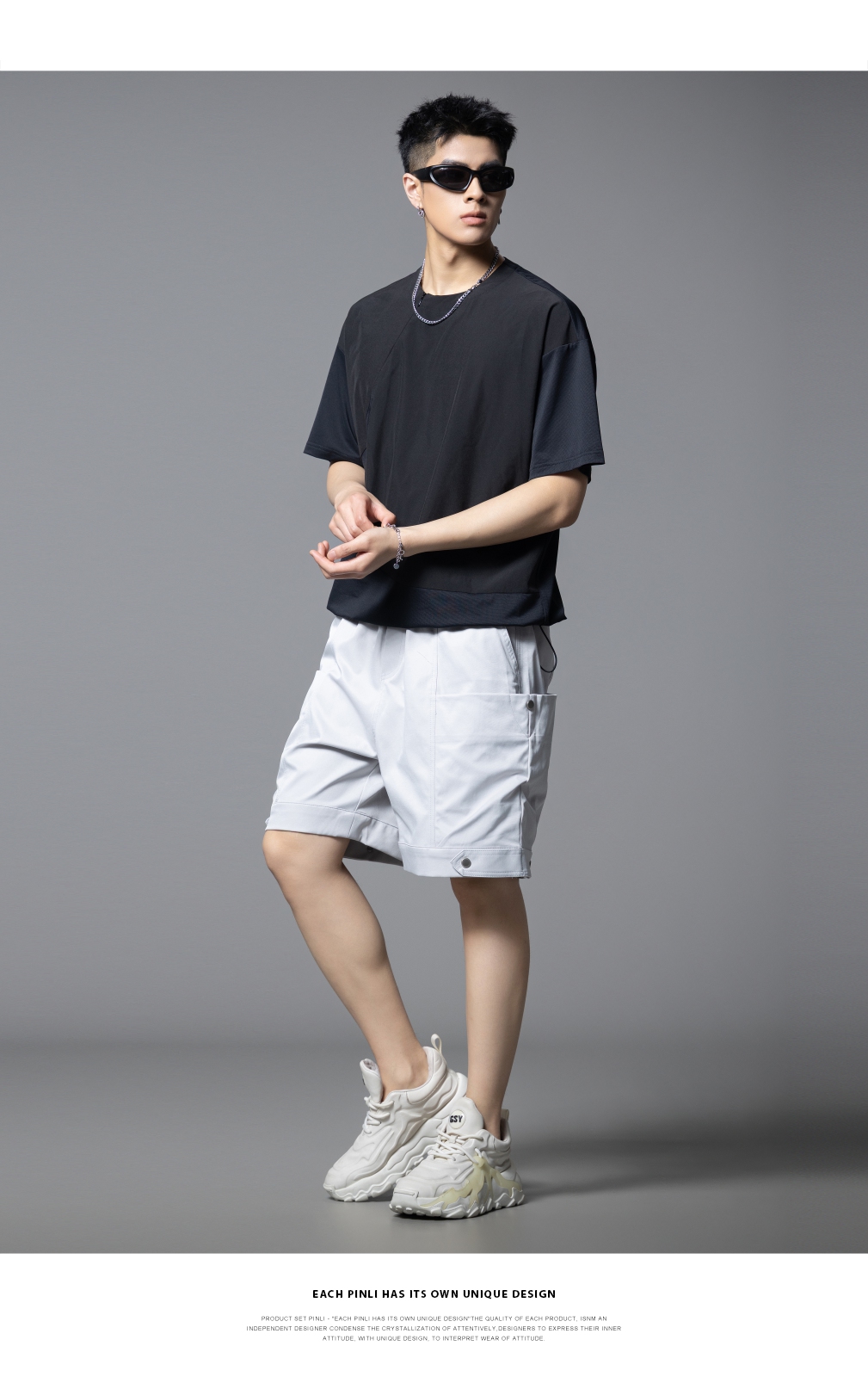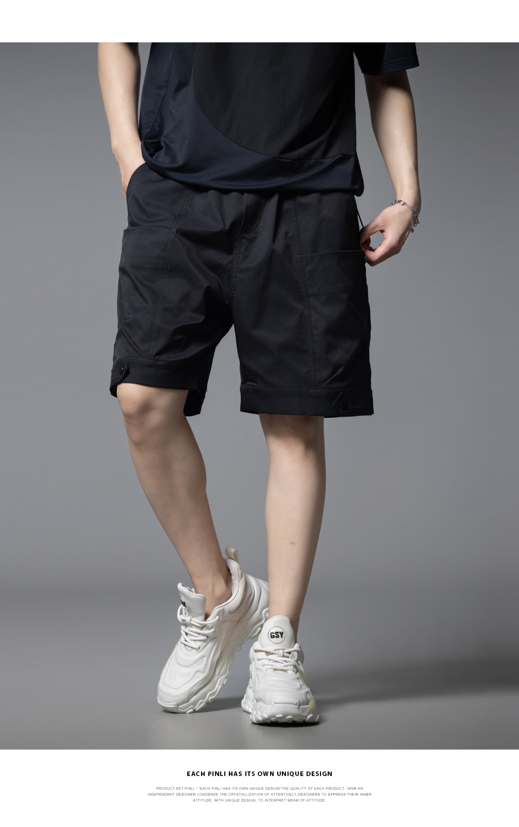PINLI品立2025夏季新款美式高街宽松短裤潮男工装百搭休闲五分裤GD252117343