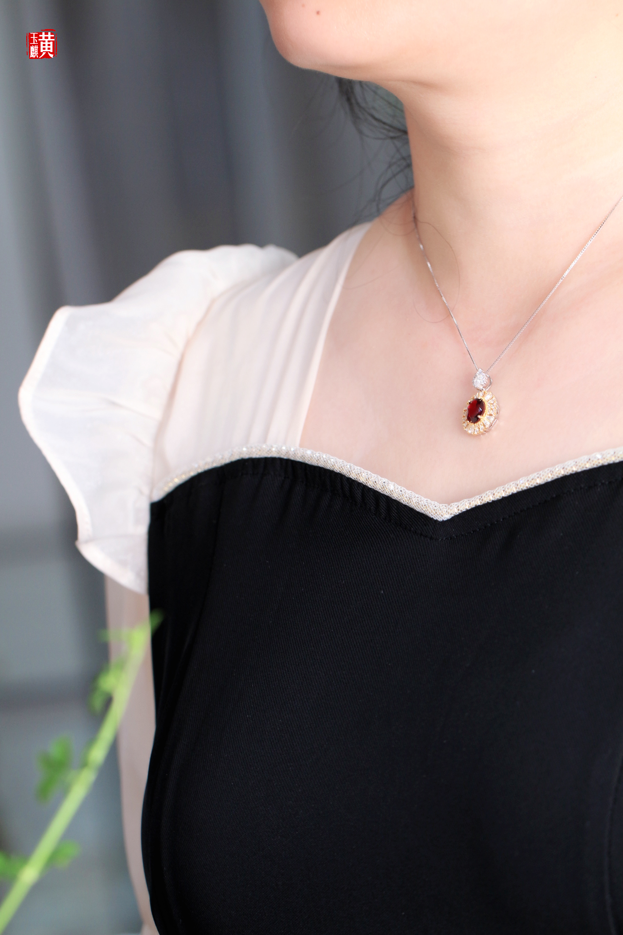 石榴石项链/赠银链
