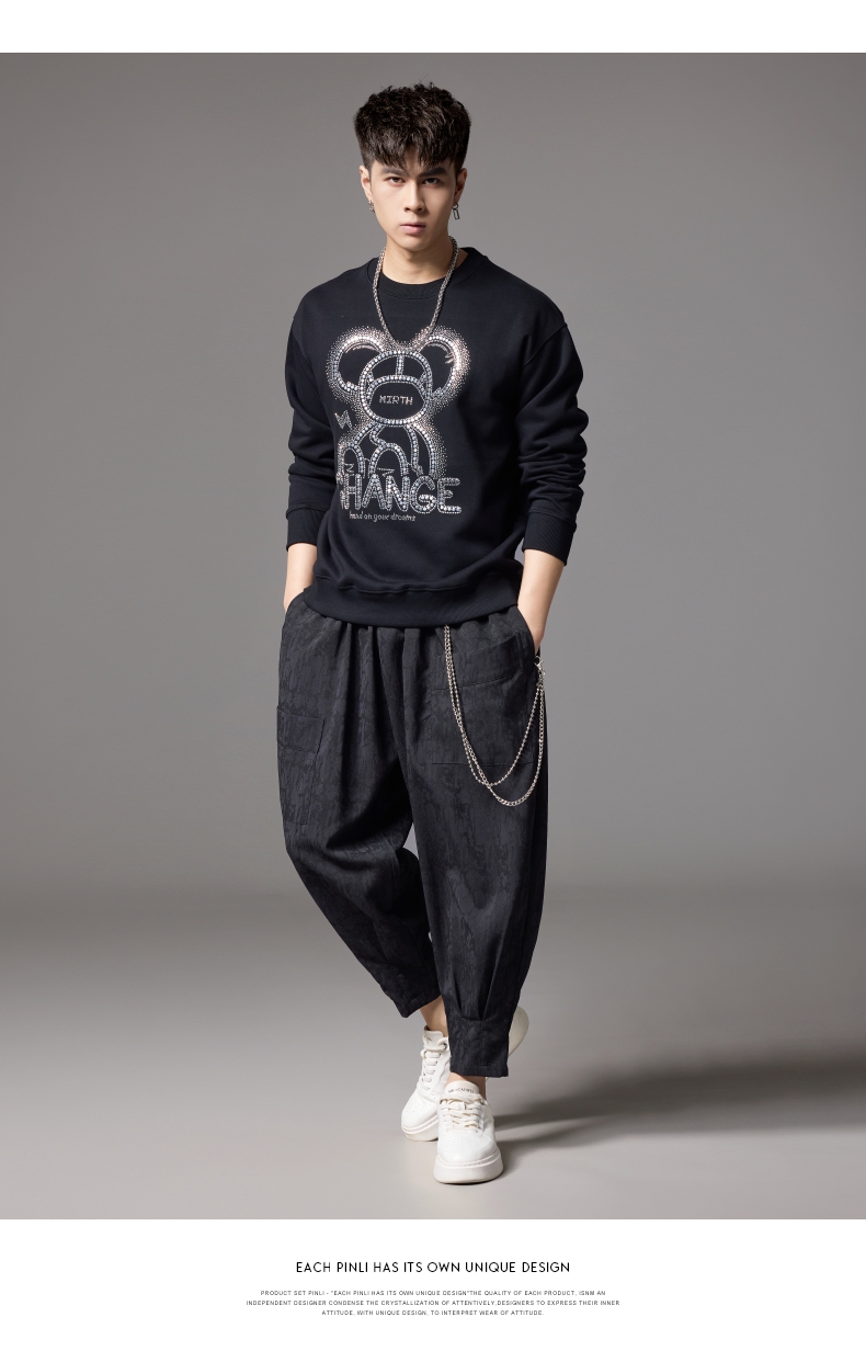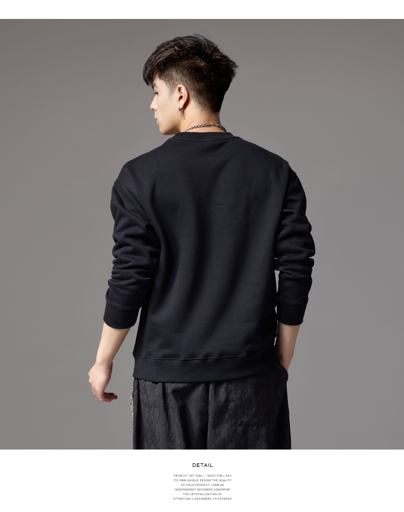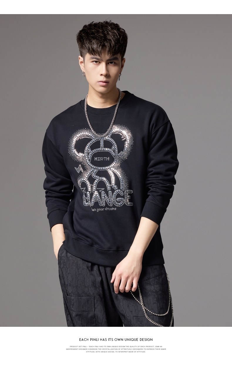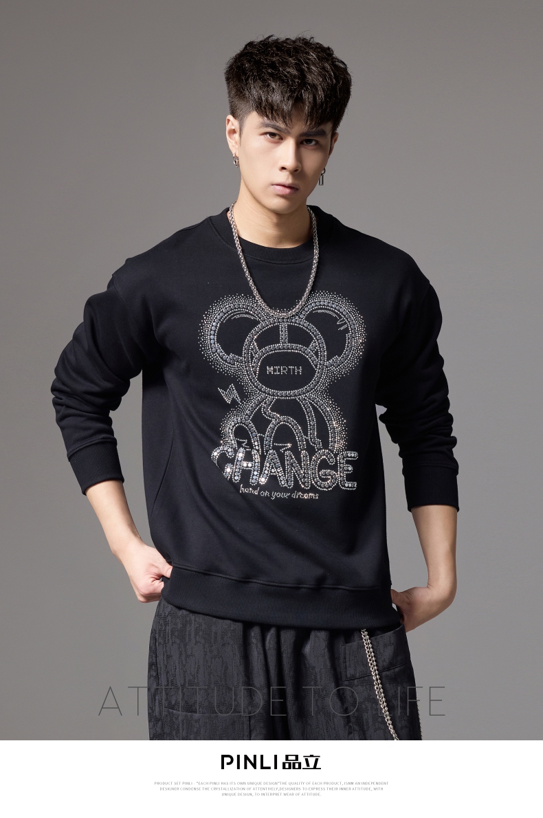 PINLI品立2024秋季新款金属烫片套头卫衣宽松潮牌休闲圆领男上衣BG243109034