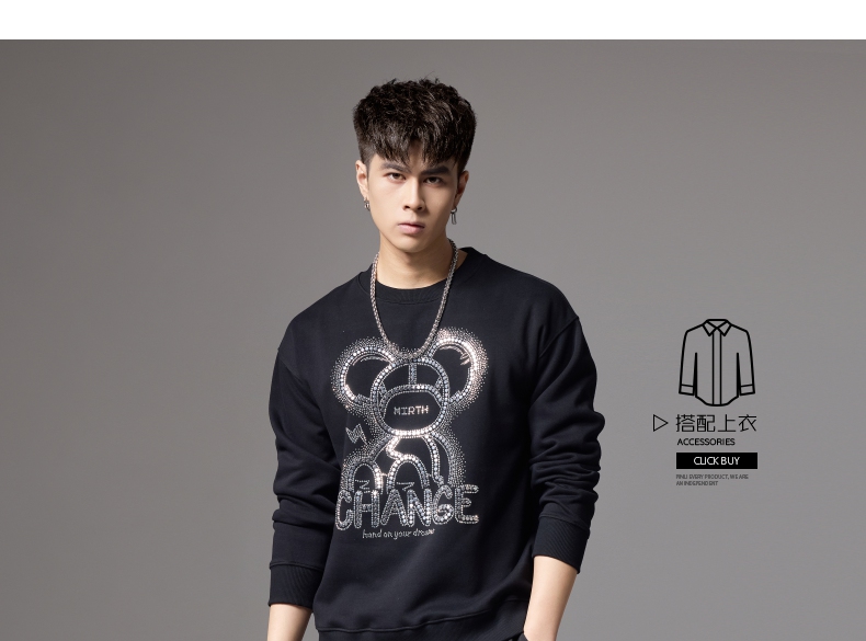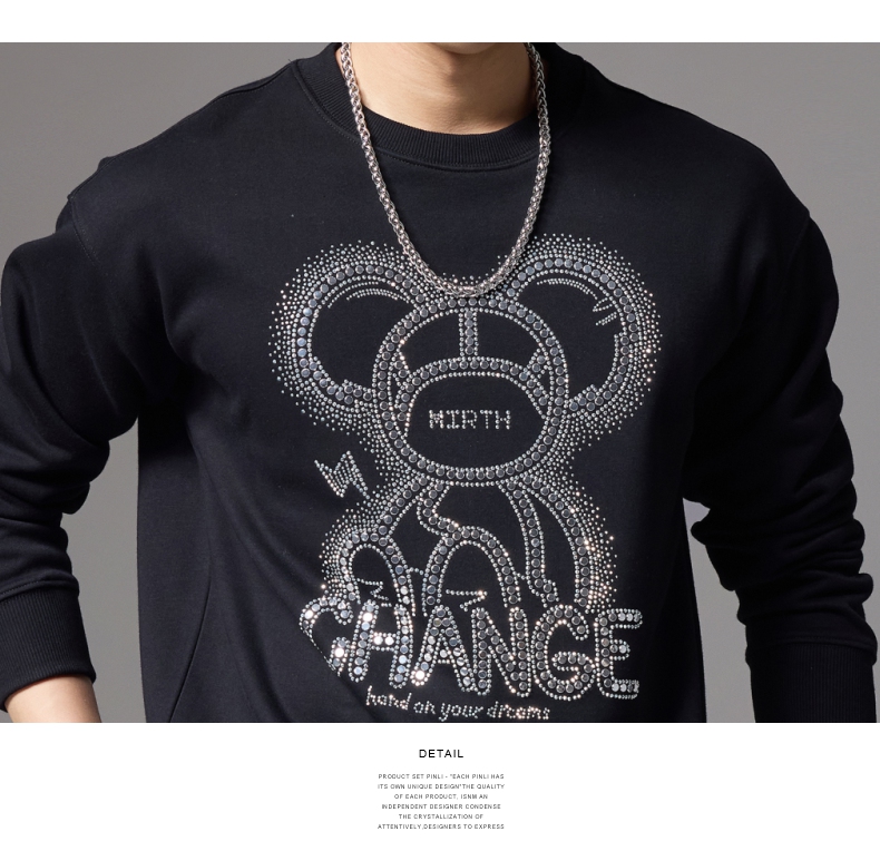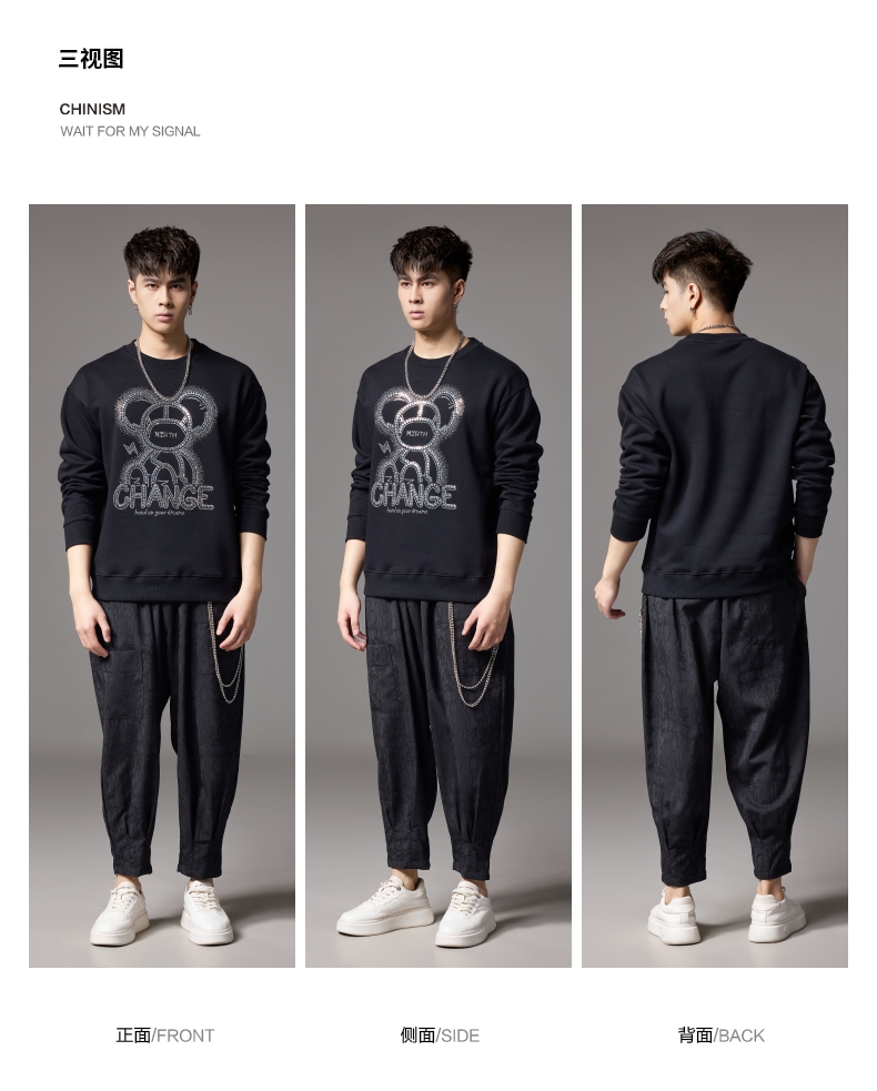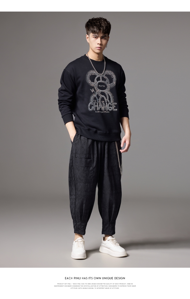 PINLI品立2024秋季新款金属烫片套头卫衣宽松潮牌休闲圆领男上衣BG243109034