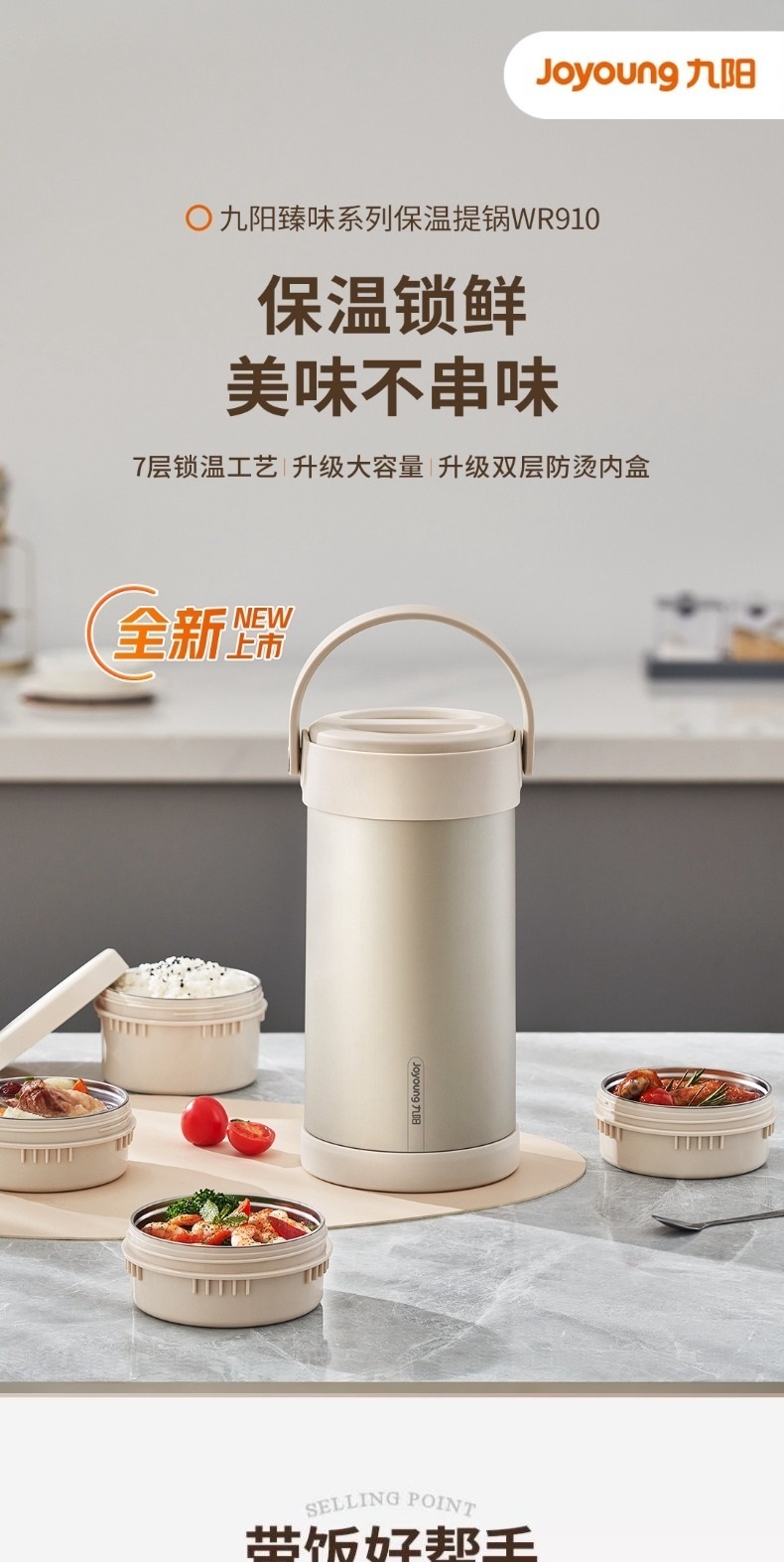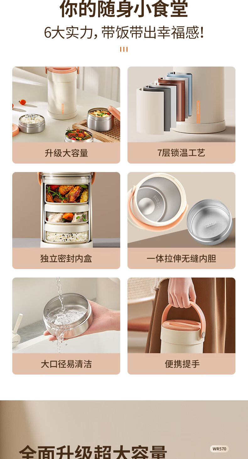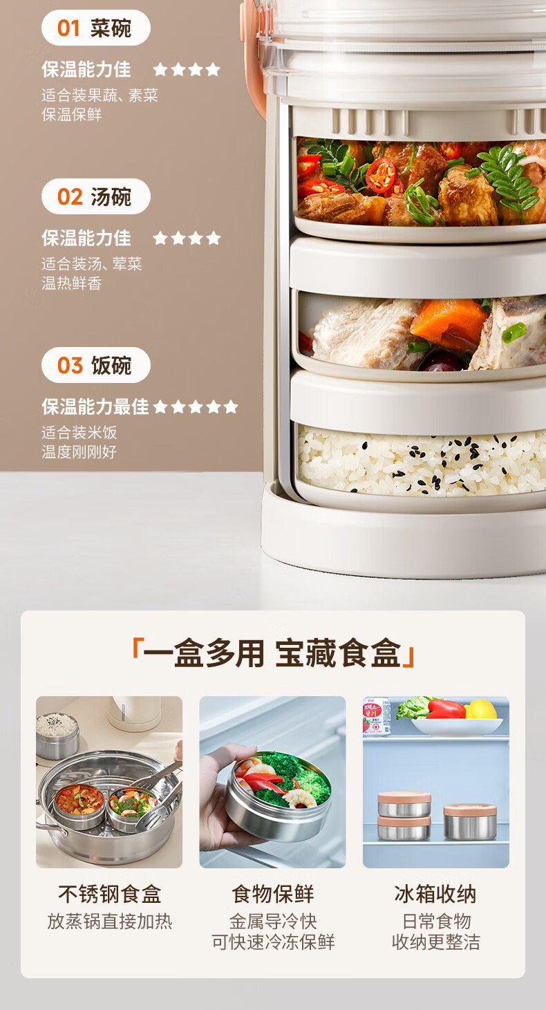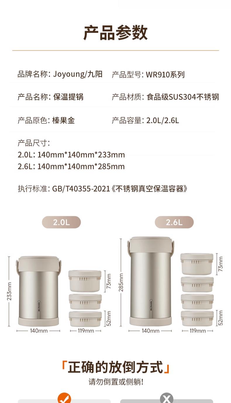九阳保温饭盒上班族带饭保温提锅便当盒学生专用饭盒不锈钢保温桶