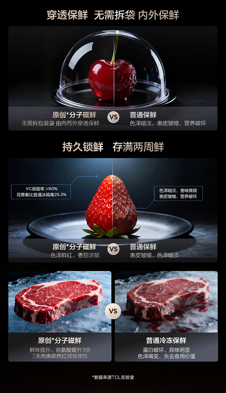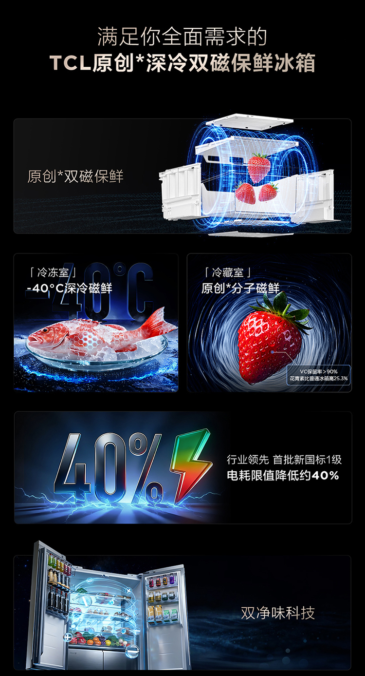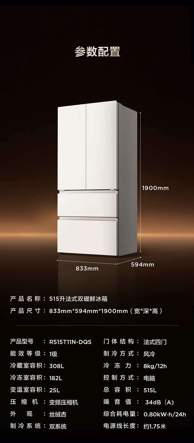 【新品上市】TCL 双磁鲜515升法式多门深冷磁鲜双系统双净味零嵌冰箱新一级 R515T11N-DQS