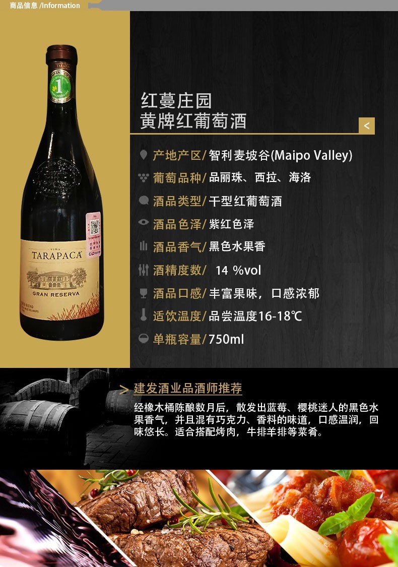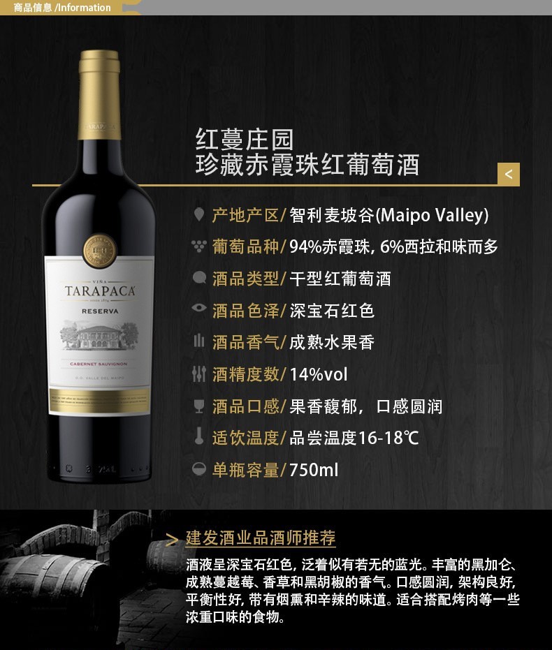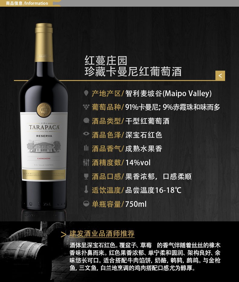 建发酒业 智利进口干红 红蔓庄园珍藏赤霞珠 卡曼尼 黄牌红葡萄酒 14度干红750ml 礼盒 红酒 珍藏赤霞珠