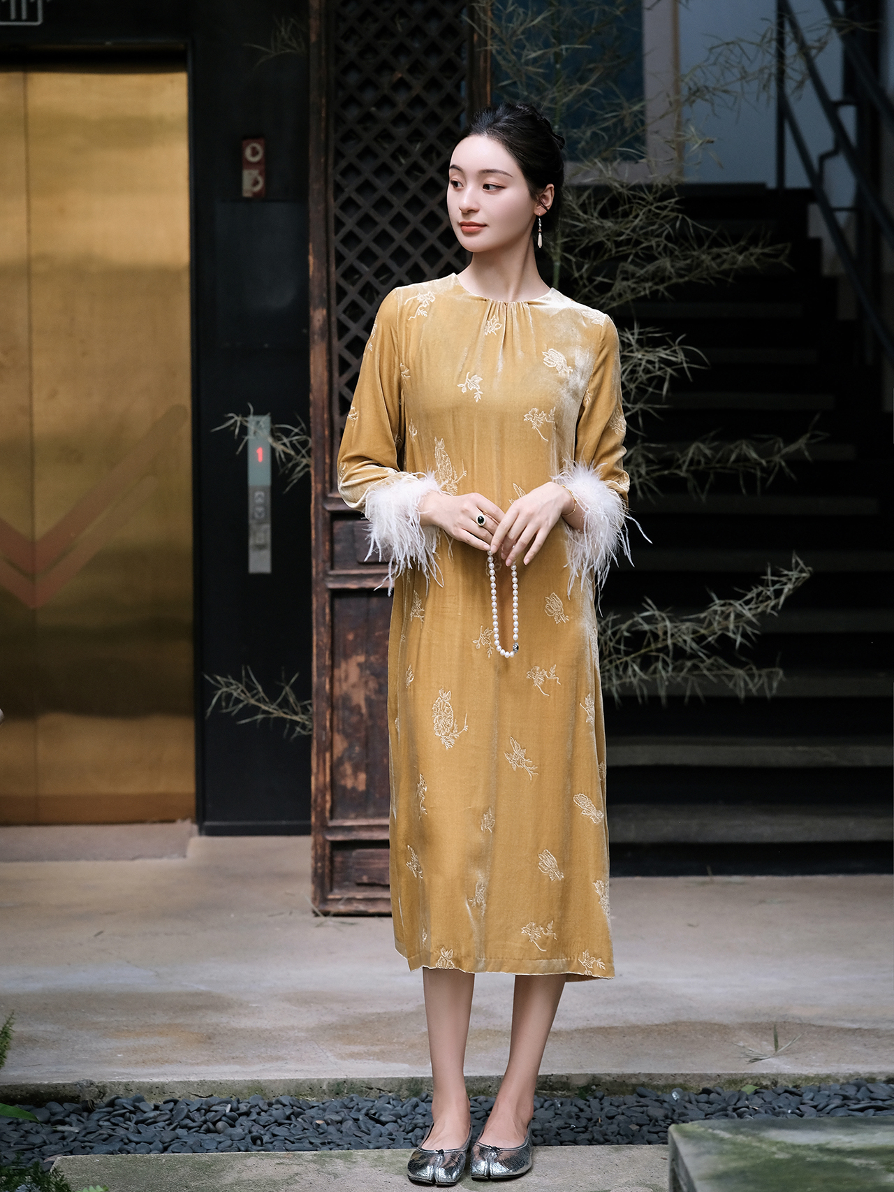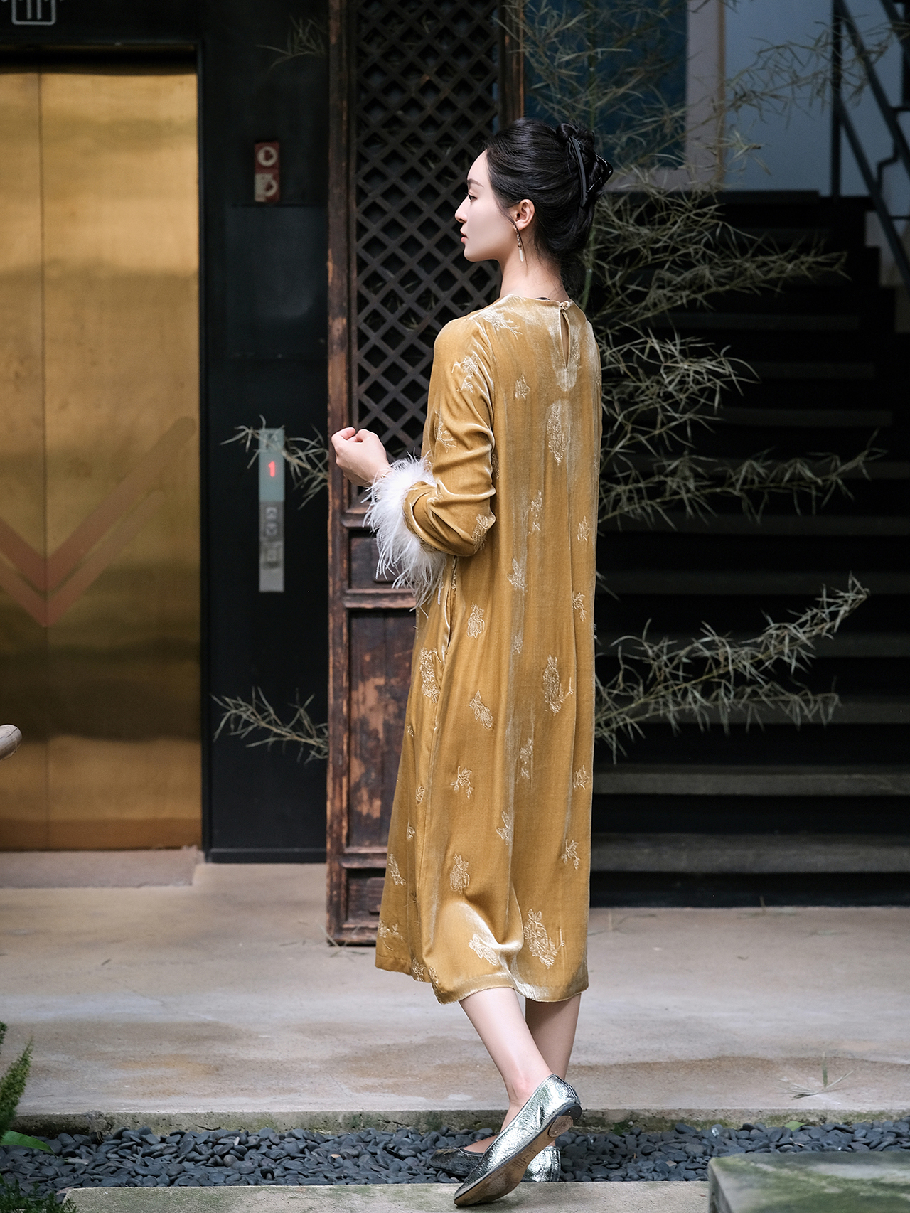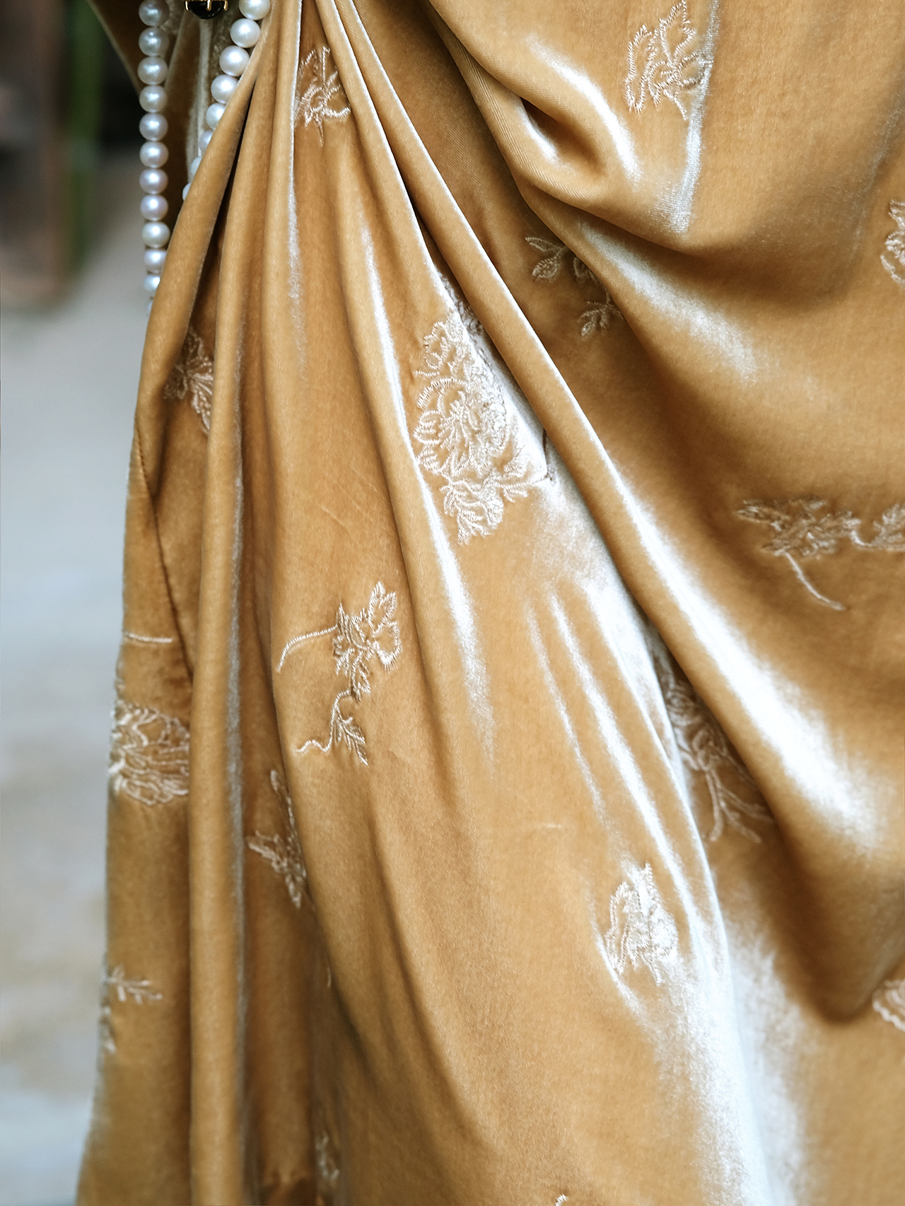 盛唐牡丹| 赤金色丝绒绣花长裙