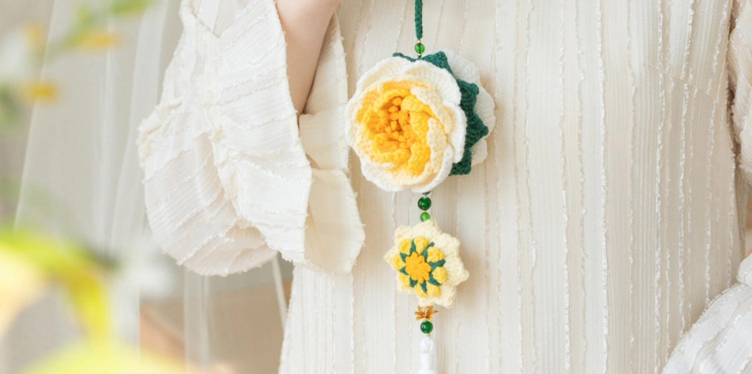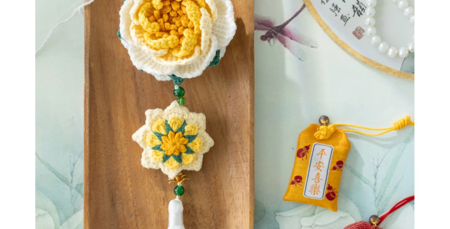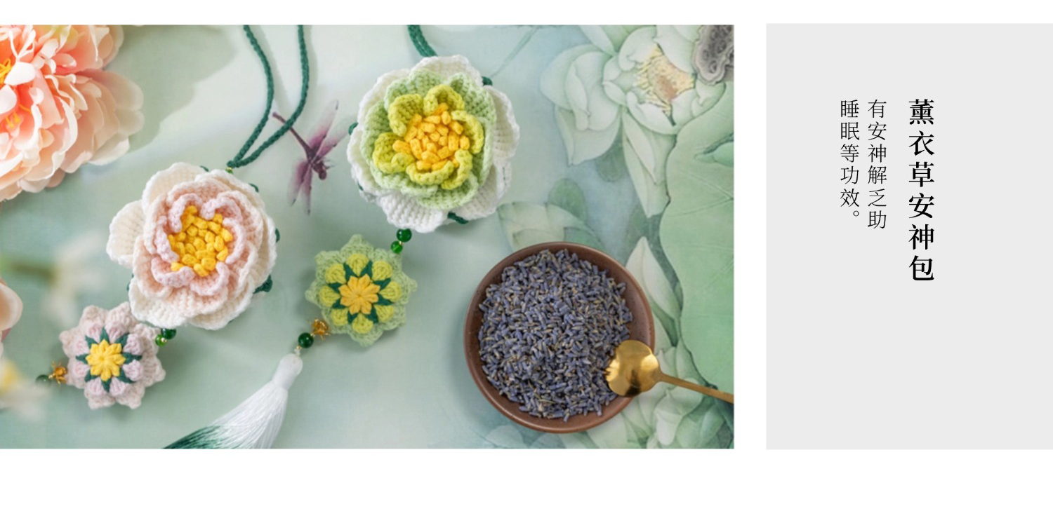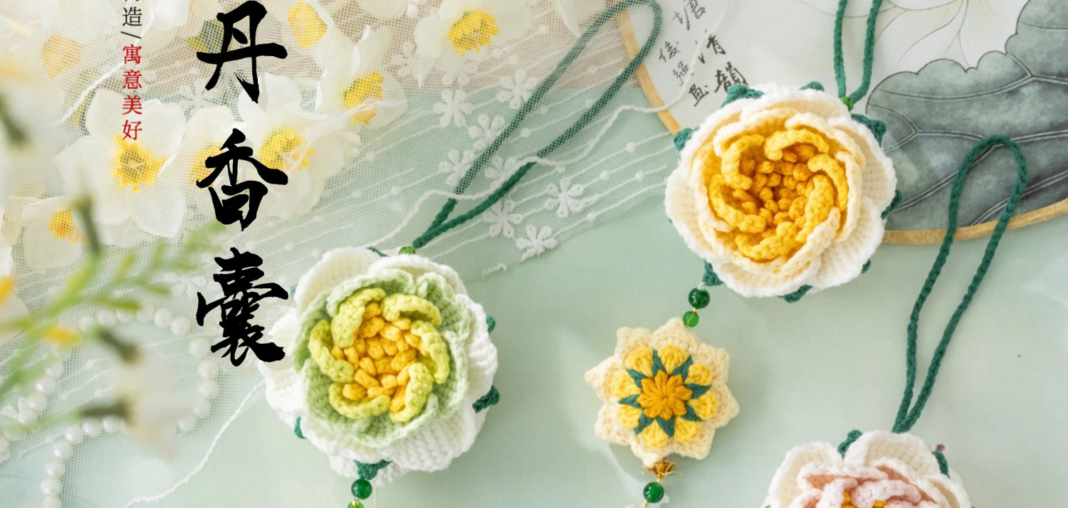 苏苏姐家洛神牡丹香囊挂件手工DIY手编钩针4股棉毛线团挂件材料包