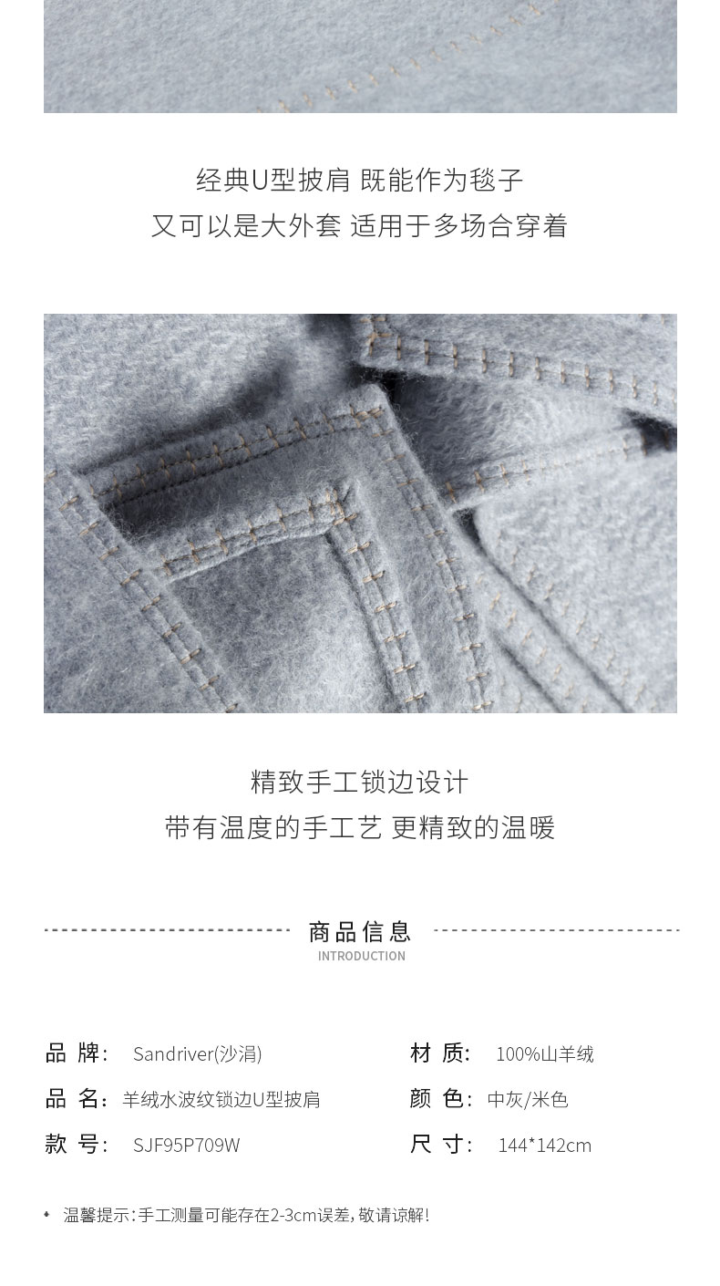 羊绒水波纹锁边U型披肩 SJF95P709W