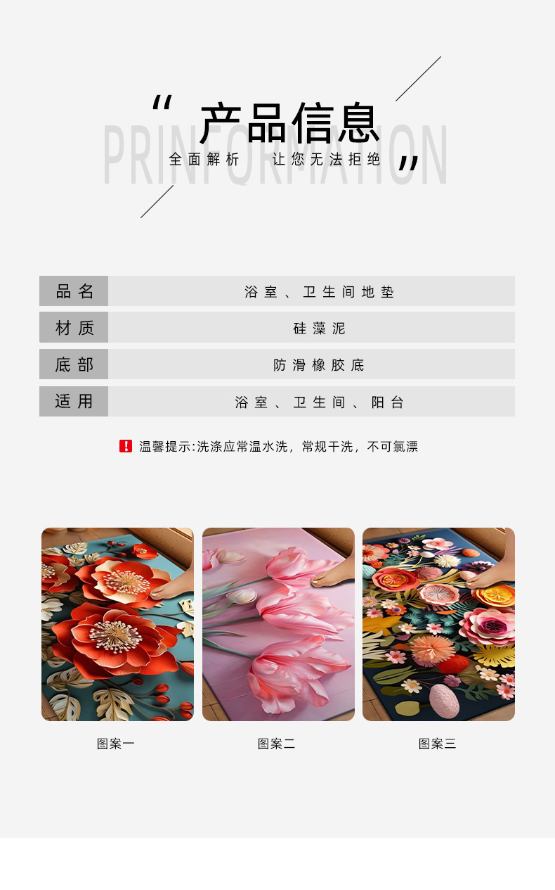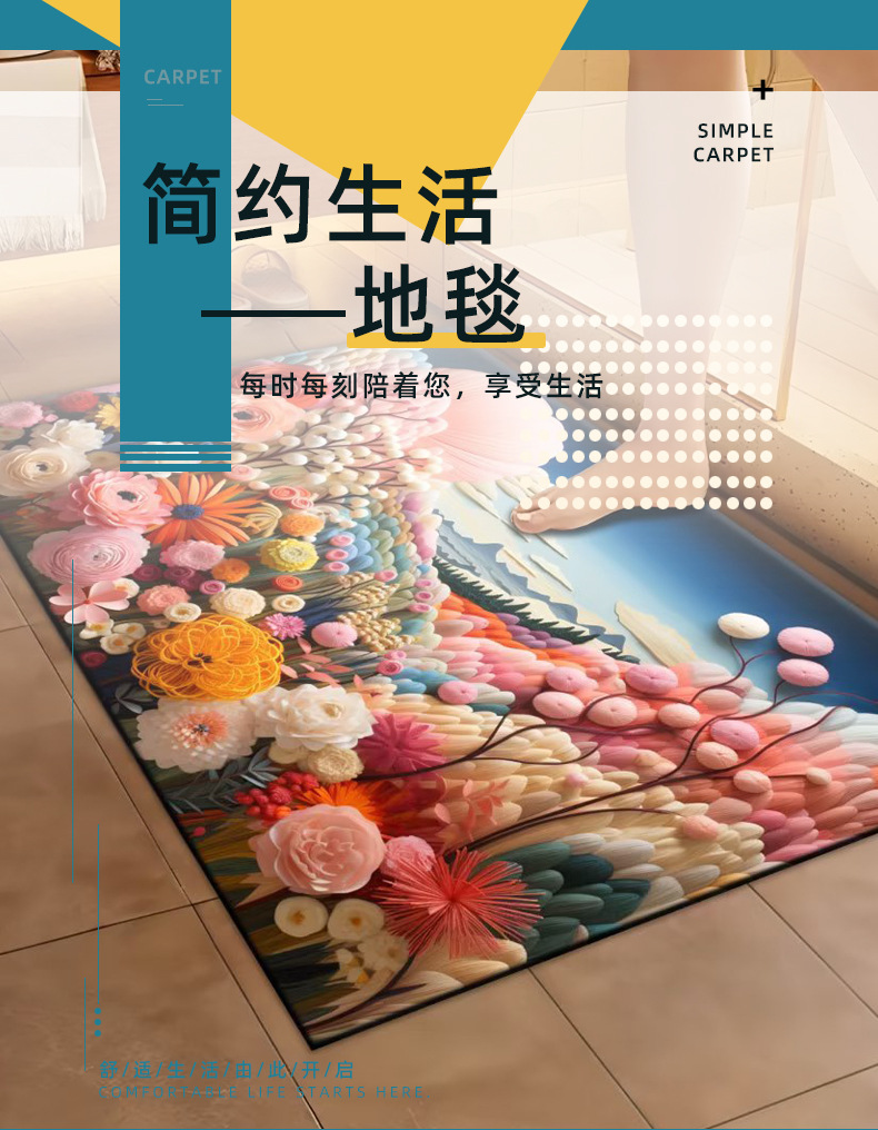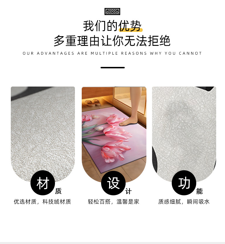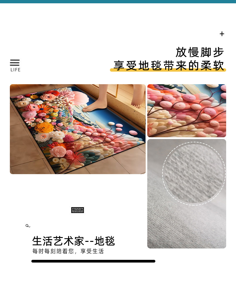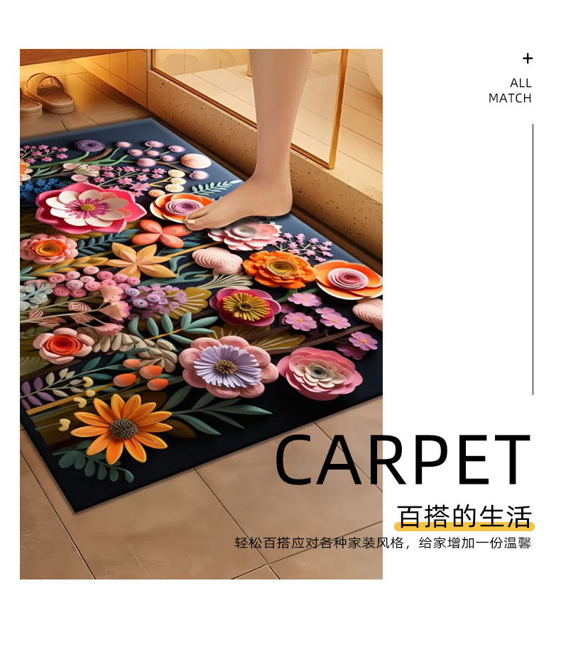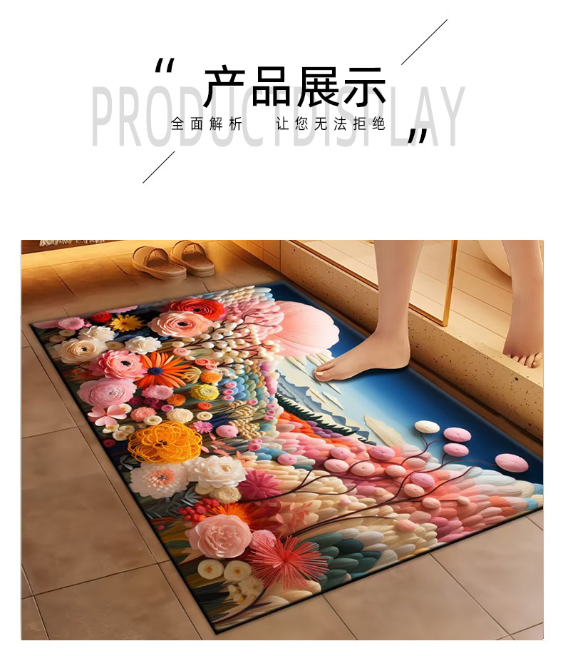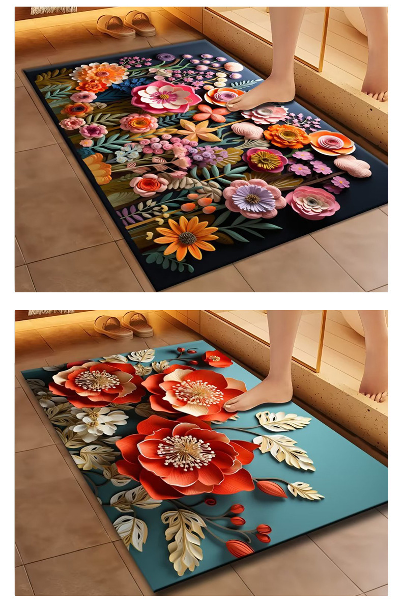【放慢脚步感受地毯带来的柔软】生活艺术家地毯,3秒吸水家用地垫立体硅藻泥脚垫,卫生间防滑门口浴室吸水地垫膨胀花朵软垫QQ