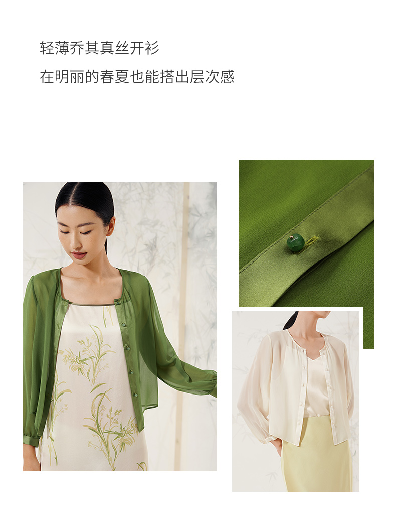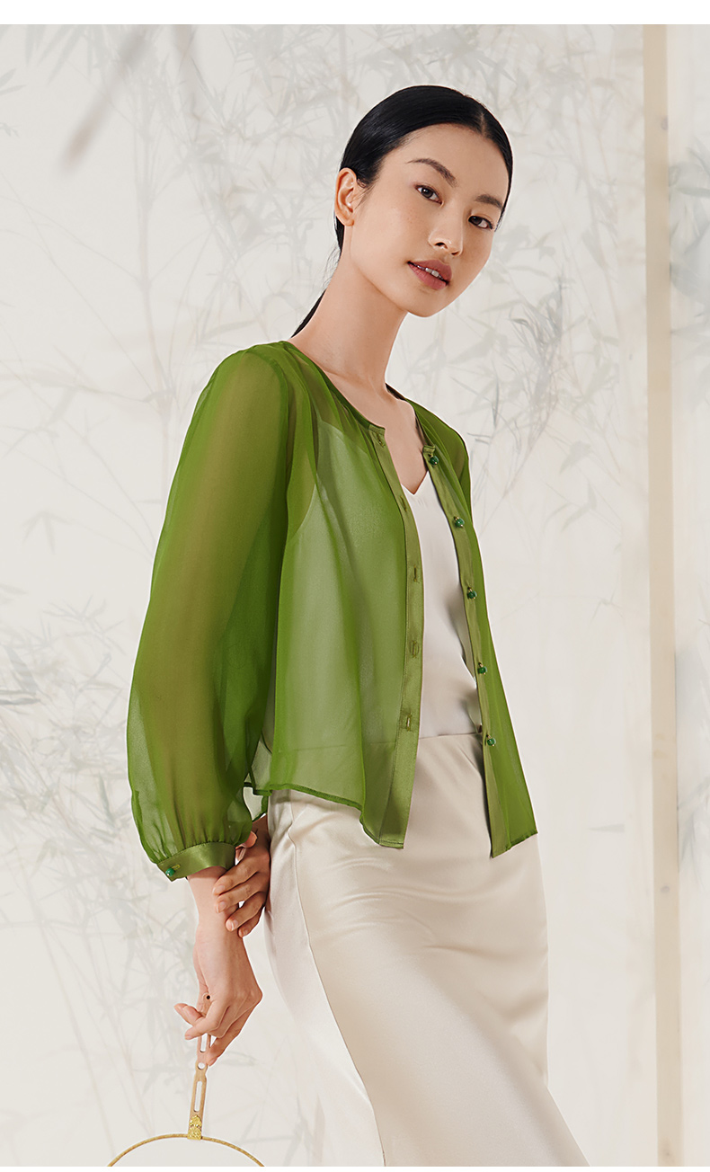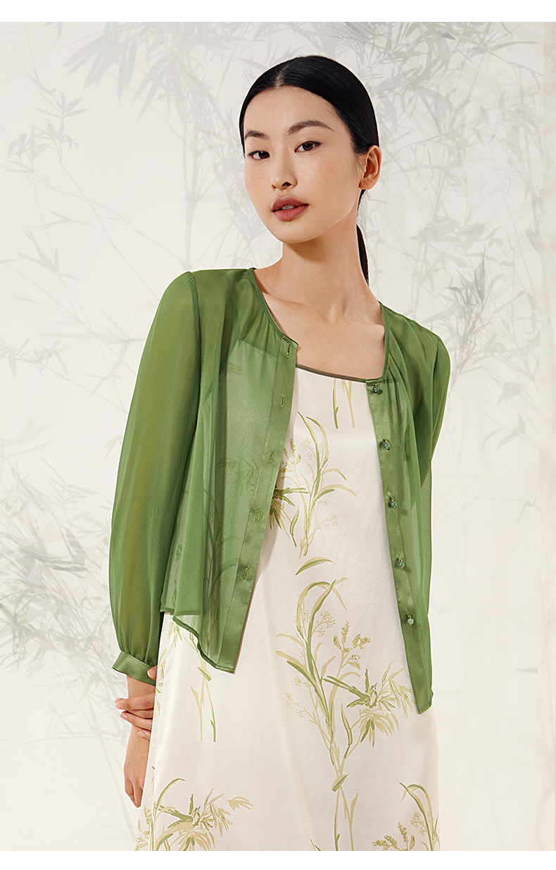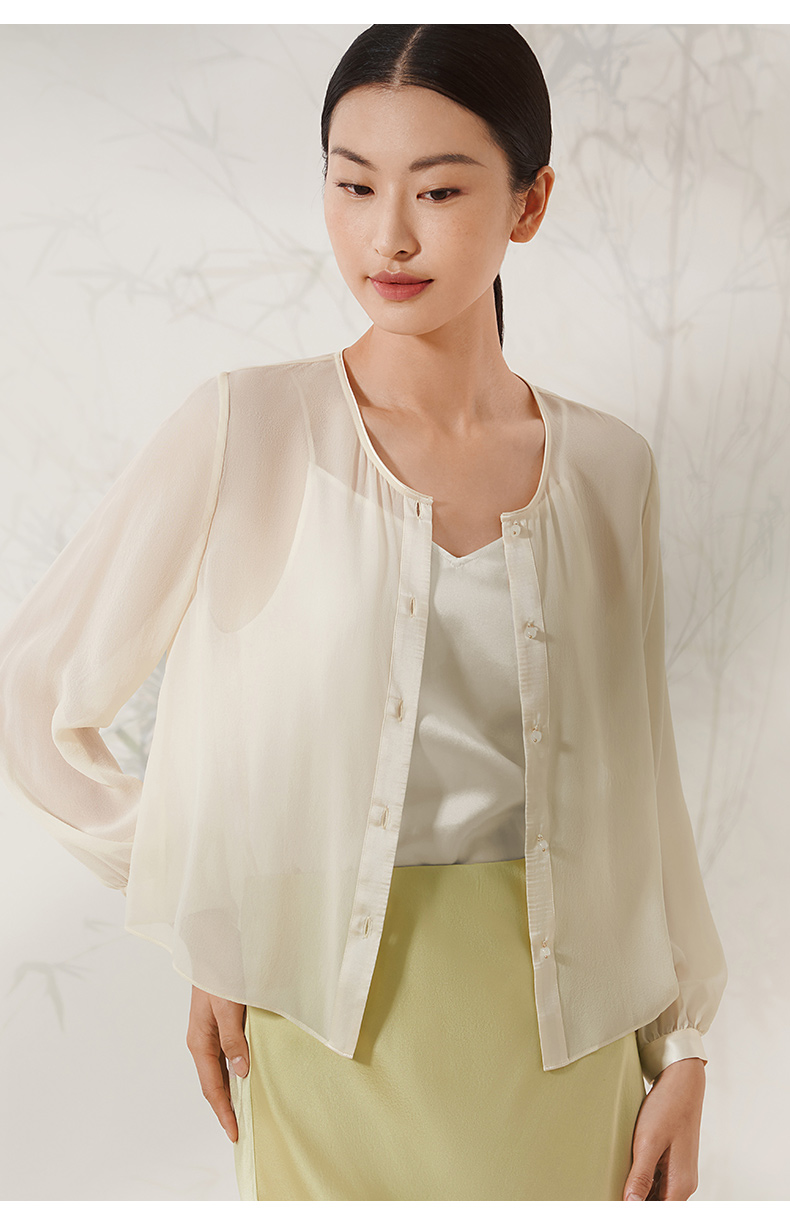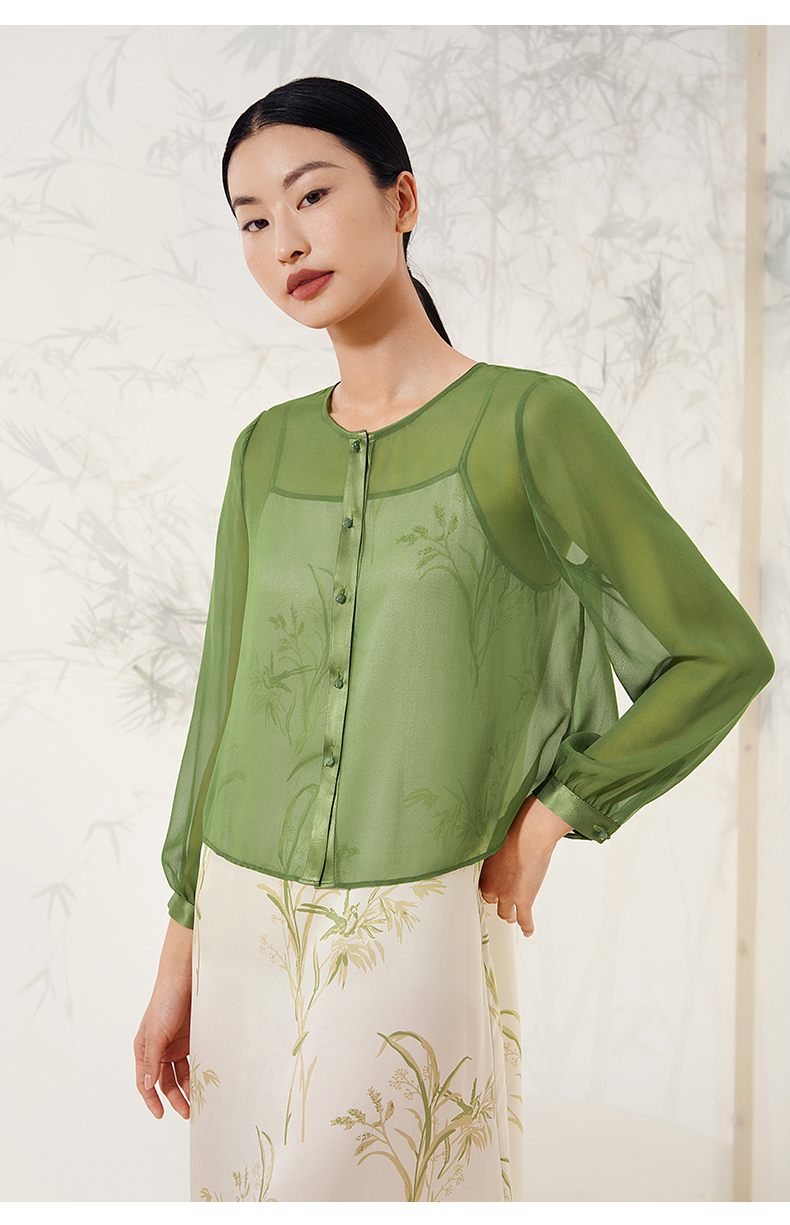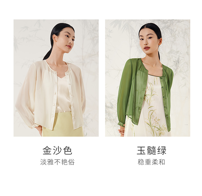 金三塔女真丝新中式小衫100%桑蚕丝新品 YSFEA701