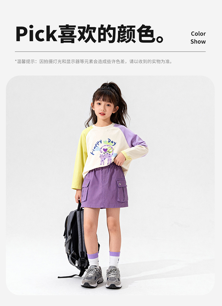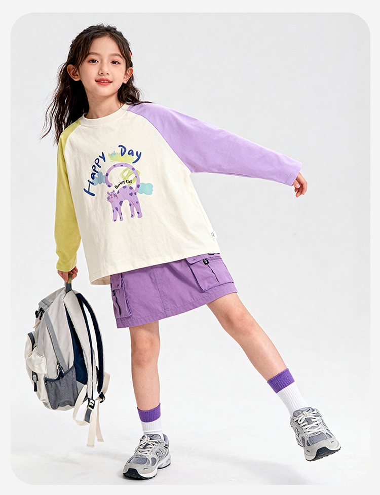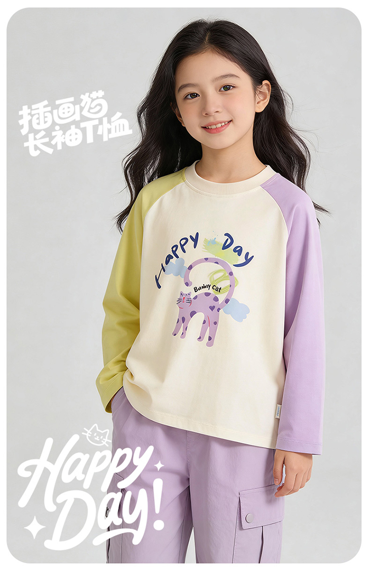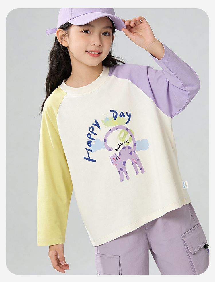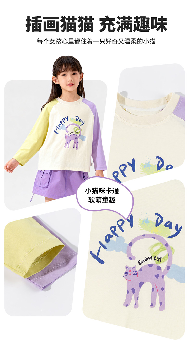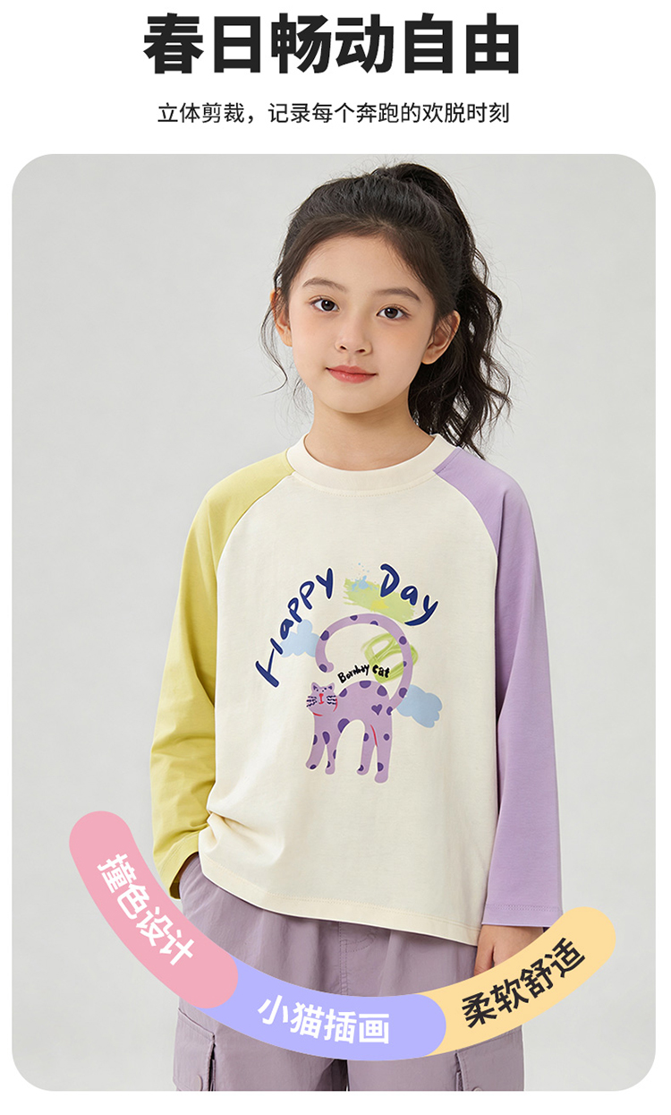 贝贝怡童装春秋款女童纯棉长袖上衣甜美蝴蝶结T恤宝宝洋气秋装ZB3CS003