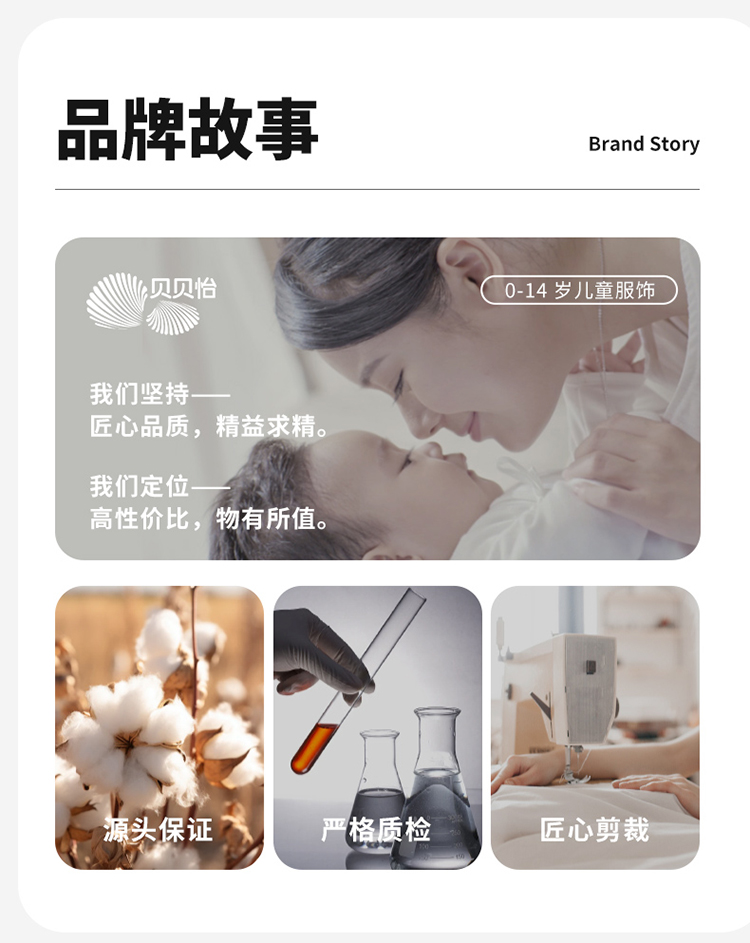 贝贝怡专注0-6岁婴幼儿服饰,坚持安全、柔软、舒适的产品理念,为千万中国家庭提供超高品质、安全可靠的婴幼儿服饰产品,妈妈放心,宝宝开心!