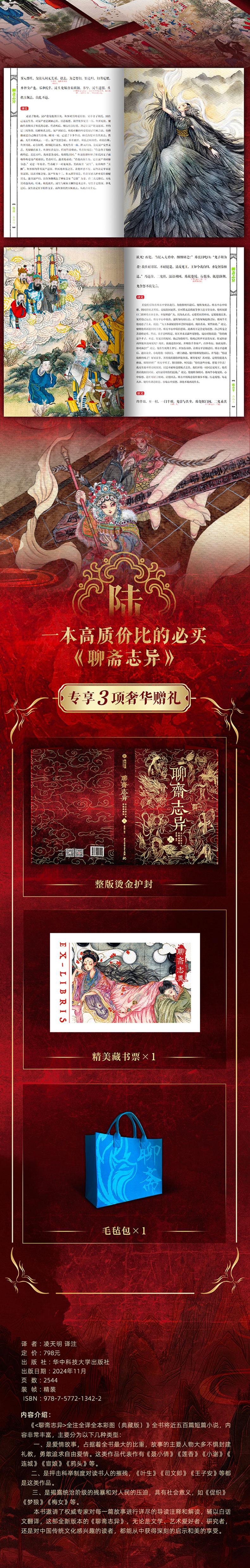 《聊斋志异》全注全译全本 精装彩图典藏版(上中下),赠送三大好礼