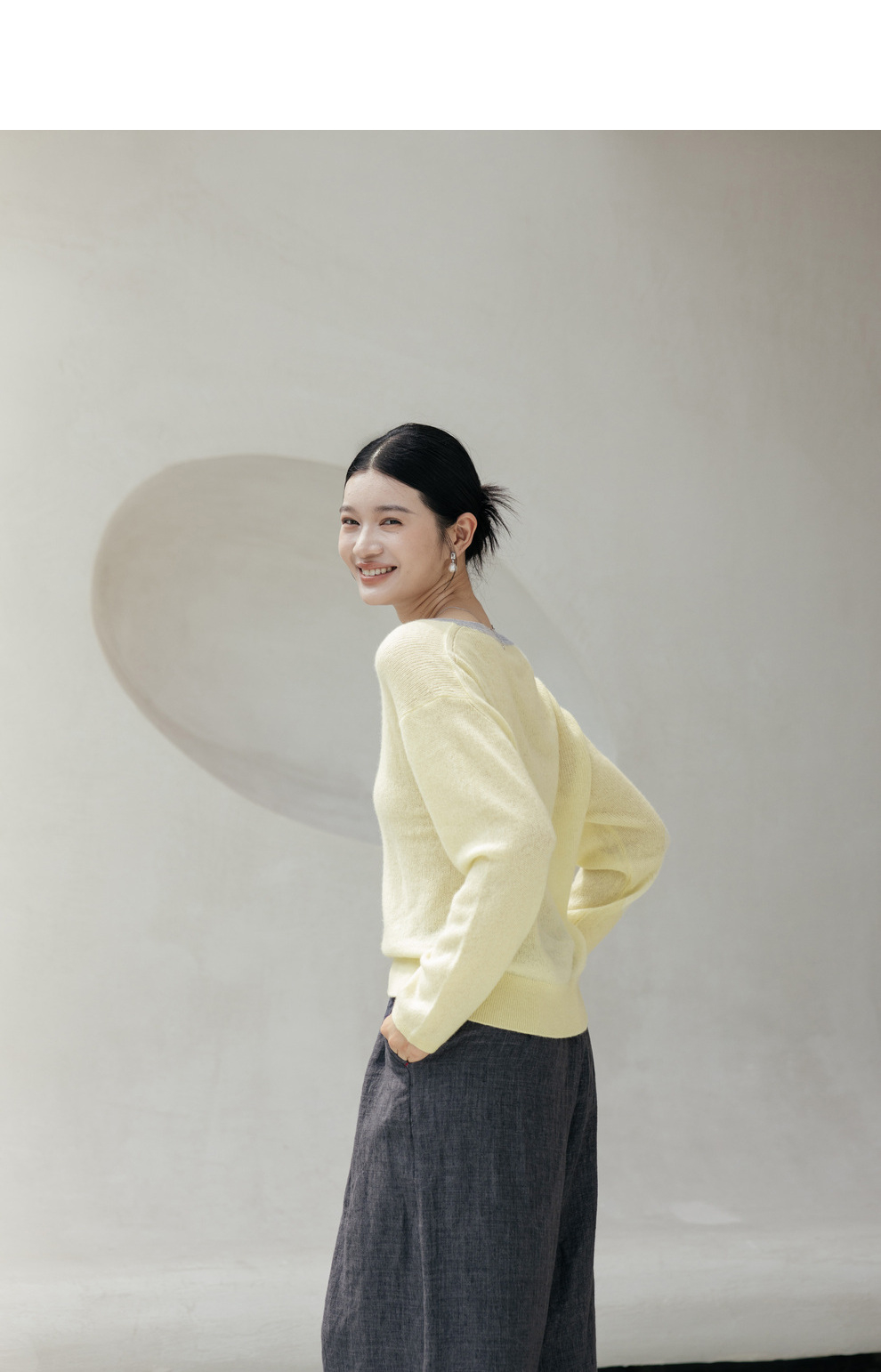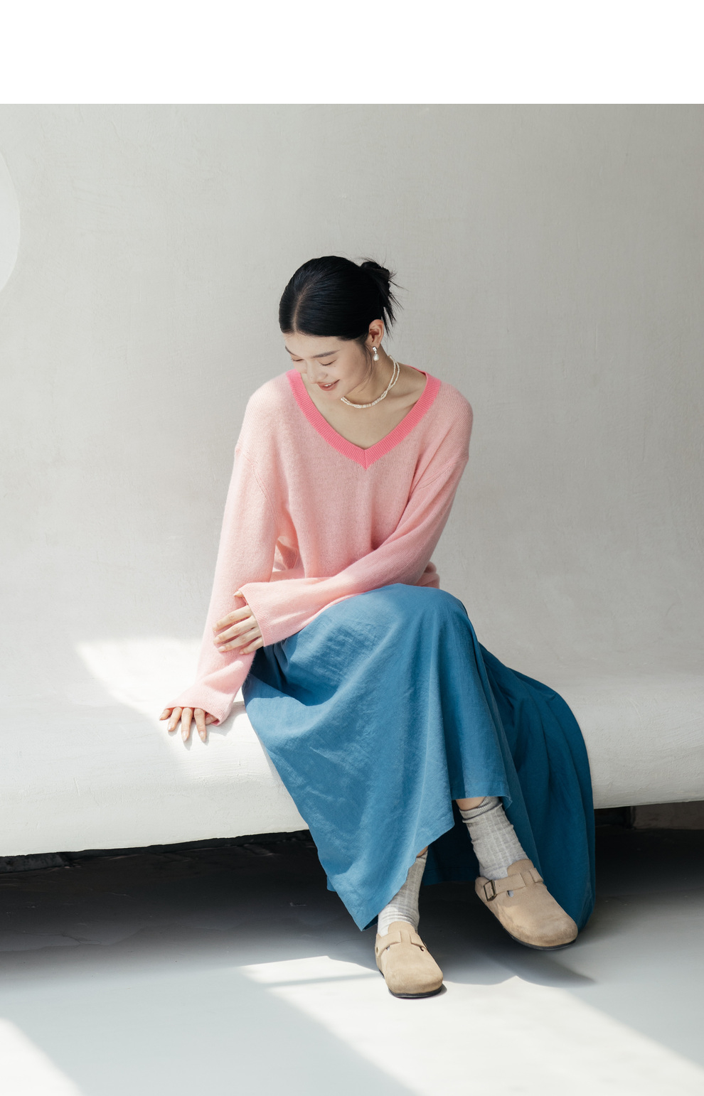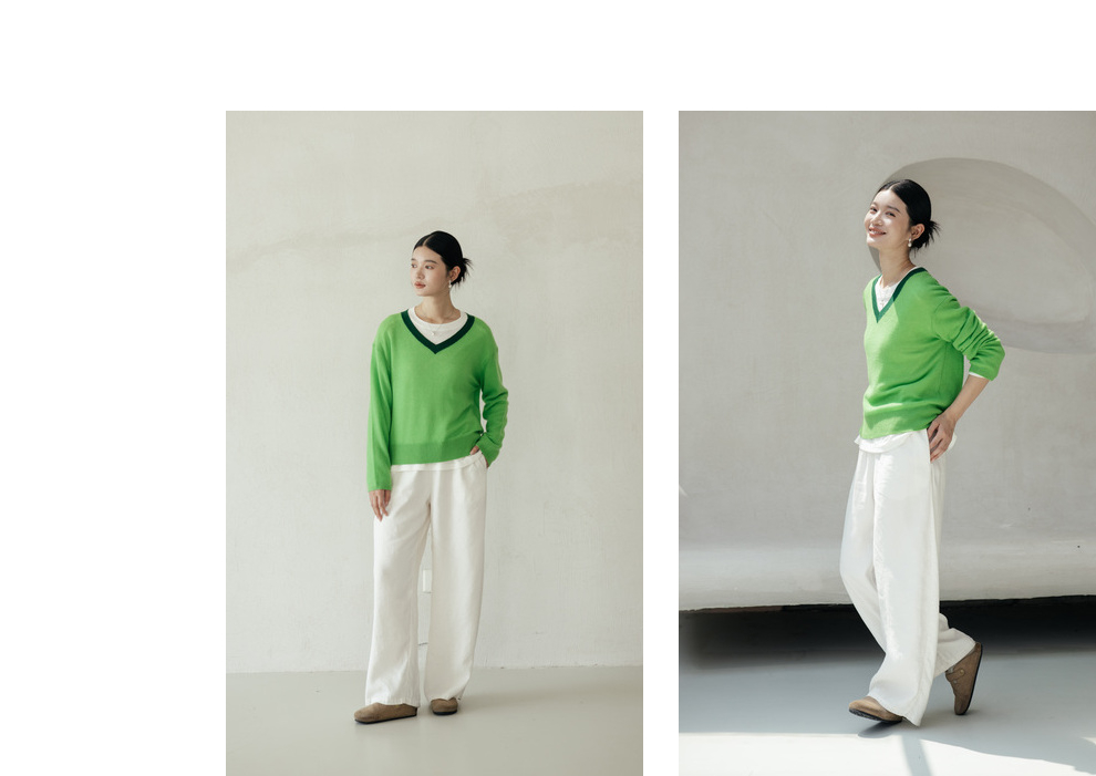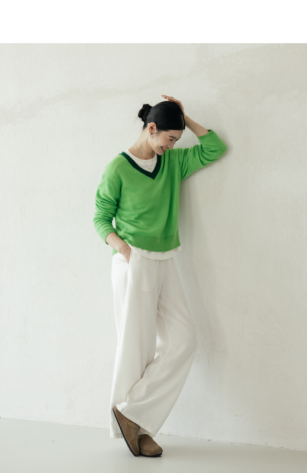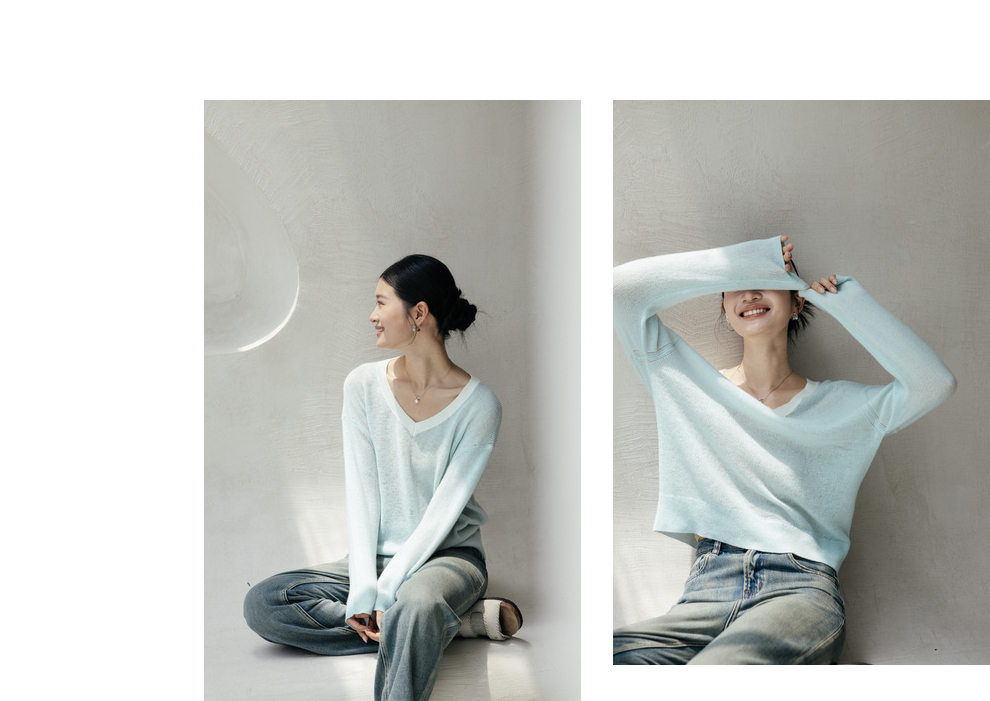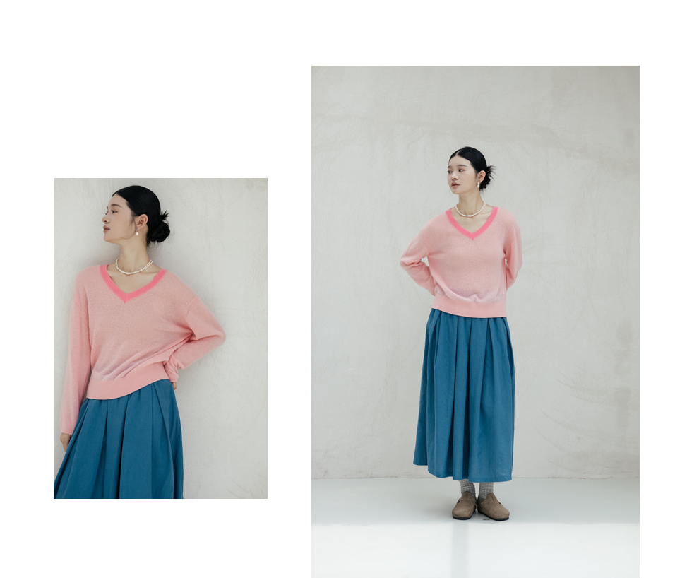 绽放旅行女装550朵/早秋重磅山羊绒v领撞色领口拼接套头针织衫