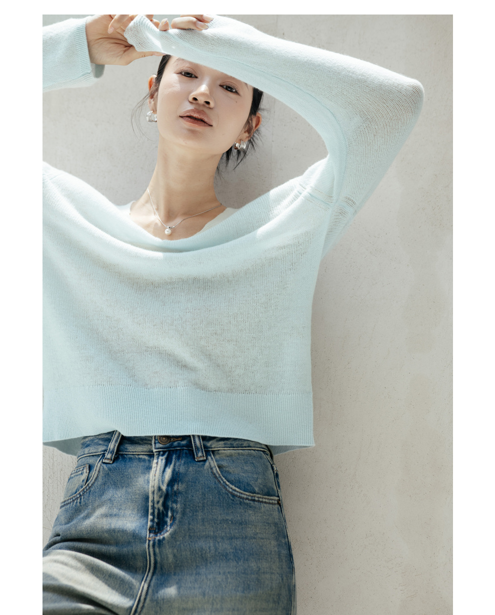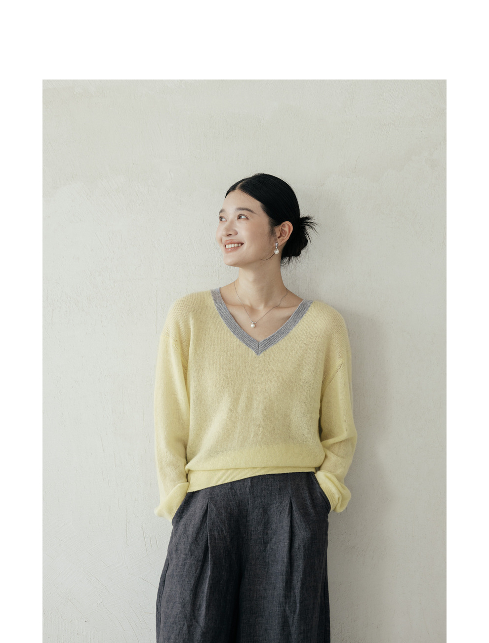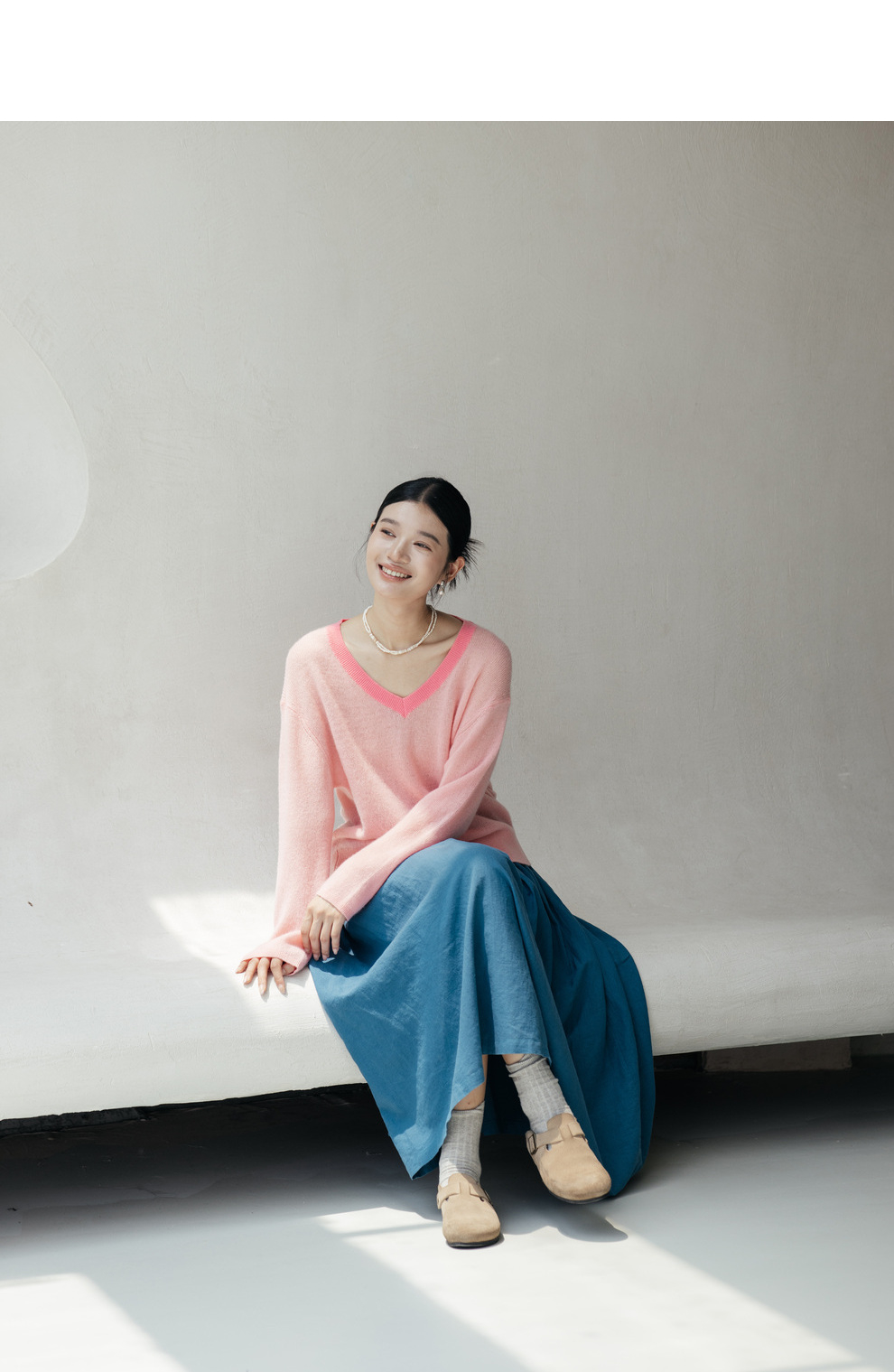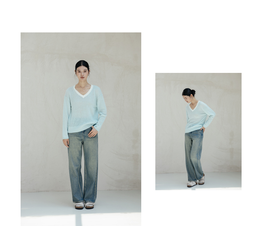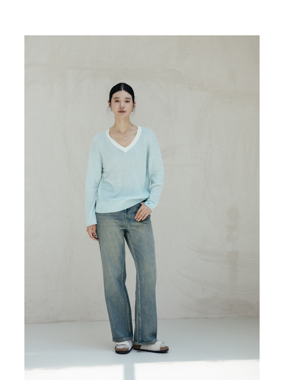 绽放旅行女装550朵/早秋重磅山羊绒v领撞色领口拼接套头针织衫
