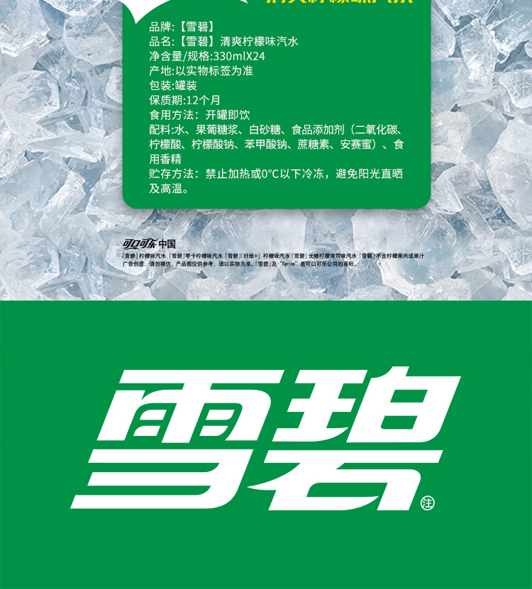 雪碧清爽柠檬味汽水摩登罐330ml*12罐整箱