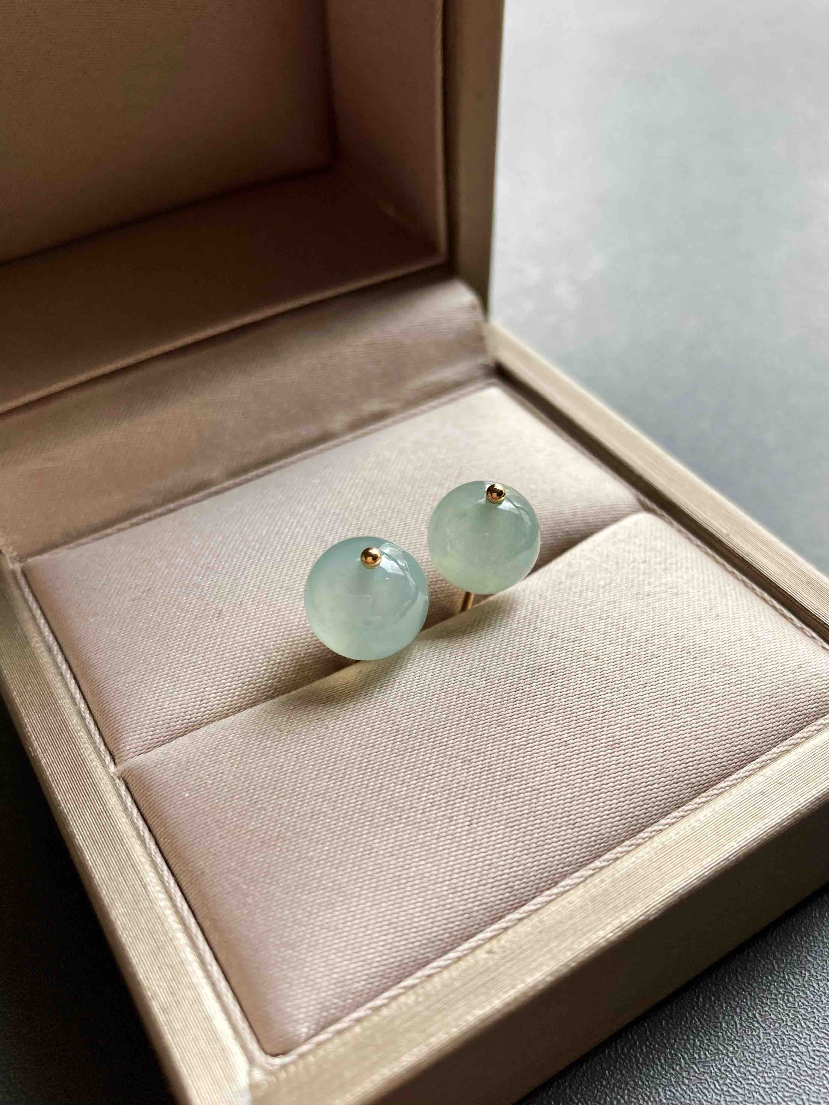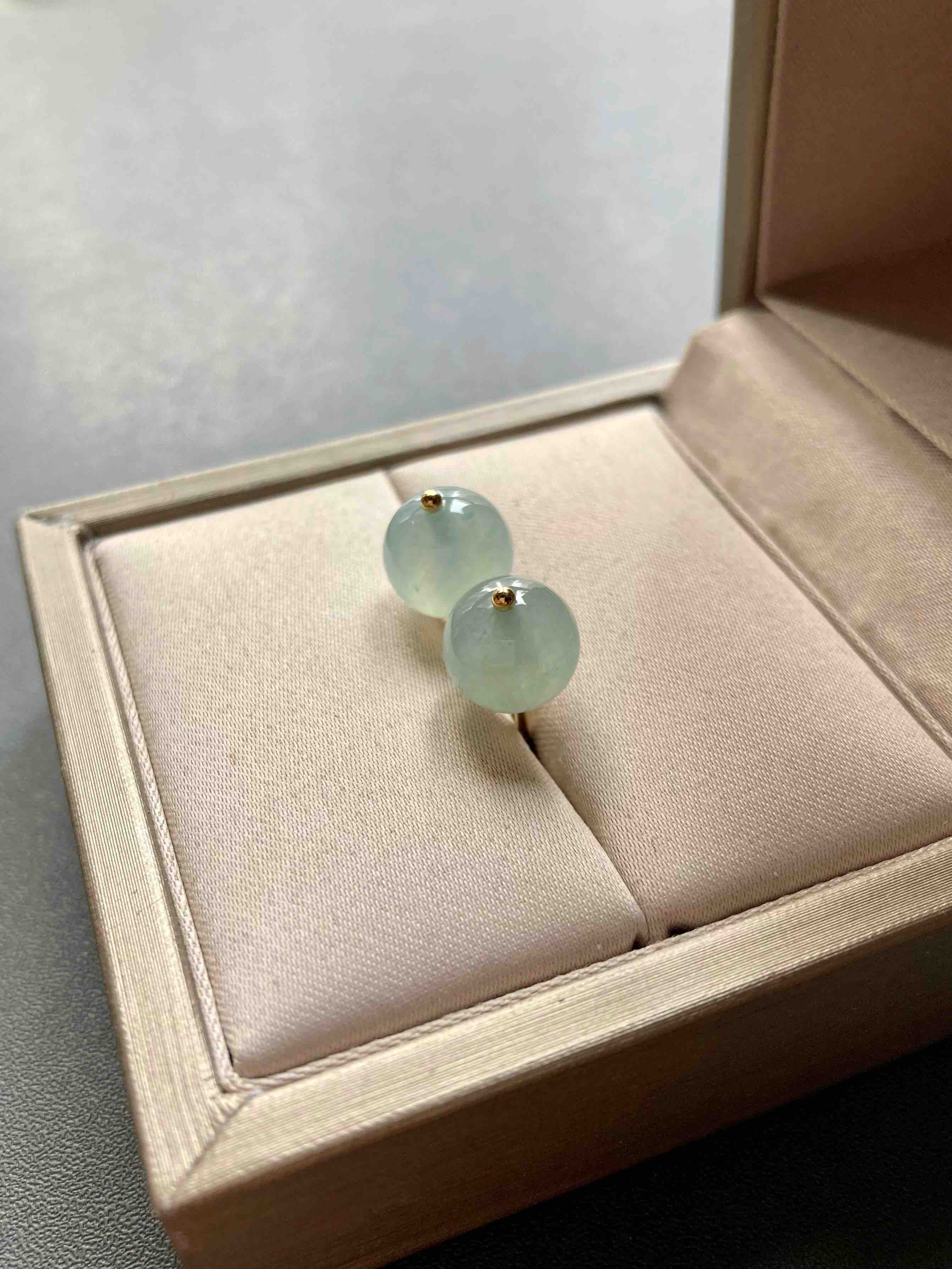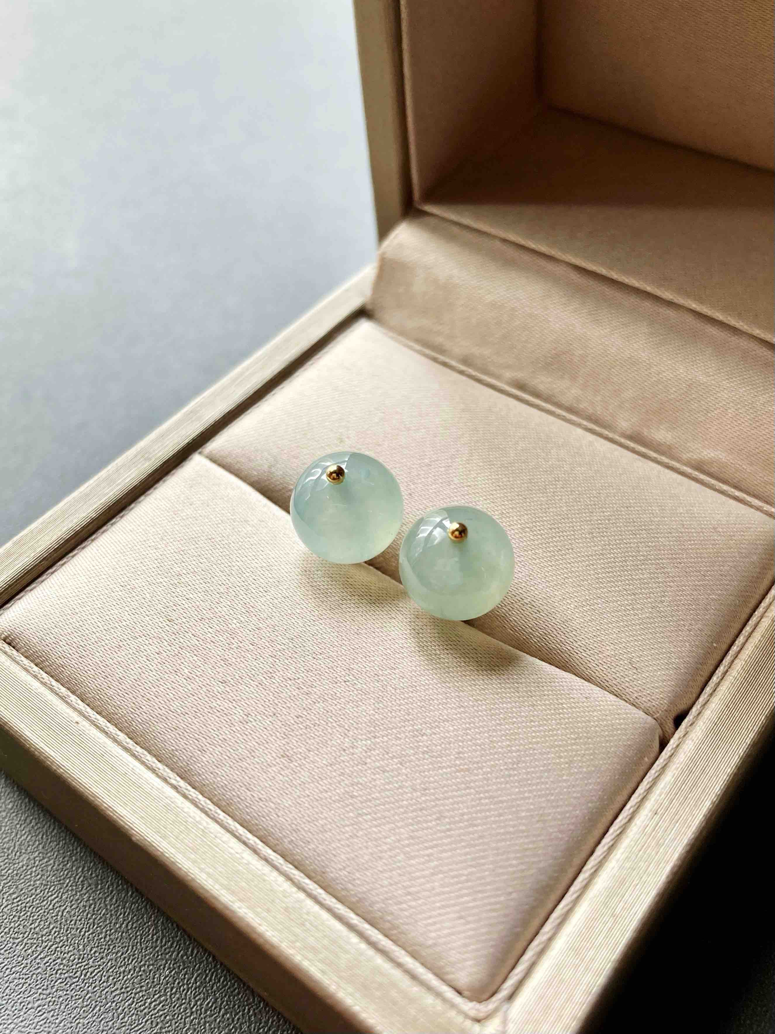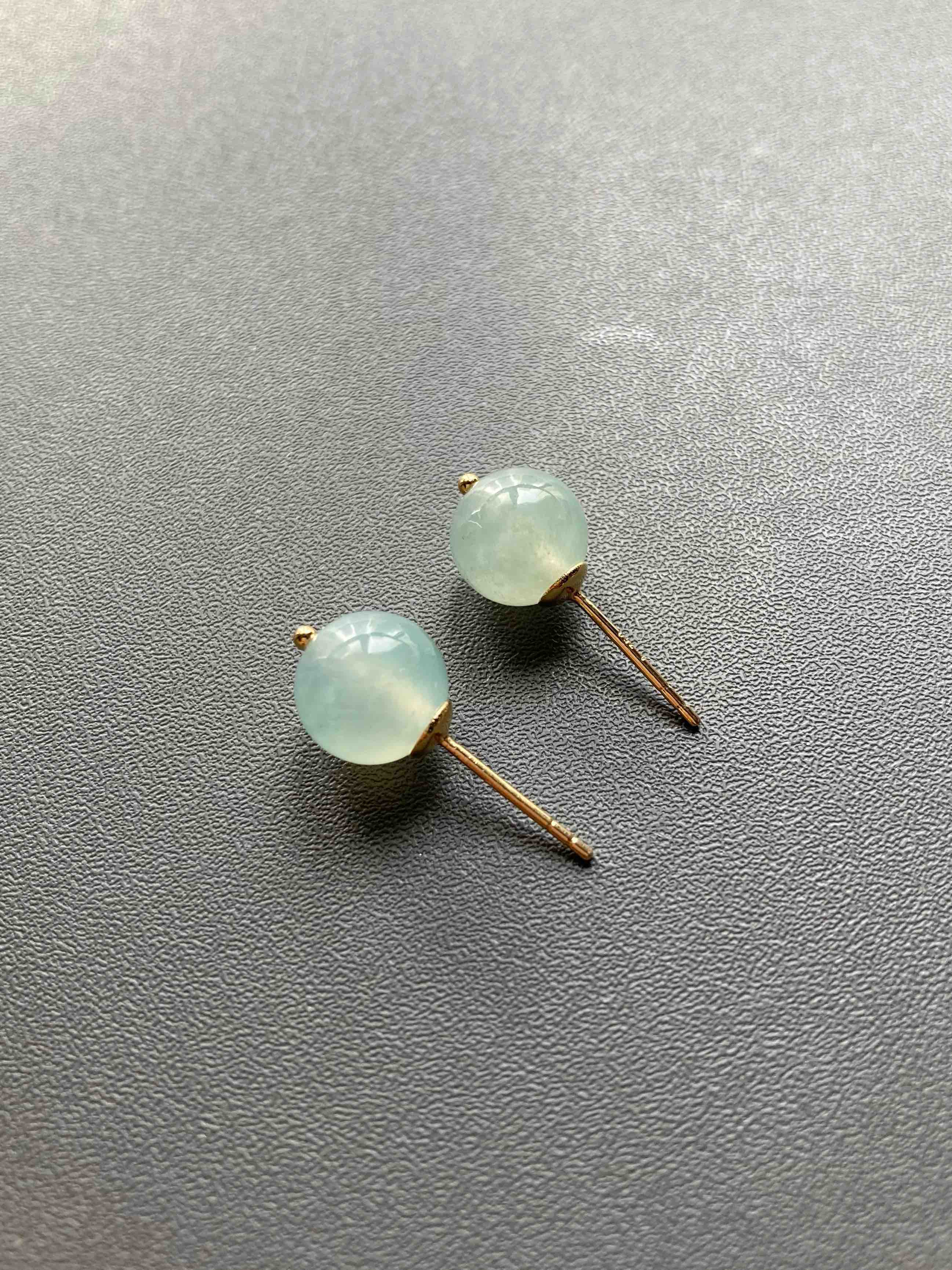 冰种翡翠珠子耳钉18k黄金镶嵌