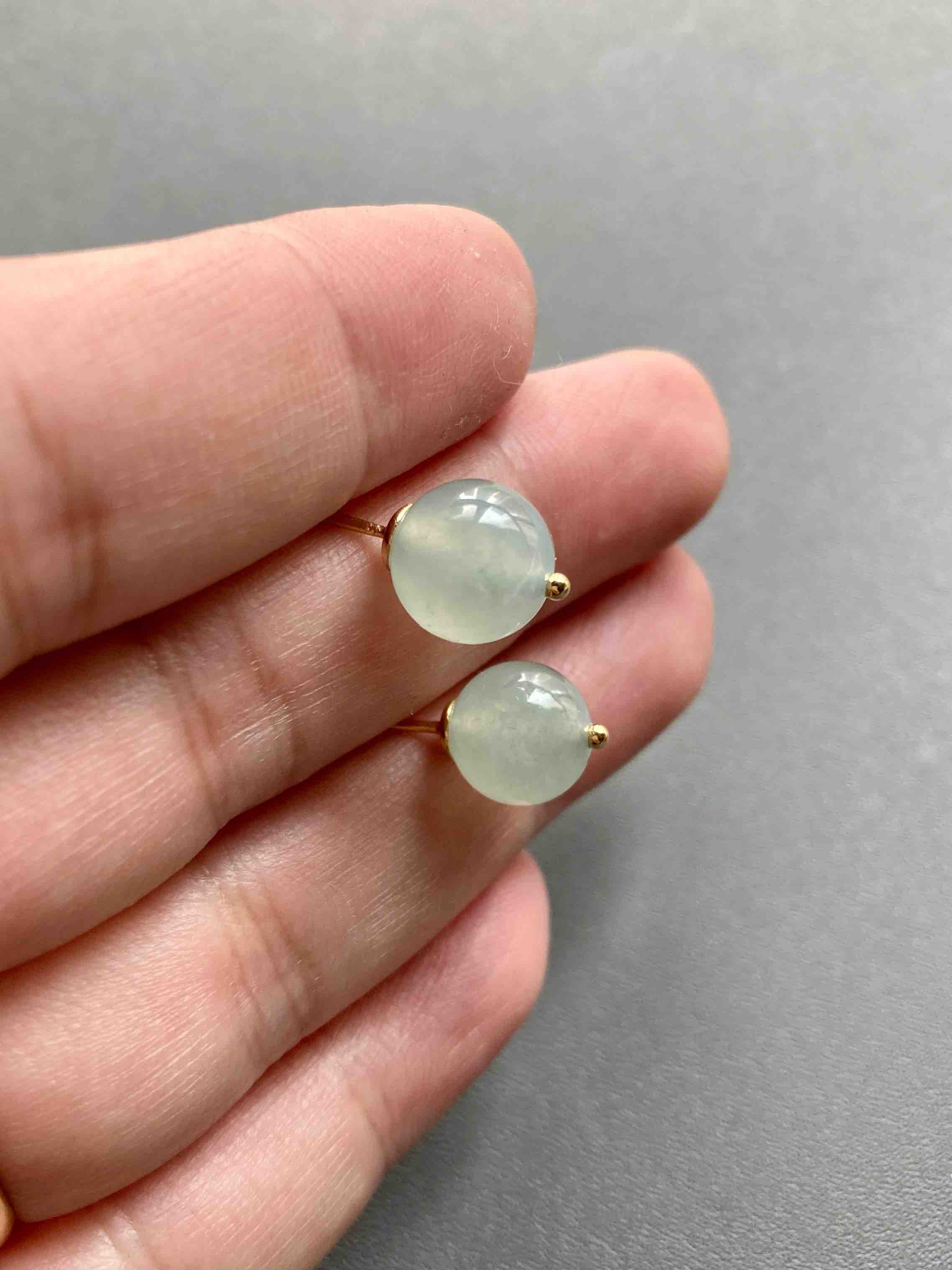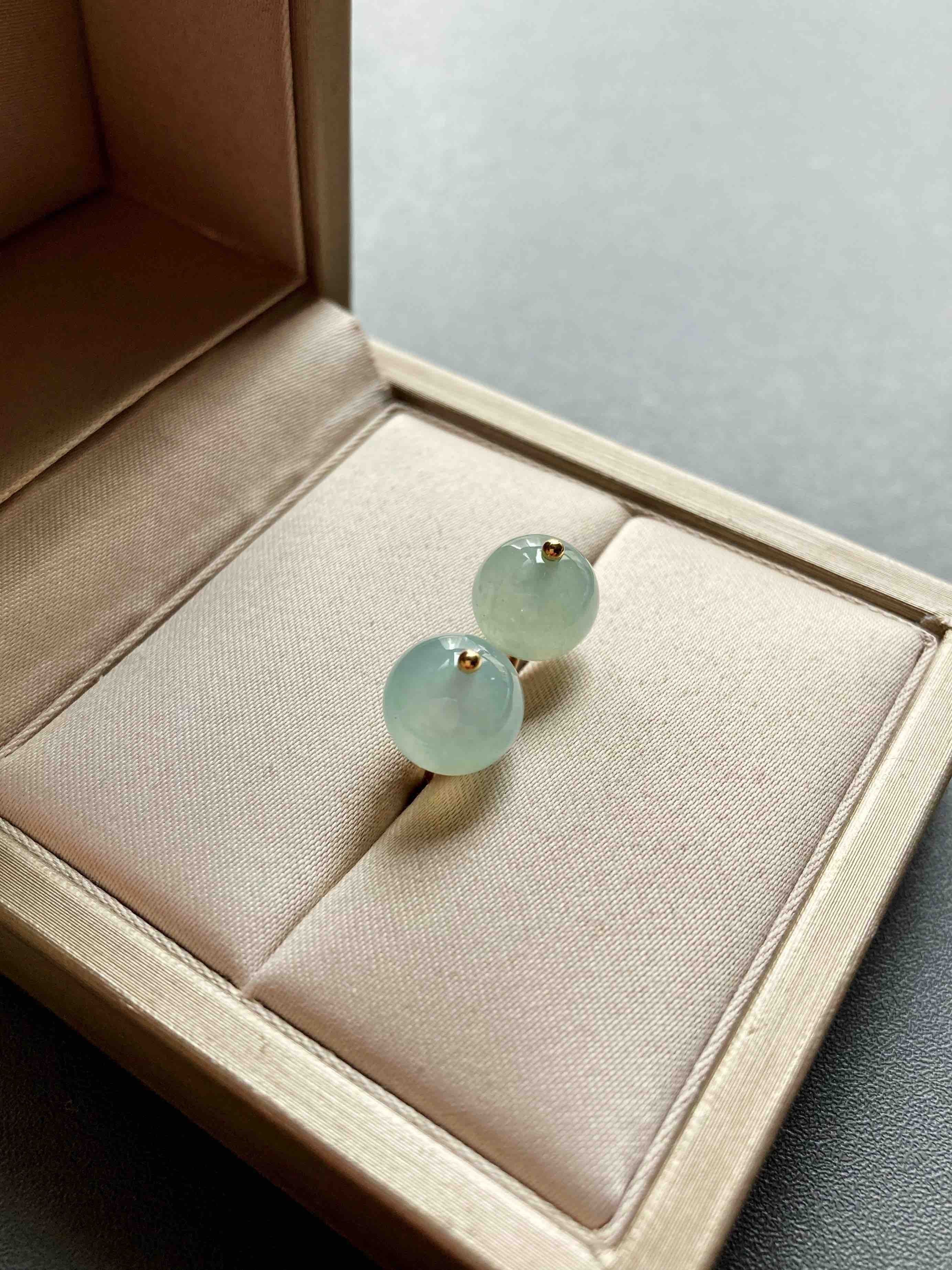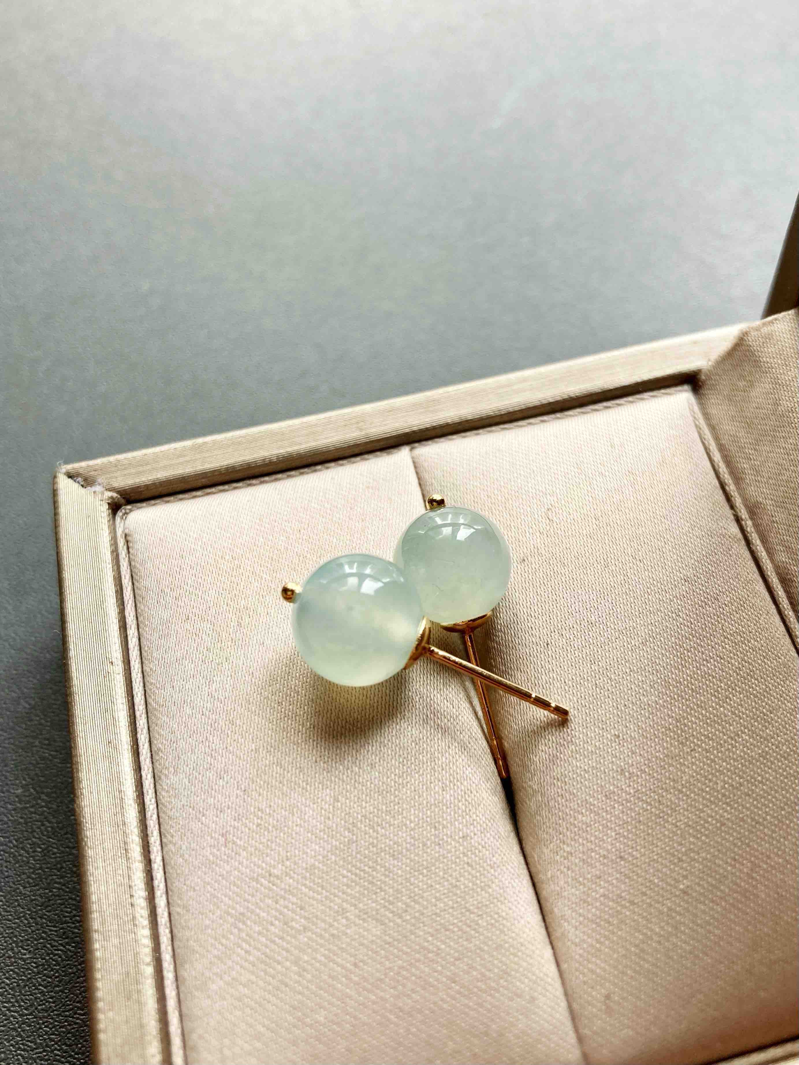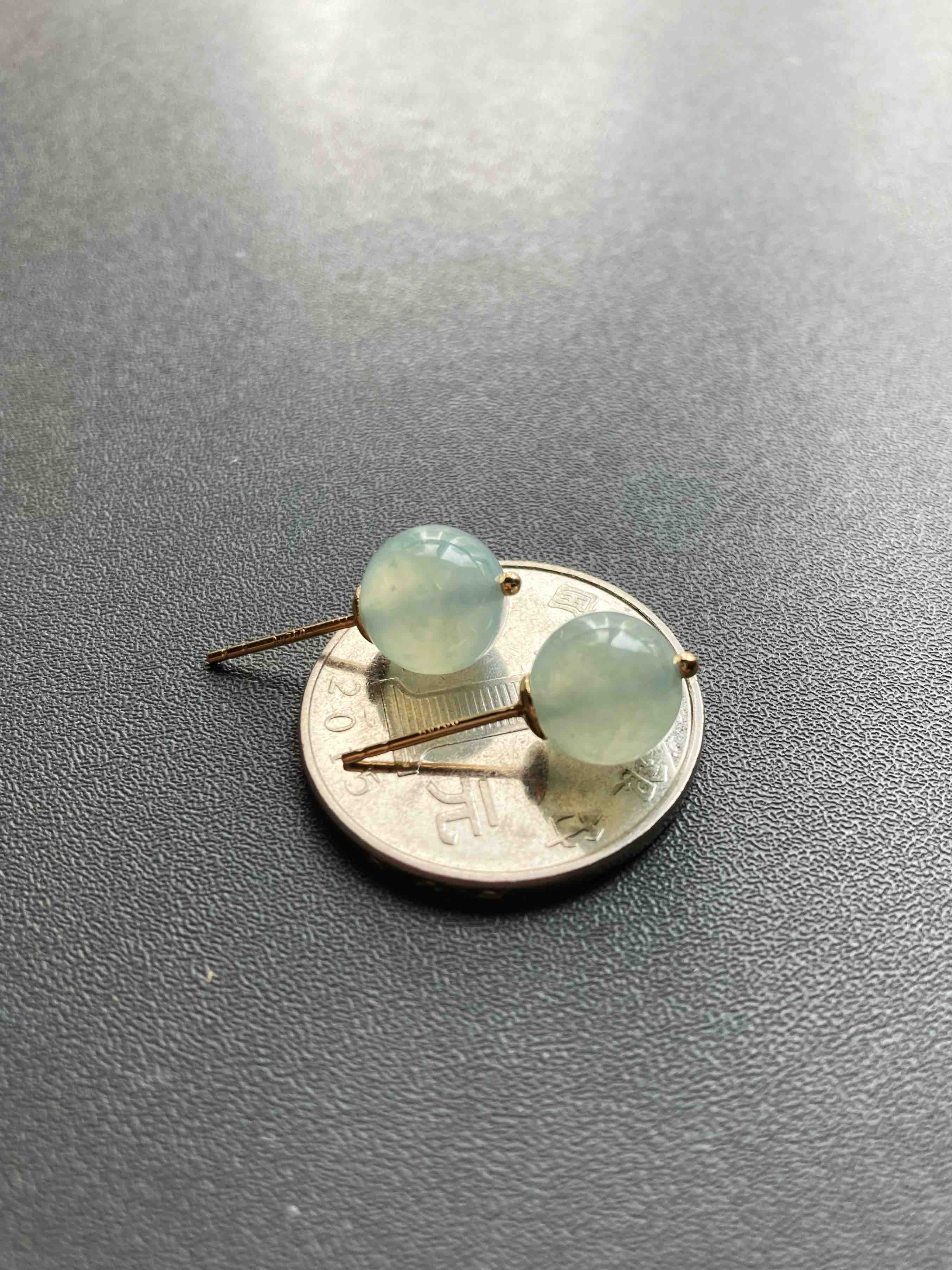 冰种翡翠珠子耳钉18k黄金镶嵌