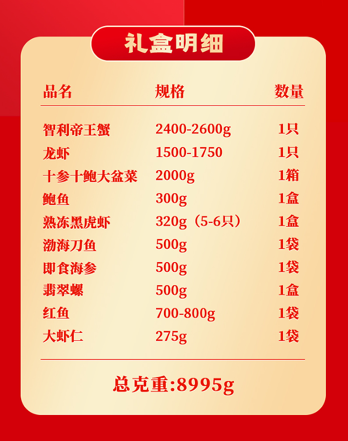 【海朴】A9鲲鹏御世海鲜年货礼盒大礼包严选10种精品海鲜企业采购