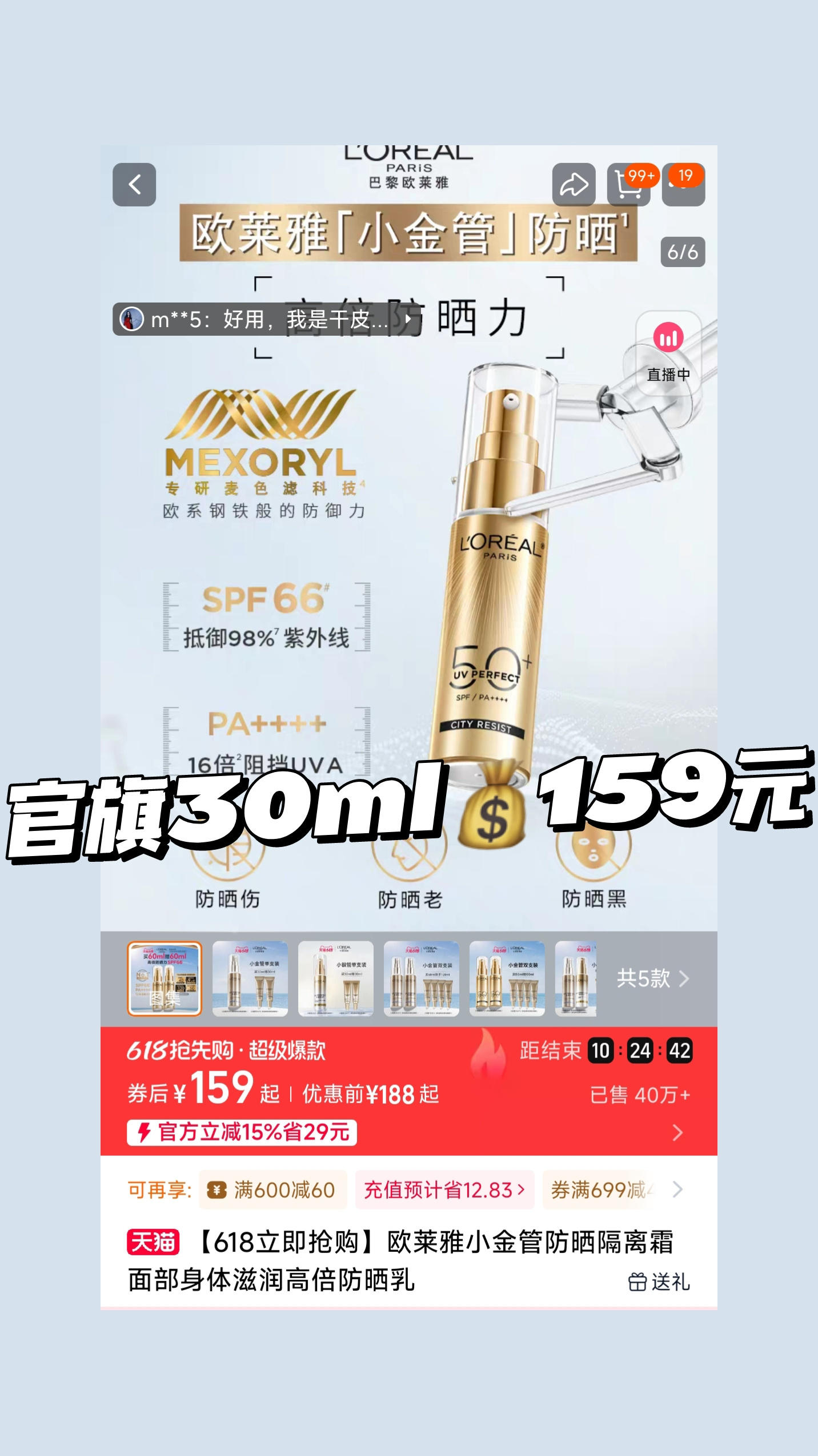 品牌:欧莱雅产品规格:15g库存:1W生产日期:26.1保质期:三年发货地:广东发货快递:圆通,韵达发货时效:两个工作日周六日是否发货:是每日截单时间:下午两点不包邮地区及运费:新疆,西藏不发售后标准:1.有质量问题请在签收24小时之内与我们联系,需要拍下快递面单和产品质量问题的图片,报售后处理。超时不予处理。不影响二次销售的情况下 未拆封使用 可七天无理由退换货 扣发货运费5 退回运费自理,售后退换必须原包装寄回且不影响二次销售,若原包装损坏概不处理售后退换2.产品一旦发出后,如非产品质量问题,拒绝任何形式拒收,收到产品后请当场验货,如出现质量问题,请您及时拍照并与我们联系,售后会第一时间处理。3.客户留的地址、电话、备注等信息,导致货物不能正常送达,均不在售后范围内4:撤单拦截扣5