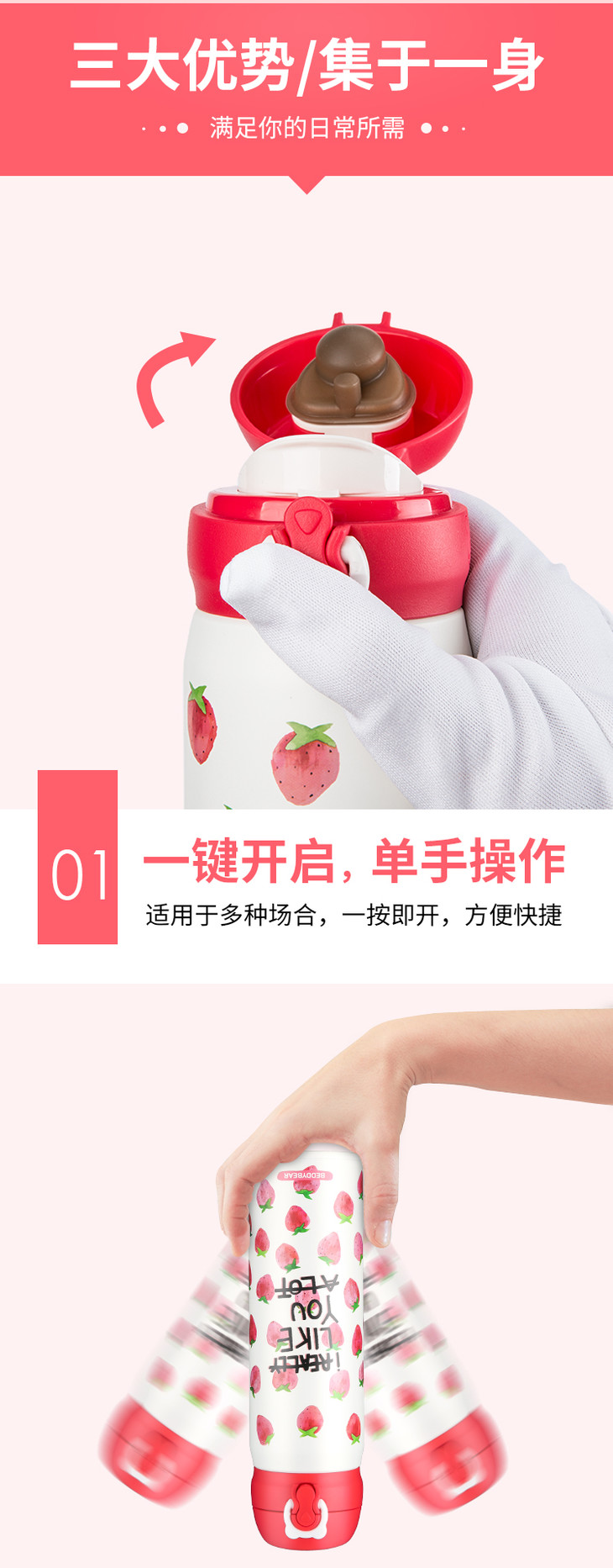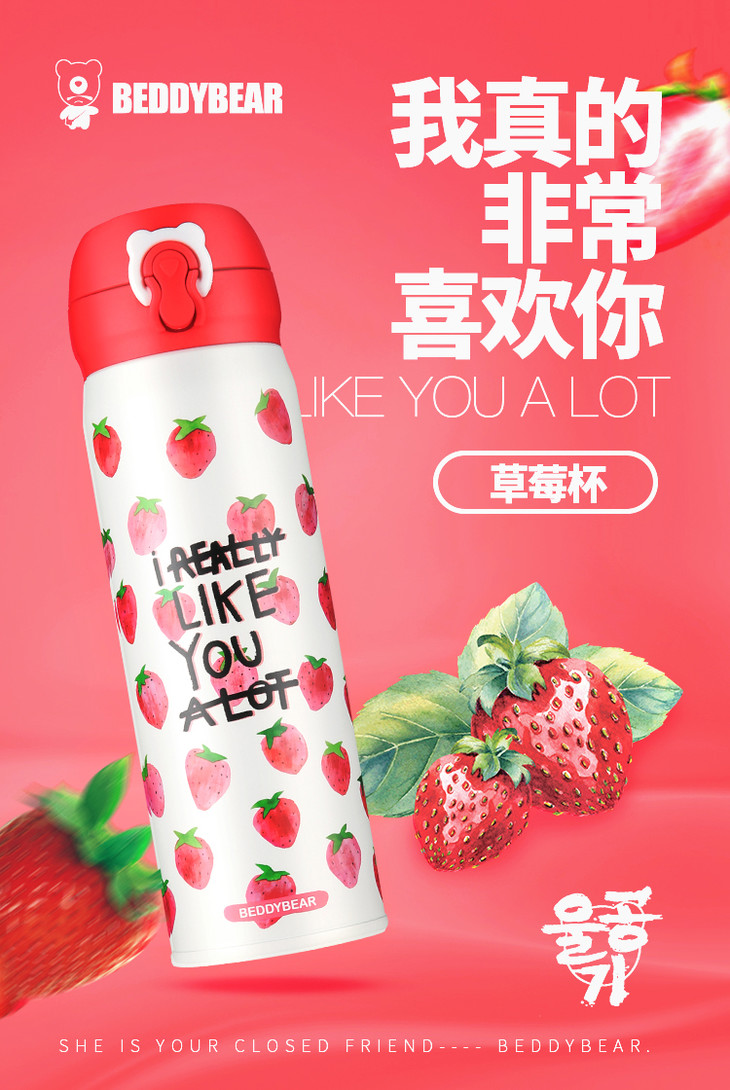 【官方授权】杯具熊草莓保温杯 480ml