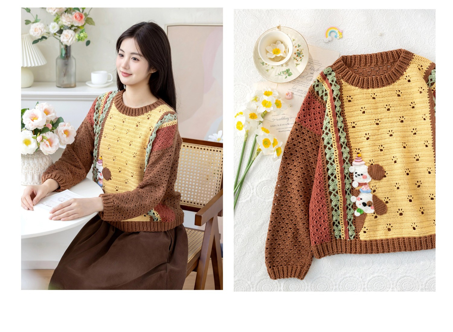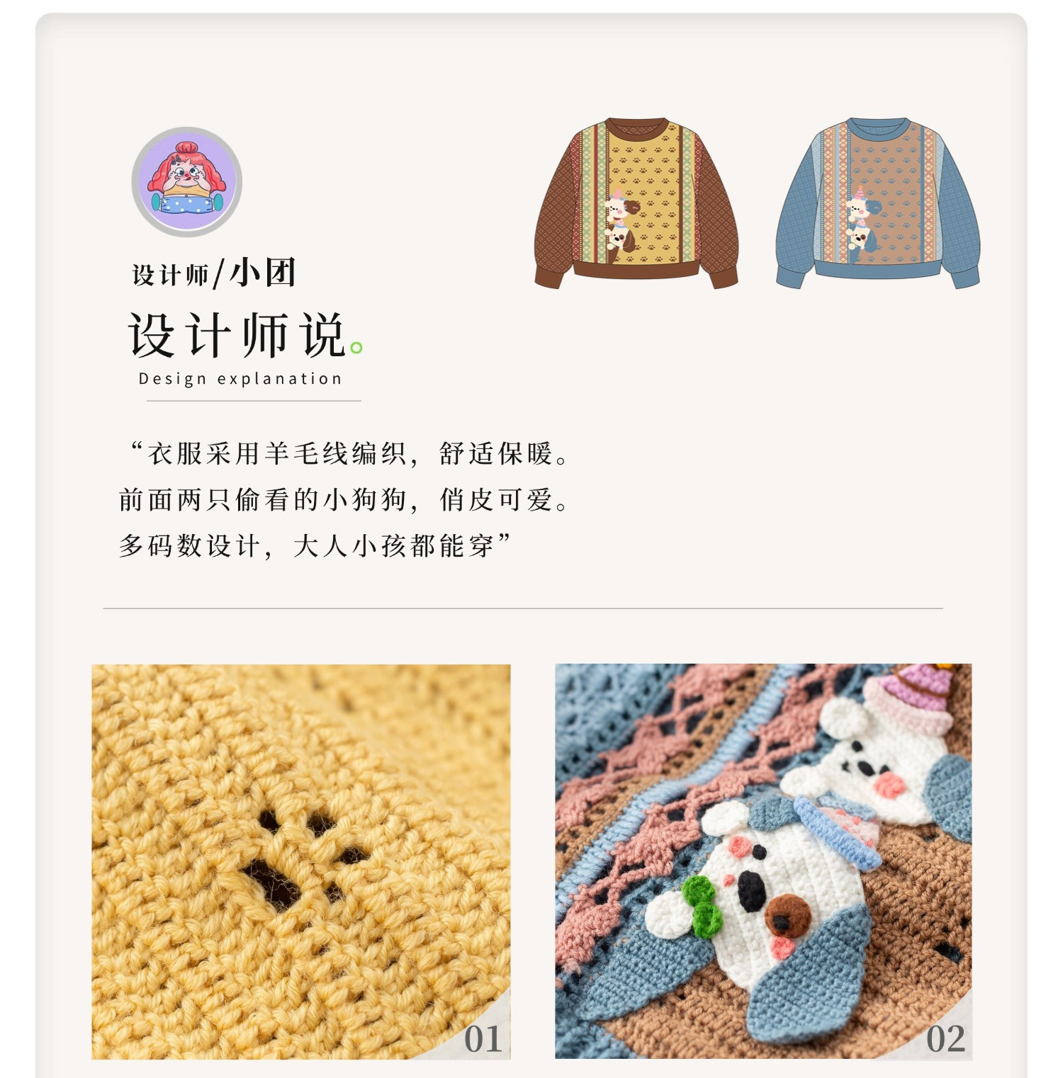 苏苏姐家汪野亲子毛衣手工diy编织钩针莫兰迪4毛线团自制材料包
