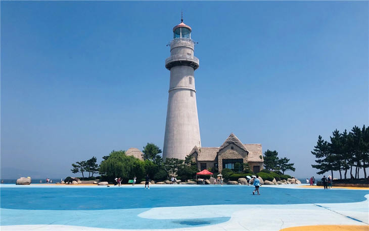 悦海公园:核心景观包括49米高的悦海灯塔、胶东传统海草房建筑群、480米沿海观景步道及多个主题广场等。