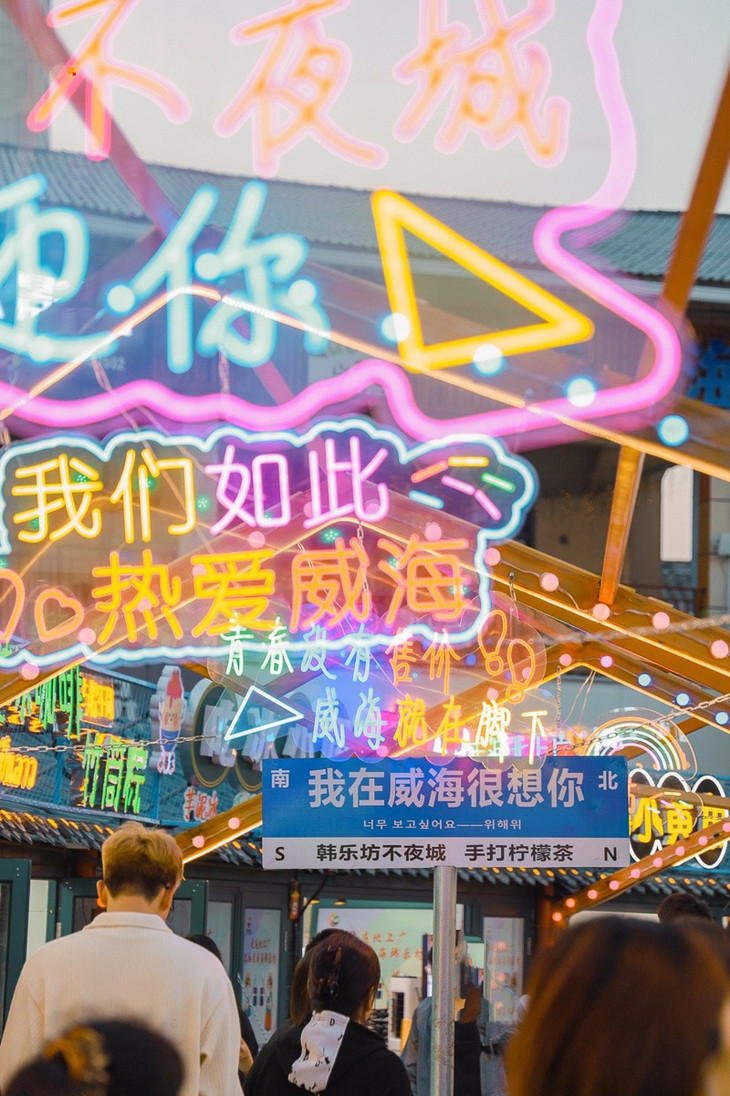 - 下午|抵达威海后我们先去酒店办理入住。之后可以结伴品尝威海美食,自由游览威海最美海岸线(可以打卡火炬八街、幸福门、威海之窗、猫耳山观景台等网红景点;还可以游览威海公园、悦海公园、海源公园、海上公园等海岸线公园;傍晚可在小石岛欣赏日落;晚上可以自由前往韩乐坊夜市品尝美食小吃)。