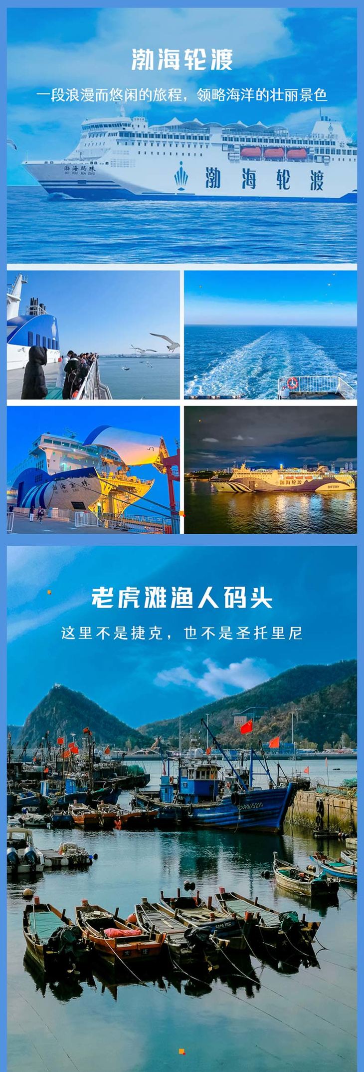 - 全天|根据轮渡时间前往码头排队乘海上轮渡。开启7个小时横跨渤海湾海上之旅至烟台,途可以欣赏到渤海湾外海海景、丰富多彩的海鸟以及美丽的海湾风光,体验不一样的海上之旅!