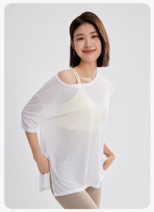 Neverme 2025春夏中长袖瑜伽防晒罩衫ST4933 圆领开拆下摆 多种穿搭方式