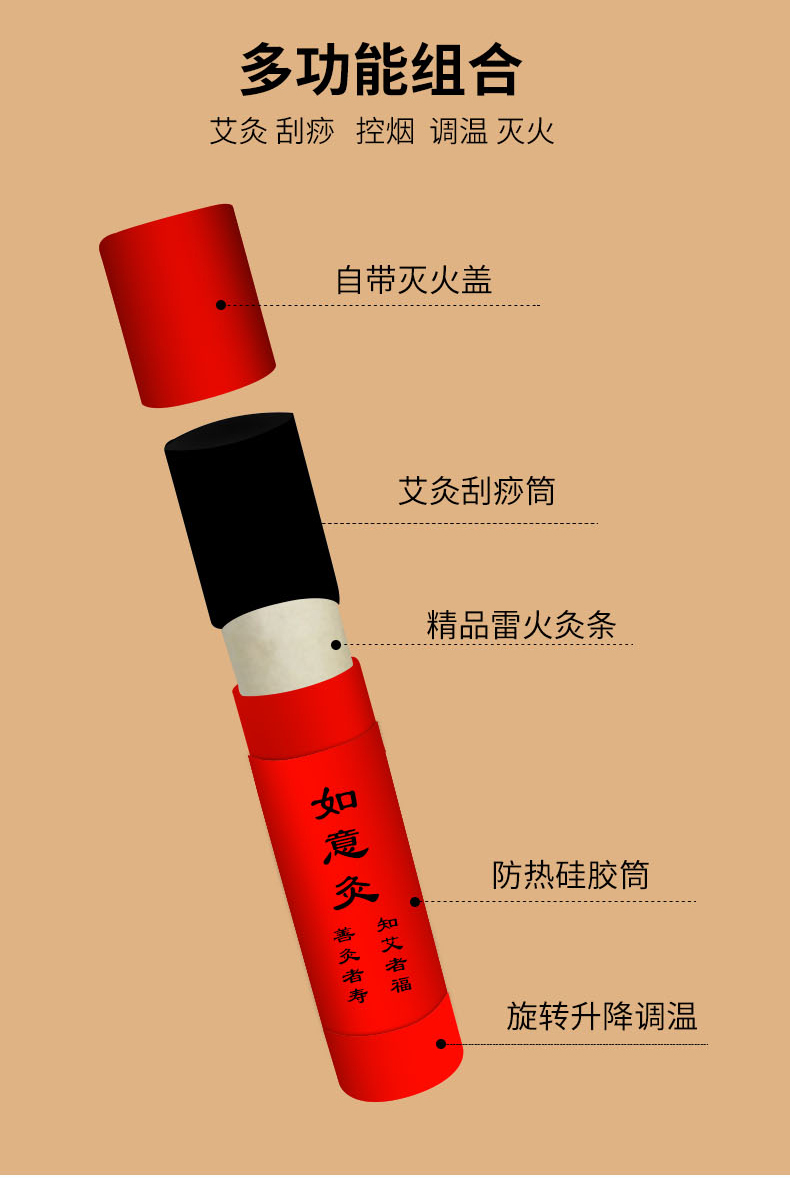 如意灸--艾能量升级版 温灸 控烟 刮痧 灭火 旋转推送艾条使用方便