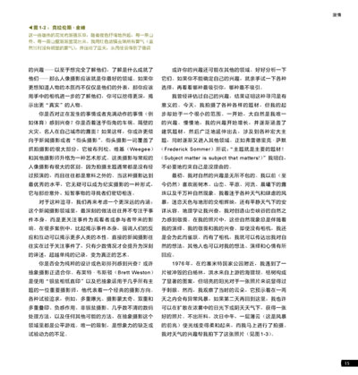 Bruce被公认为是世界上最优秀的风景和建筑摄影师之一,同时又是摄影领域最优秀的导师之一。这部著作是其摄影教材的化身,经过35年的发展、演变和提炼,它已成为一本在未来多年内仍将具有持久意义的、价值无可估量的摄影参考书。对于有想法的摄影师,这确实是一部不可多得的好书。