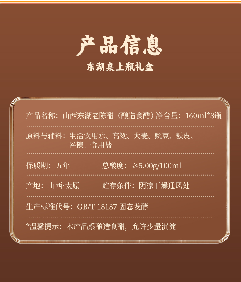 东湖老醋 8瓶桌上瓶礼盒 160ml*8瓶