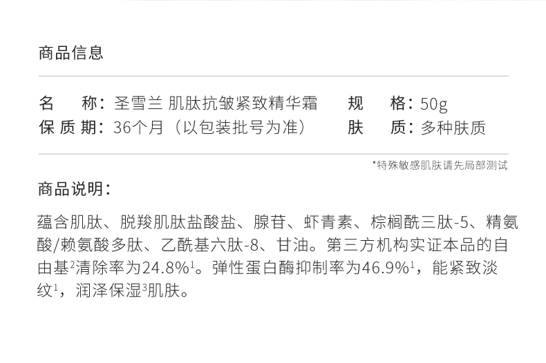 【自营】圣雪兰 肌肽紧致抗皱精华面霜50g 双抗多维度抗糖抗皱