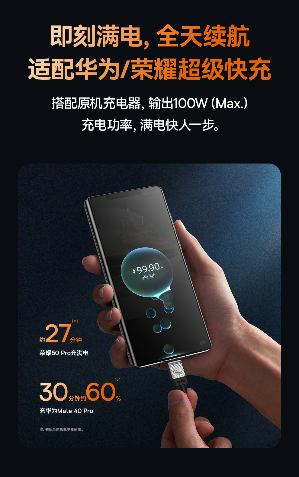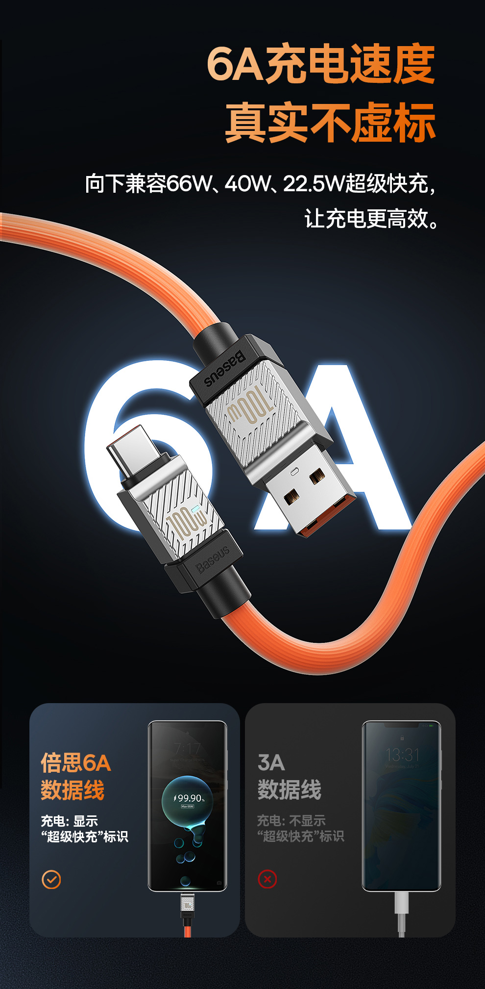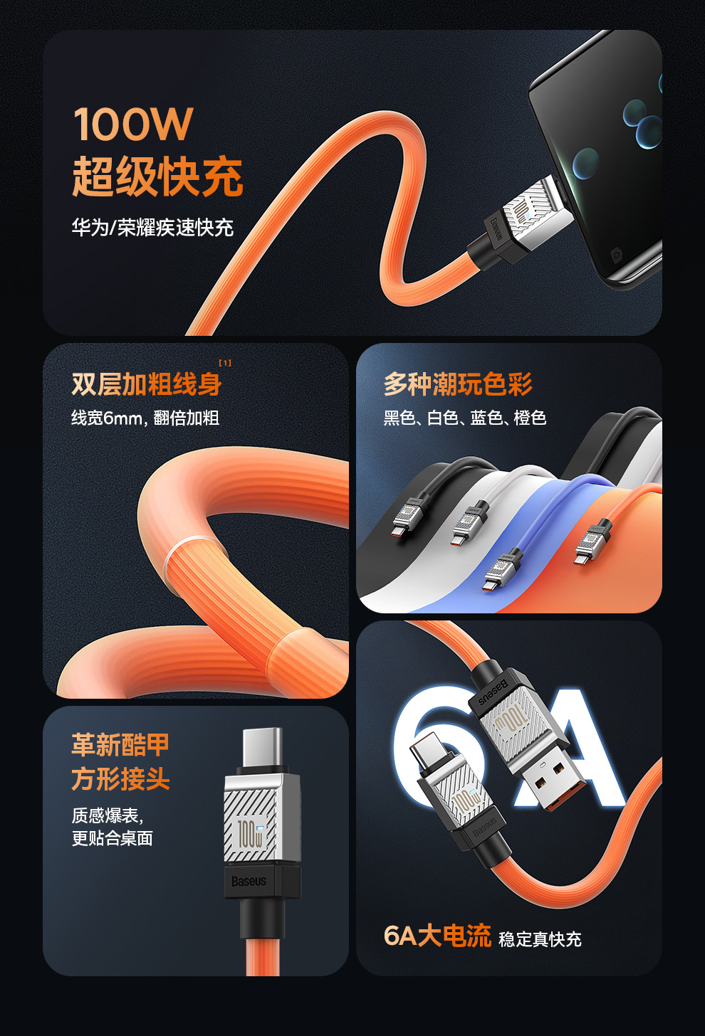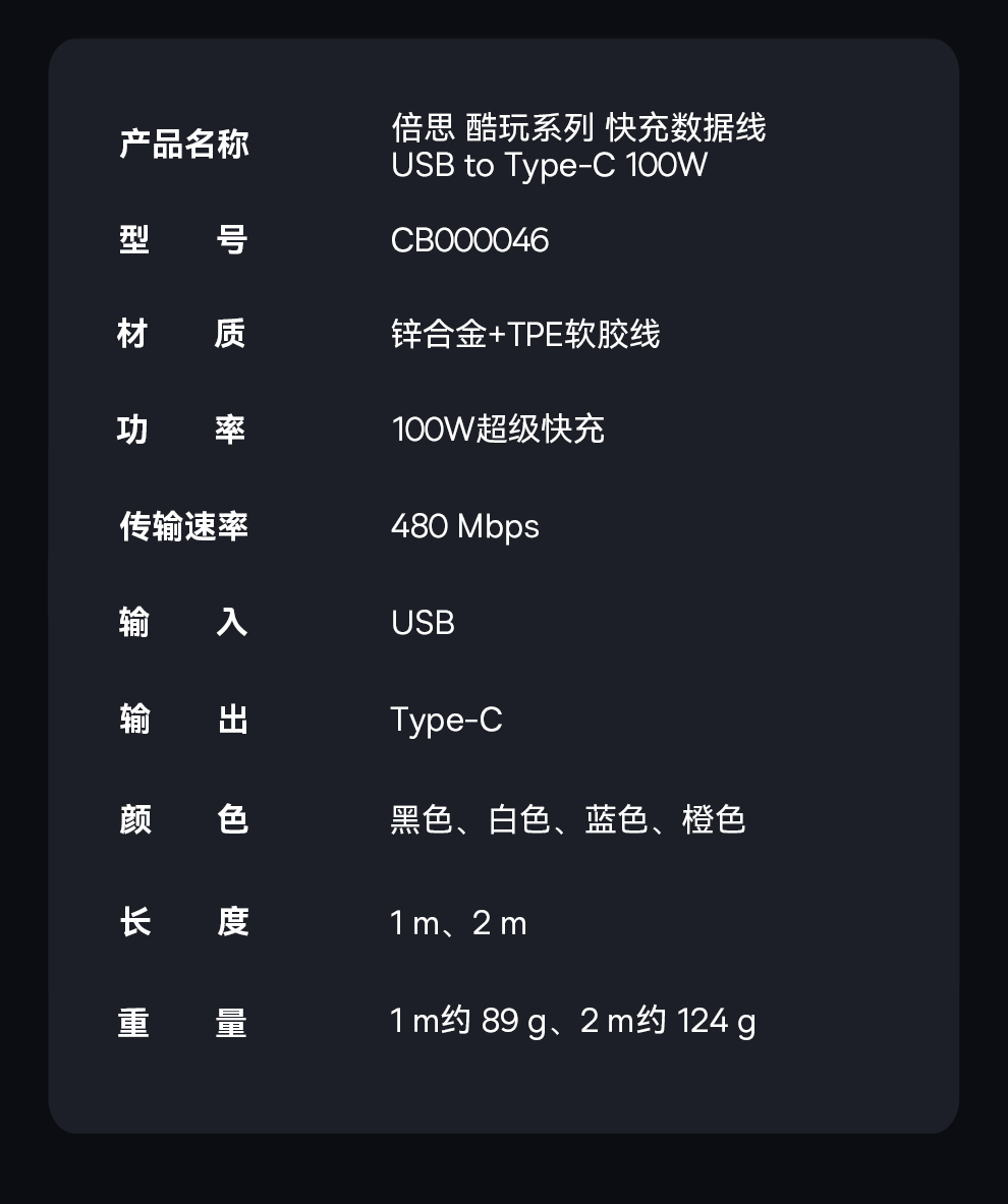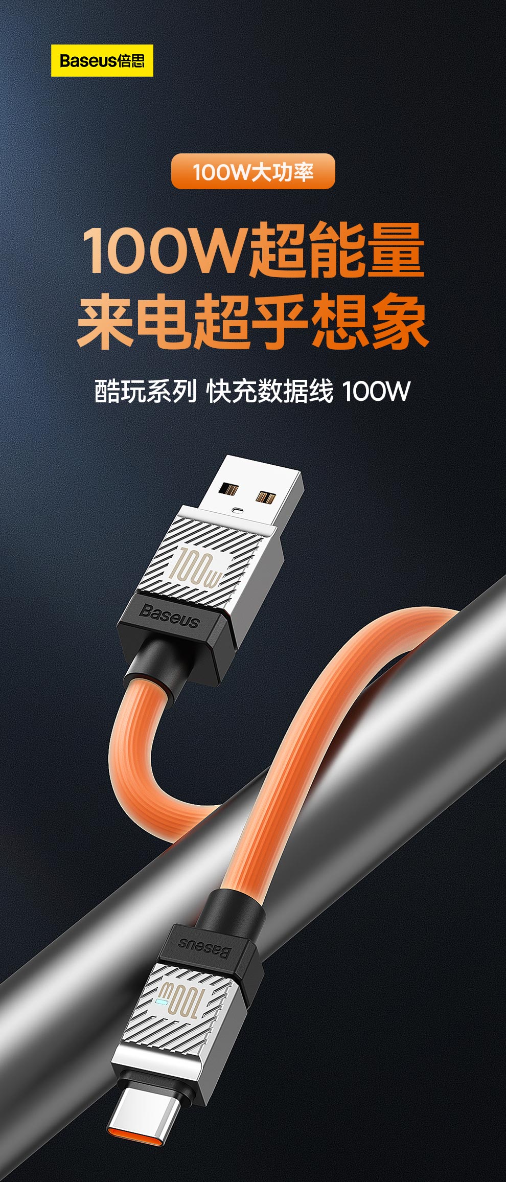 酷玩系列 快充数据线USB to Type-C 100W 适用华为/荣耀/小米/oppo/vivo安卓充电线