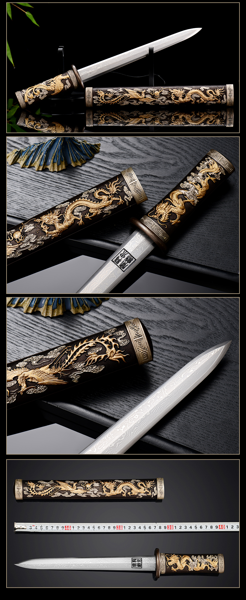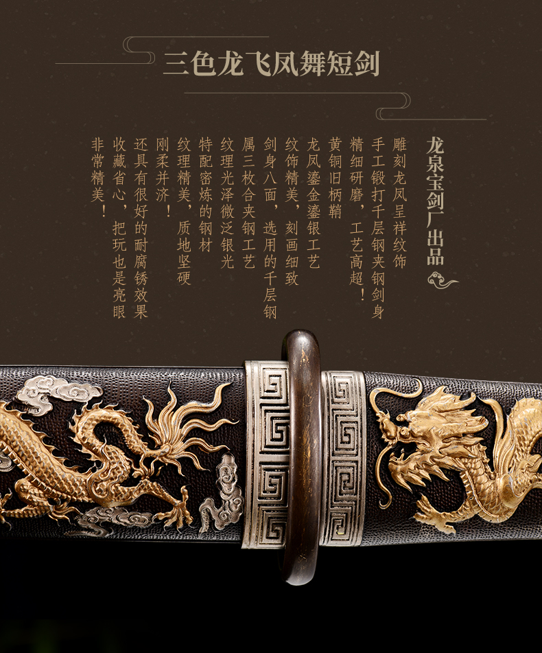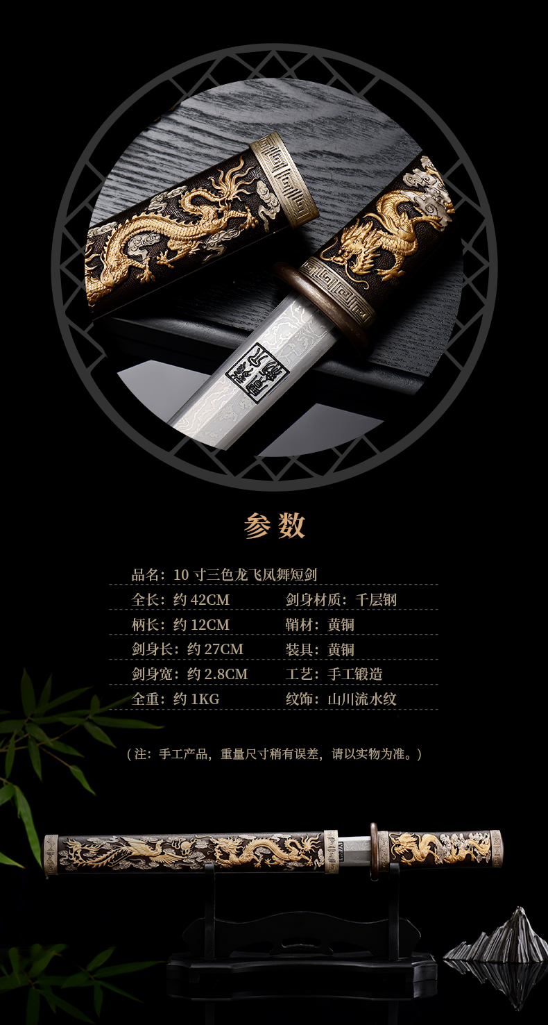 龙泉宝剑厂10寸三色龙非凤舞短剑千层钢短剑(未开刃)
