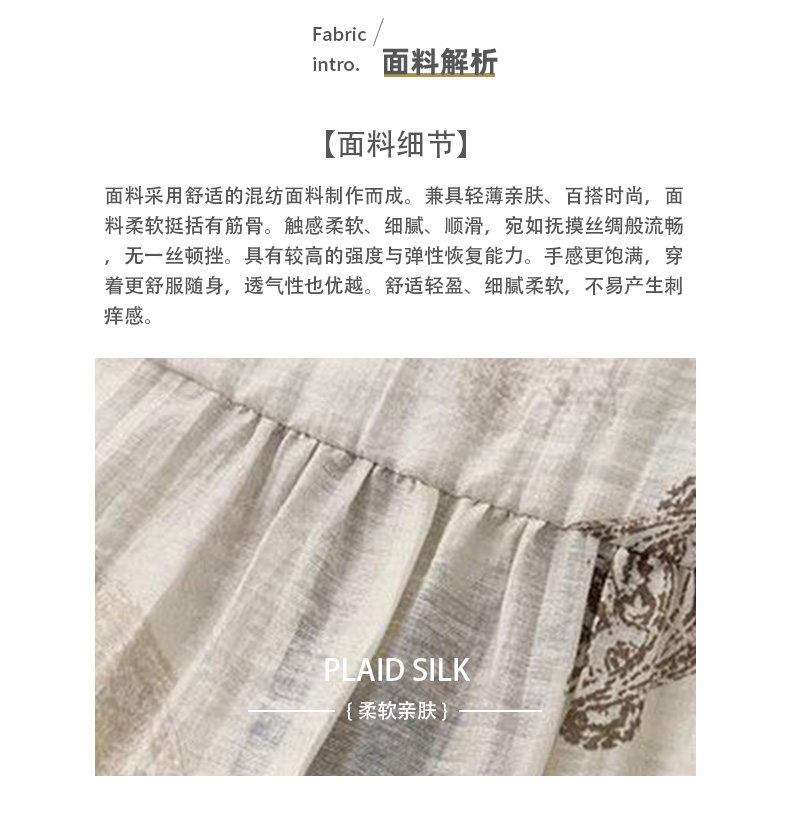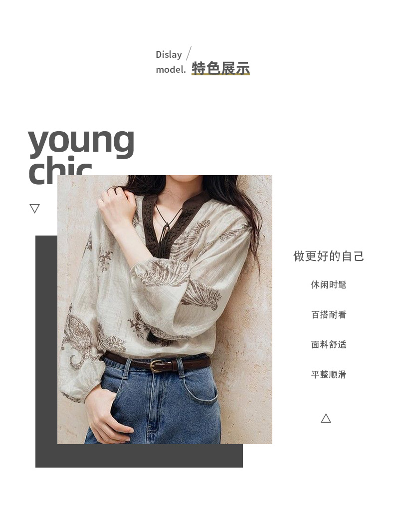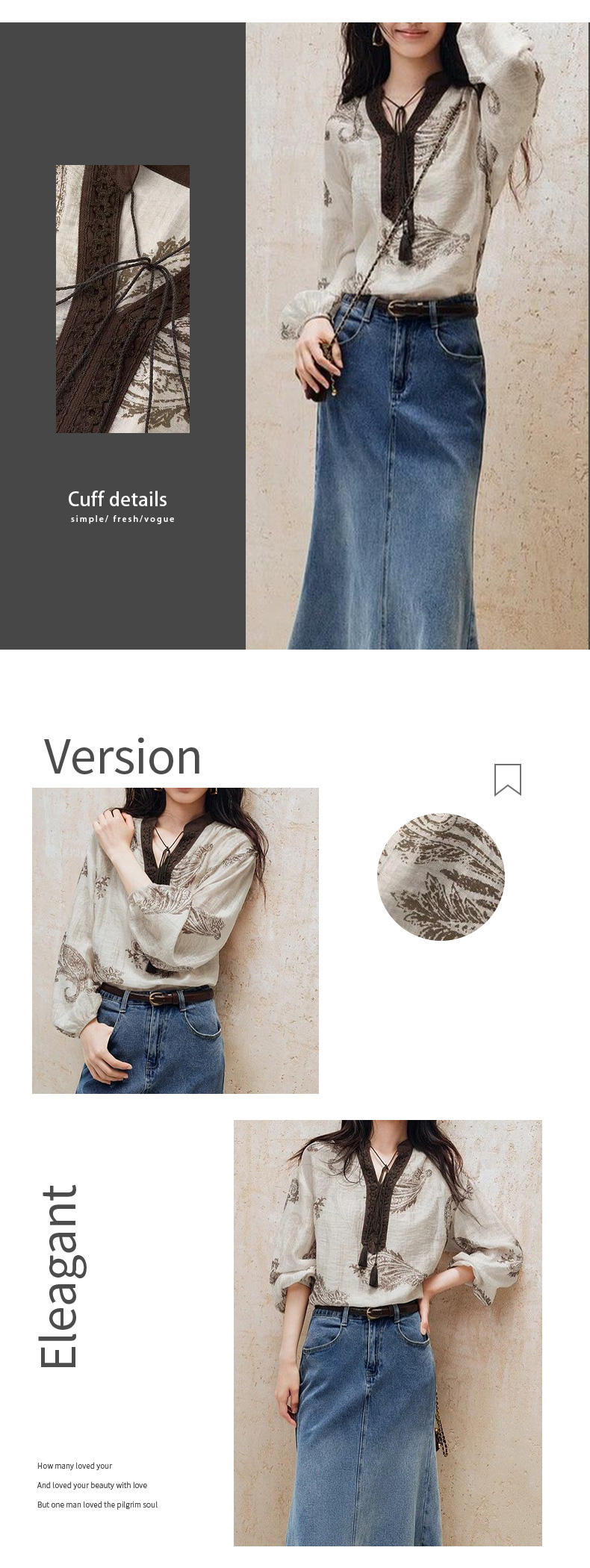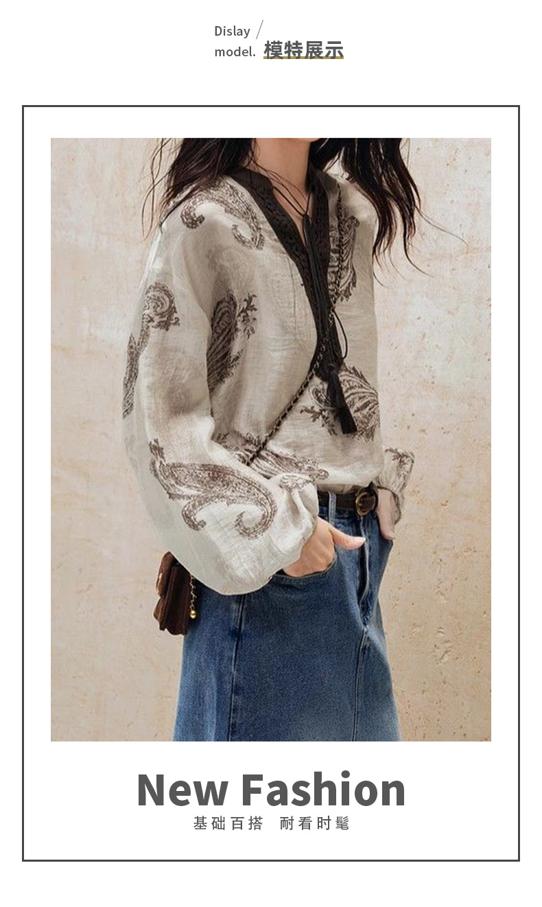 馥迦法式复古印花宽松天丝亚麻衬衫