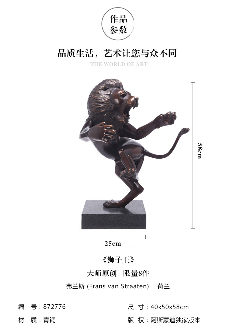 【6F】阿斯蒙迪进口青铜雕塑艺术品欧式家居装饰摆件高端礼品弗兰斯狮子