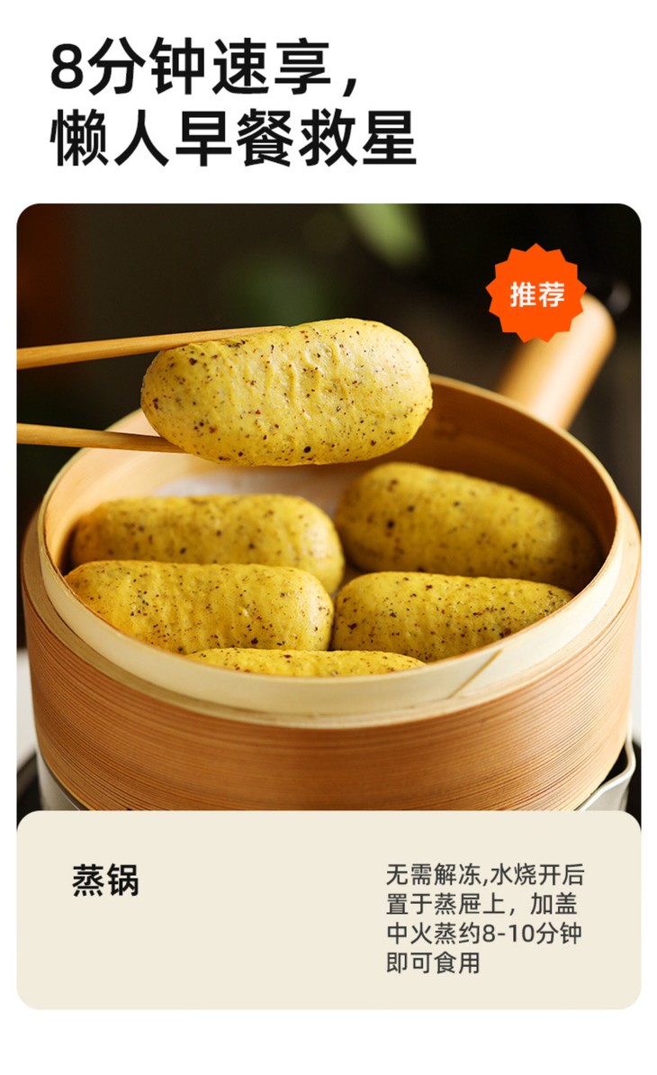 想吃的时候,就蒸个8-10分钟,一份热气腾腾、香气扑鼻的小早餐就可以上桌啦!趁热咬上一口,贝贝南瓜自然清甜,牛奶香气醇厚绵长,藜麦在软糯的包体中格外有嚼劲,细细咀嚼,甜而不齁,香而不腻,纤维的质感带来别样的风味。这满满的幸福感,让简单的餐食也变得富有仪式感哦!