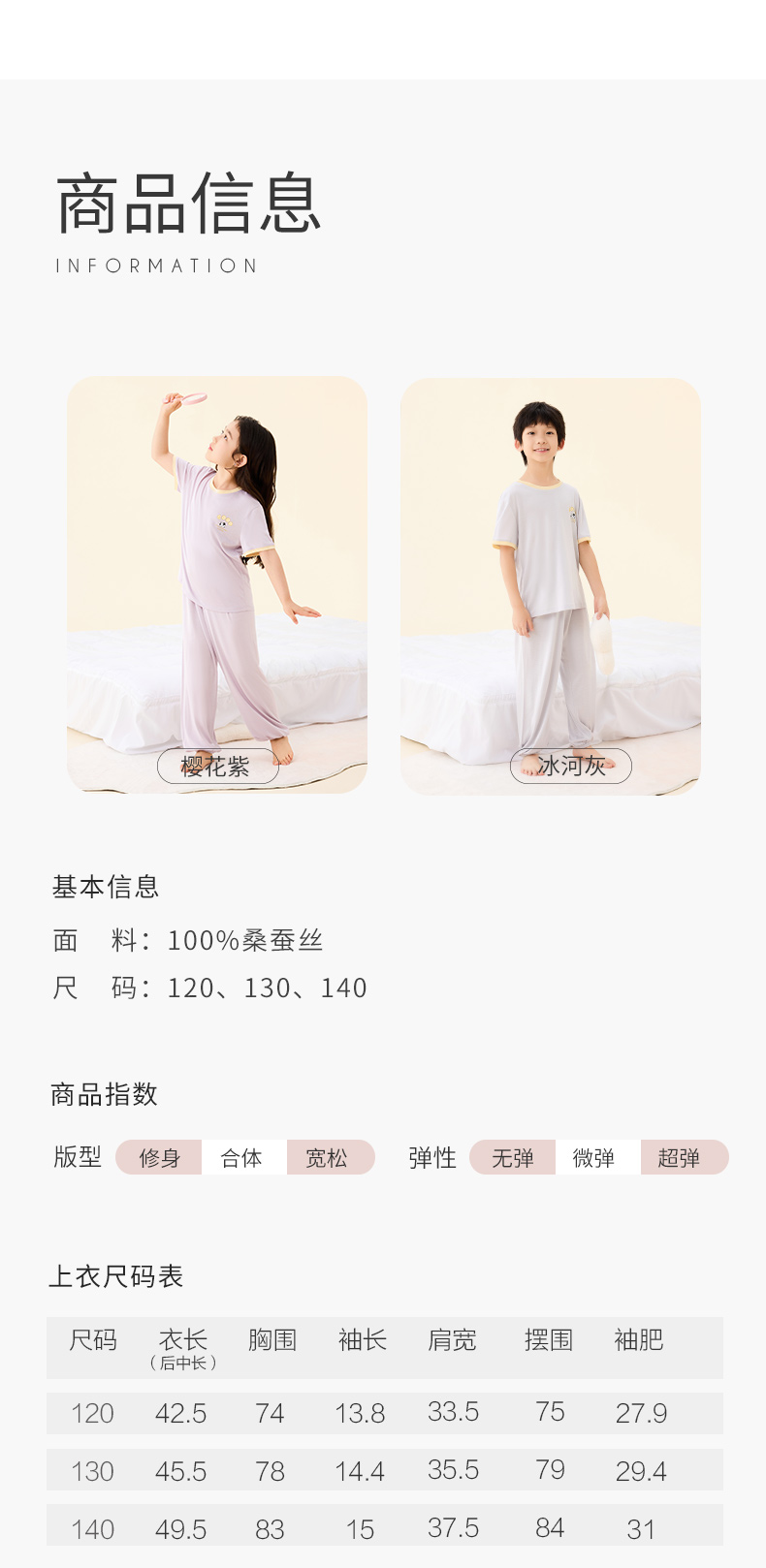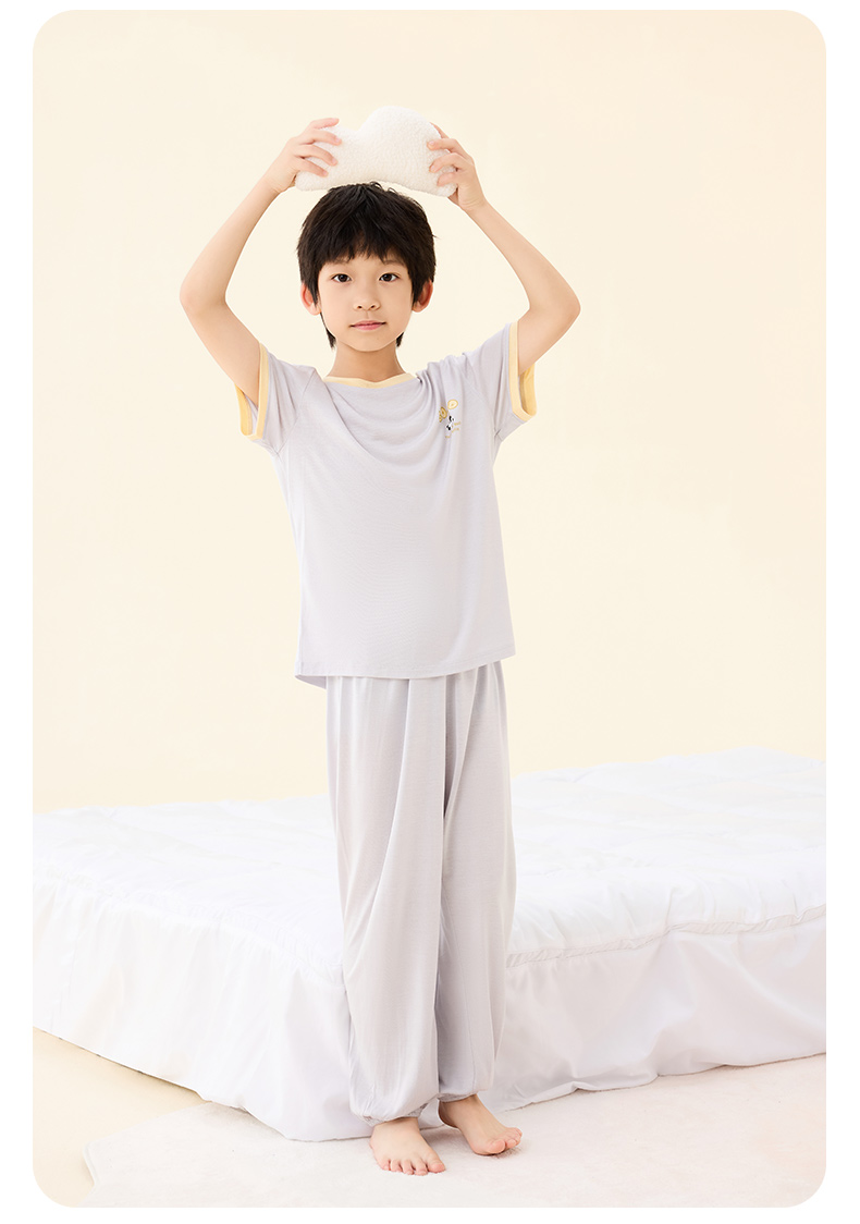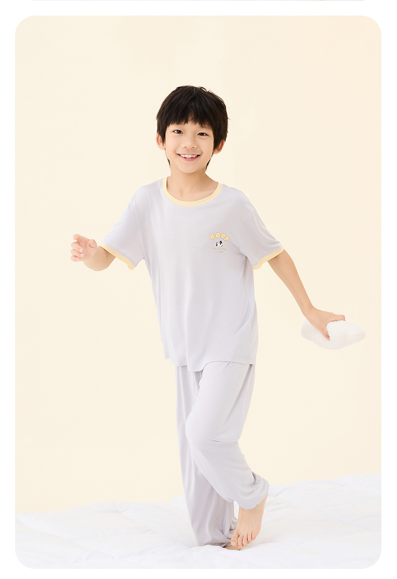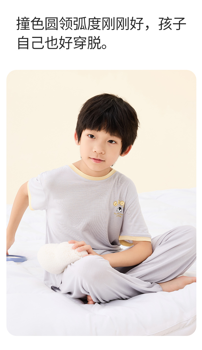 【熊猫滚滚】金三塔真丝针织儿童T恤100%桑蚕丝趣味印花圆领家居服衣裤套 BBY028/BBY029