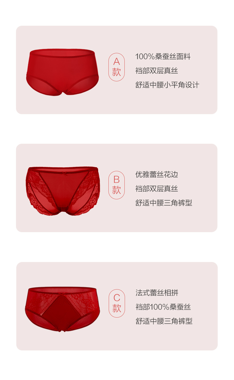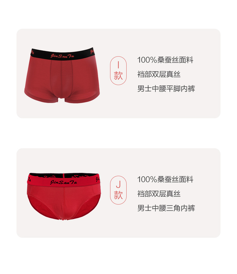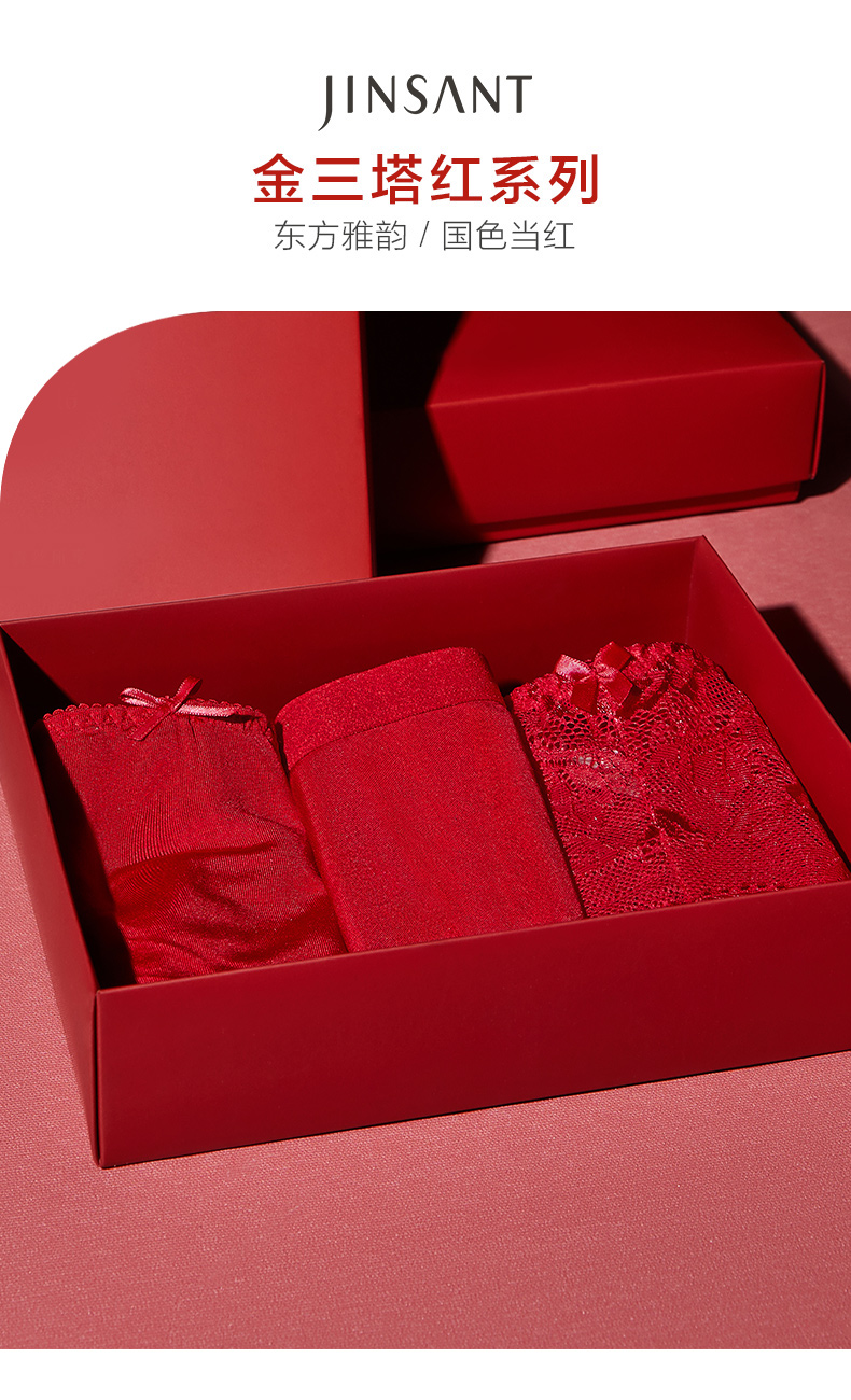 金三塔【多条装】真丝内裤红品礼盒 红色婚庆男女三角平角裤礼盒(私密物品不支持退换)