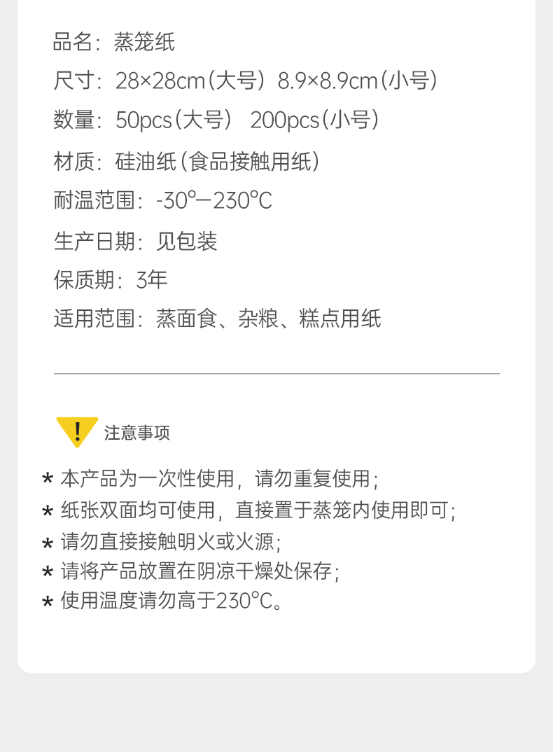 粮票|大号蒸笼纸和小号蒸笼纸 不沾不粘 耐高温 易收取 双面食品级硅油纸 共900张