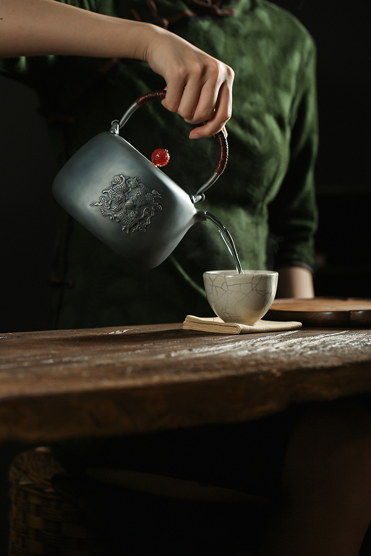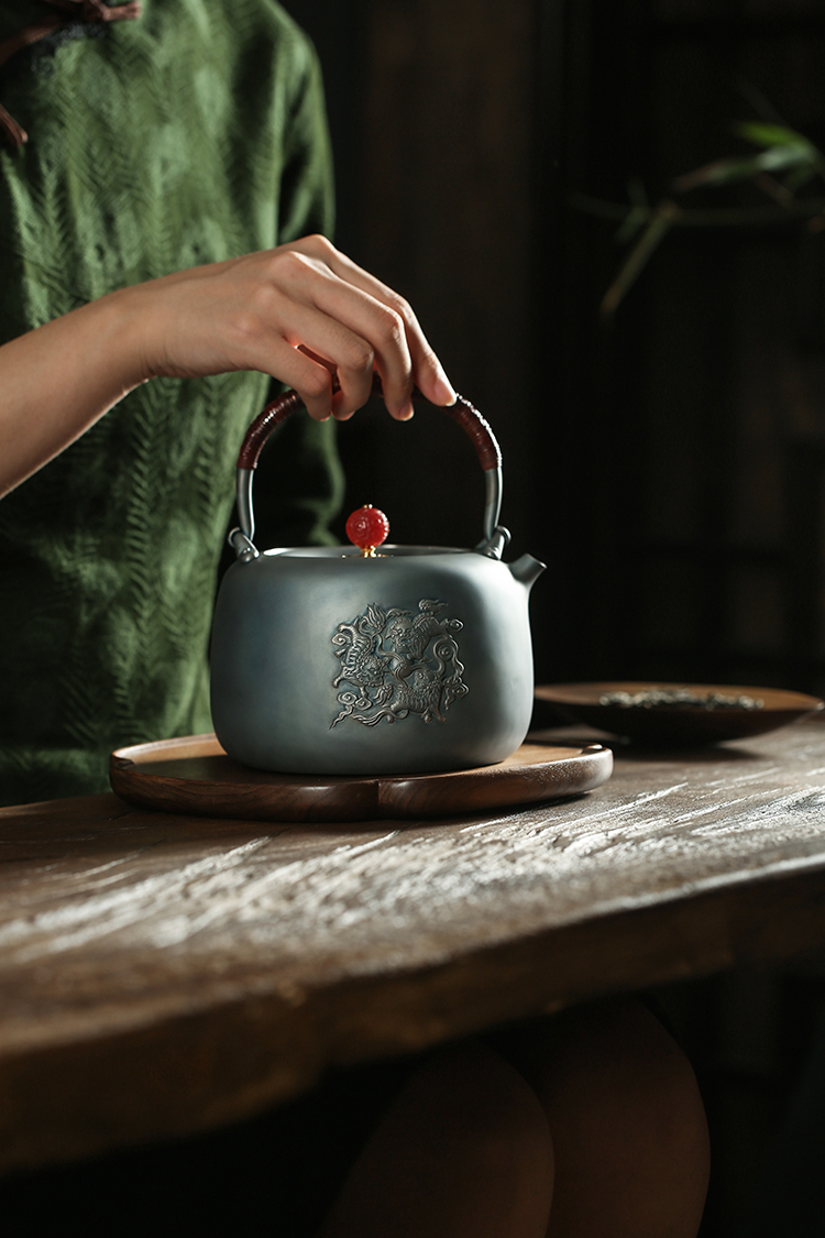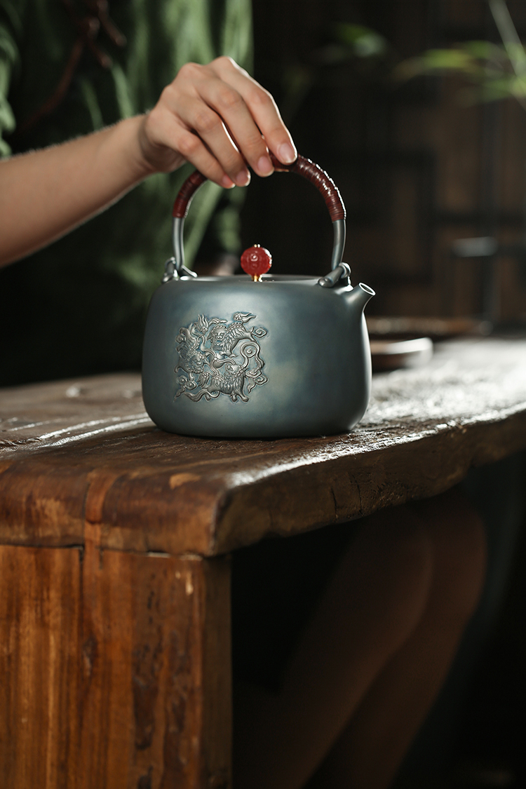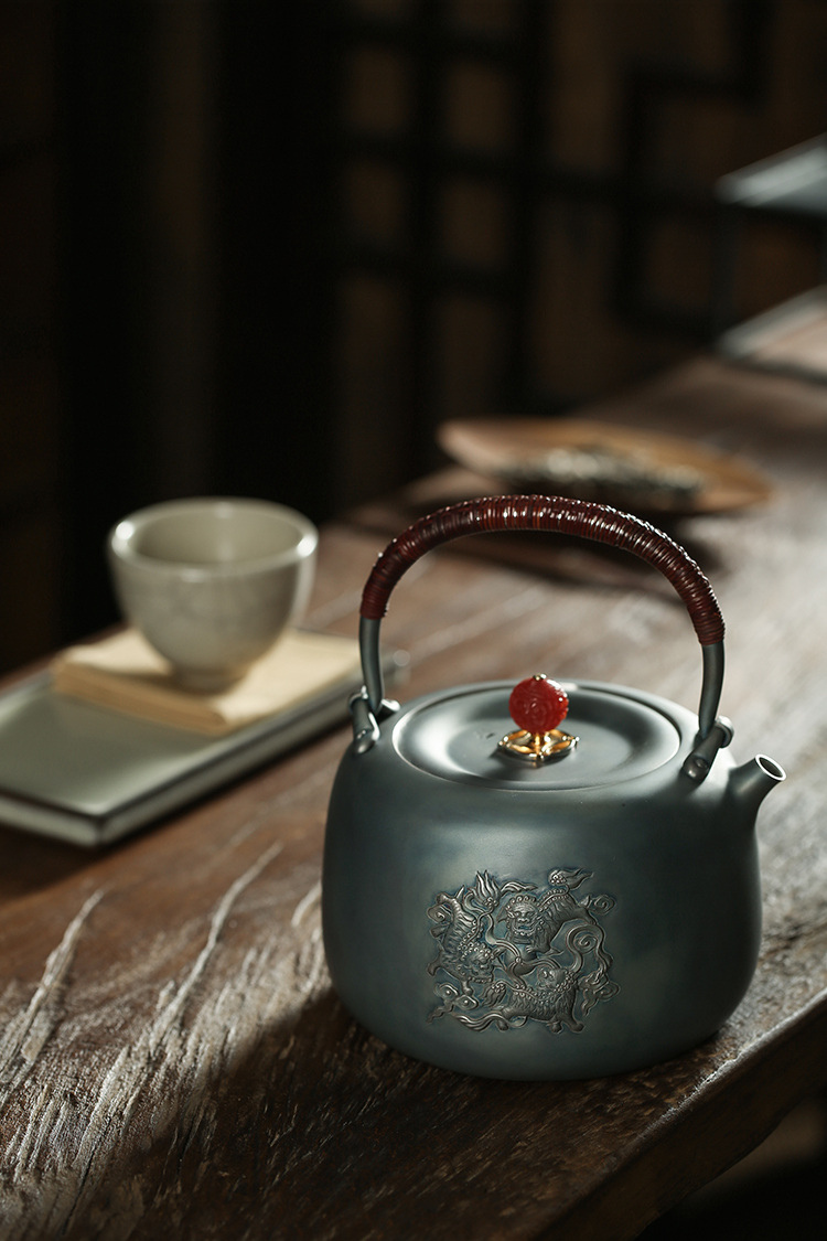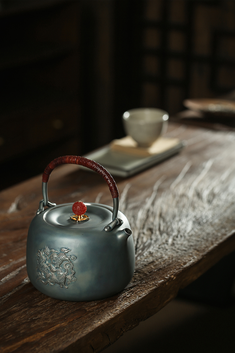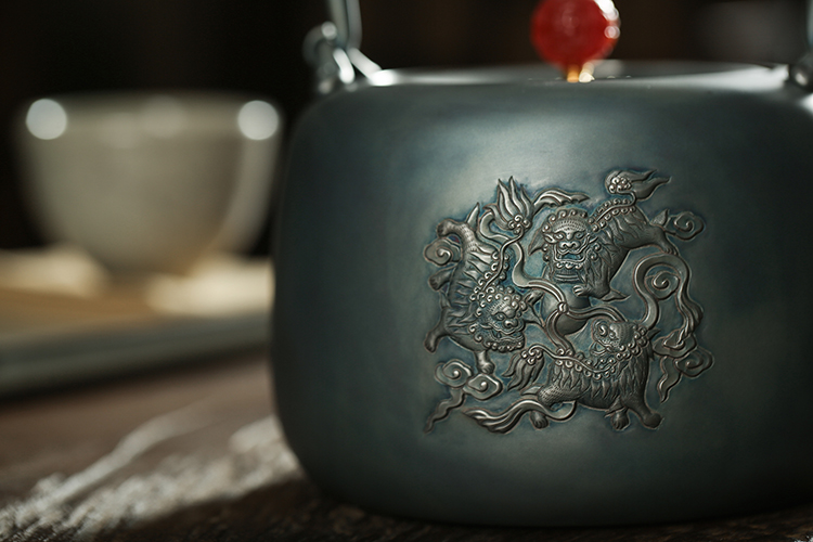 鹤鼎堂闻天系列考槃镜面錾刻三狮绣球汤沸(灰青)(缺货)