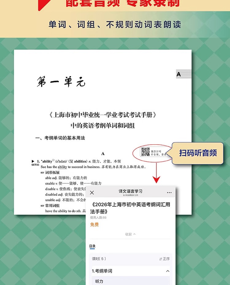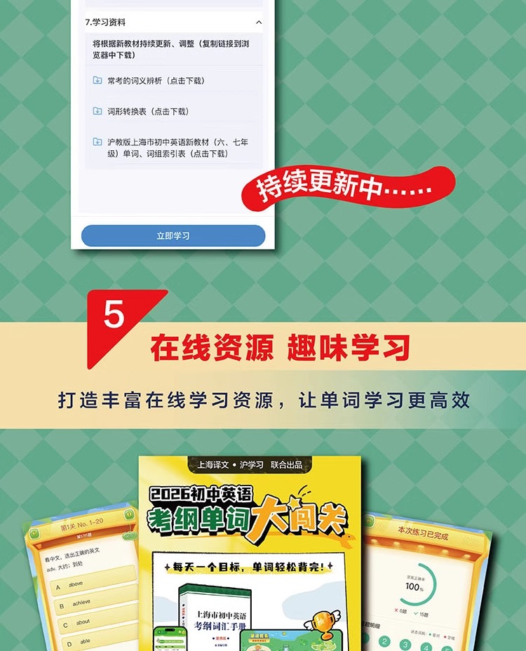 【正版现货】2026年上海市初中英语考纲词汇用法手册+配套综合练习天天练手册+2025上海中学最佳作文选中考英语备战高分冲刺