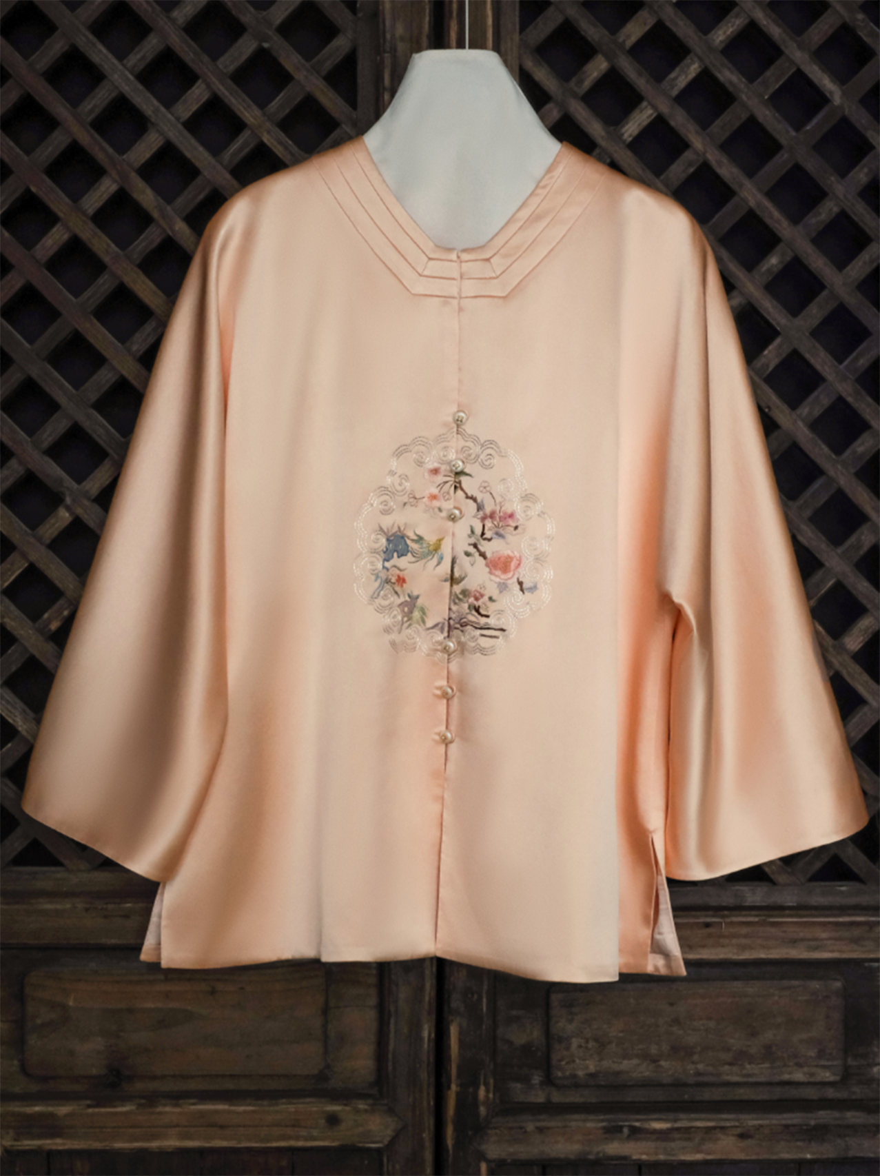 盛唐婧 |桃夭粉新中式国风提花上衣