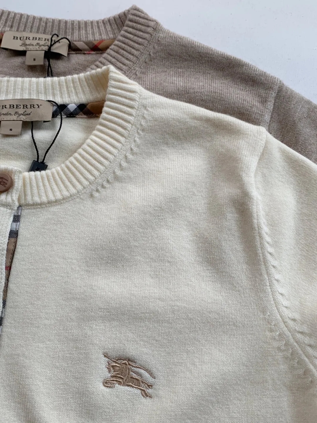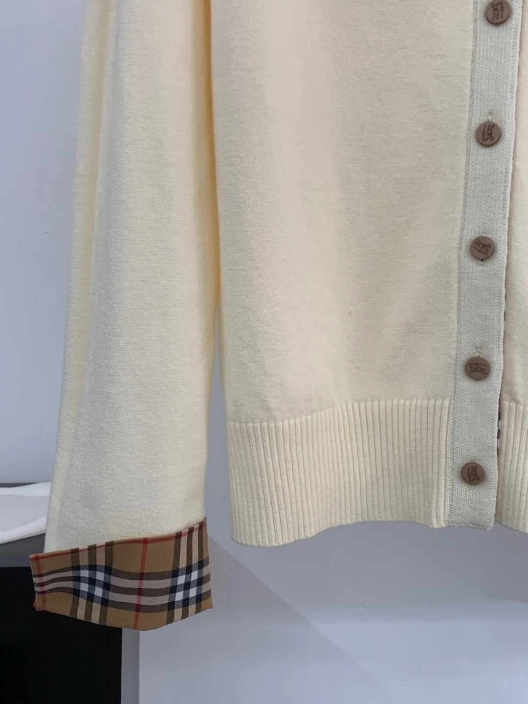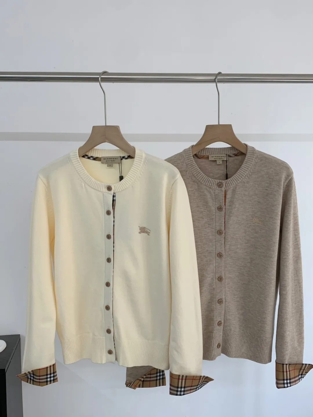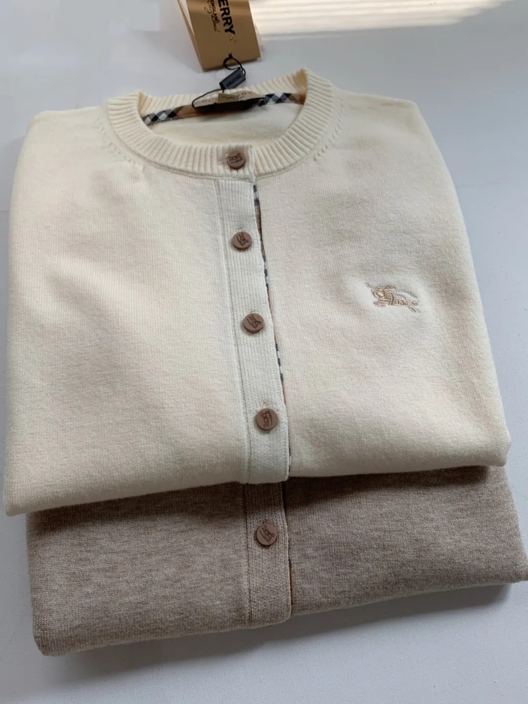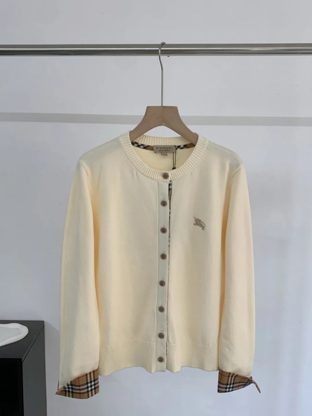 软糯~bur|战马 25秋冬精仿羊毛梭织经典格纹撞色圆领开衫!定制刻磨纽扣+胸口刺绣学院风女针织外套