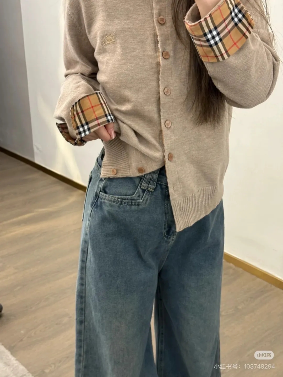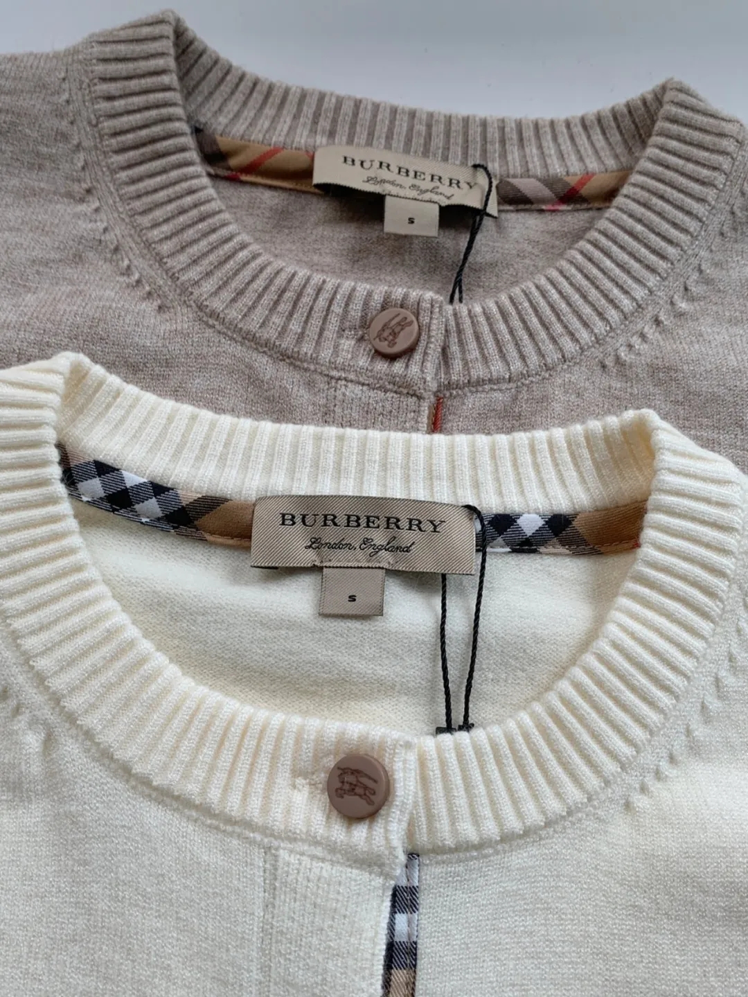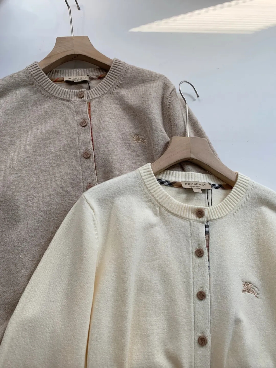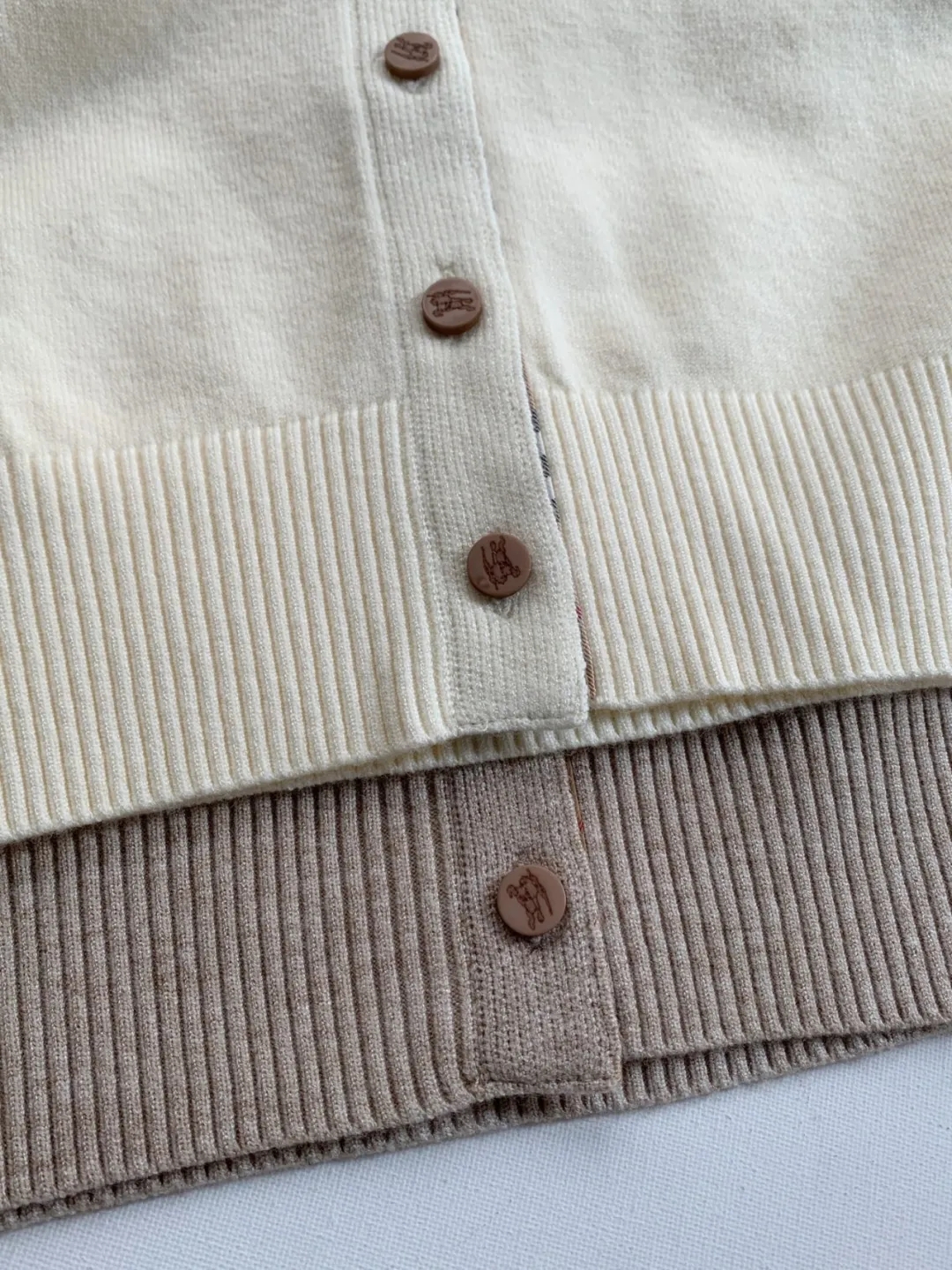 软糯~bur|战马 25秋冬精仿羊毛梭织经典格纹撞色圆领开衫!定制刻磨纽扣+胸口刺绣学院风女针织外套